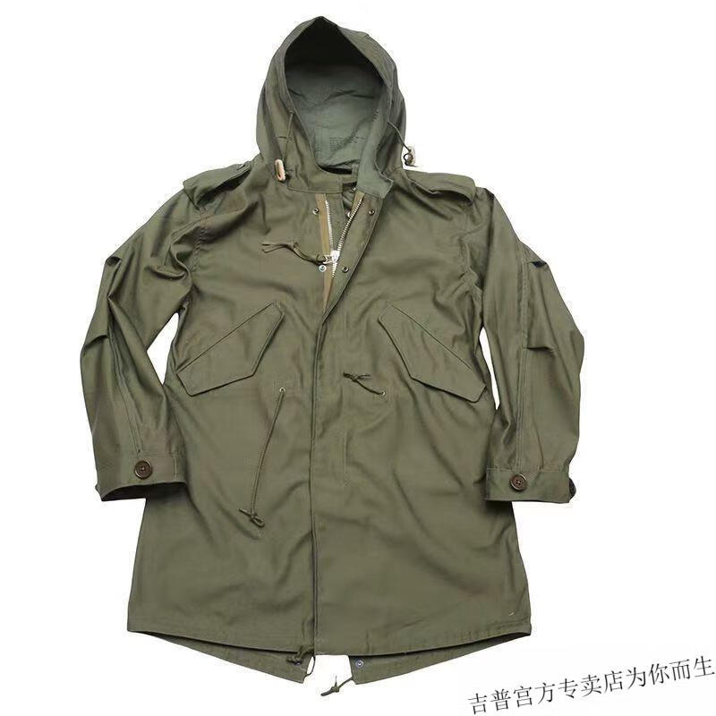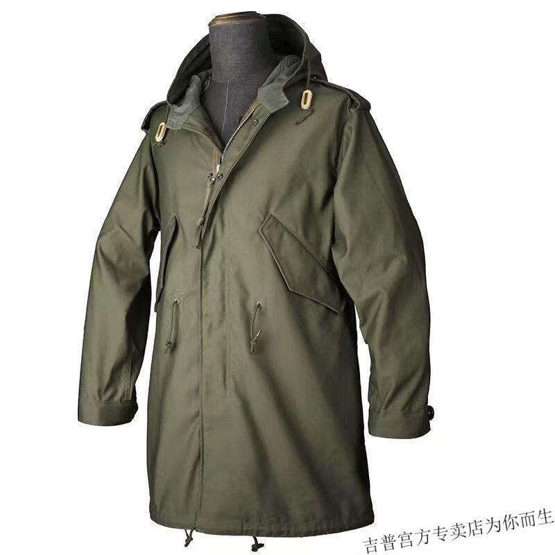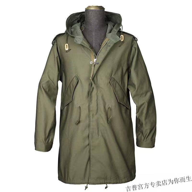 JEEP SPIRIT 2025 workwear hooded American retro new men's fishtail mid-length windbreaker Korean style parka outer green high quality XL 135-145Jin Jin is equal to 0.5 kg