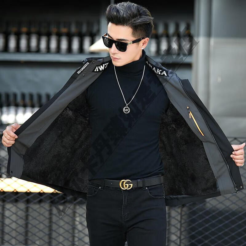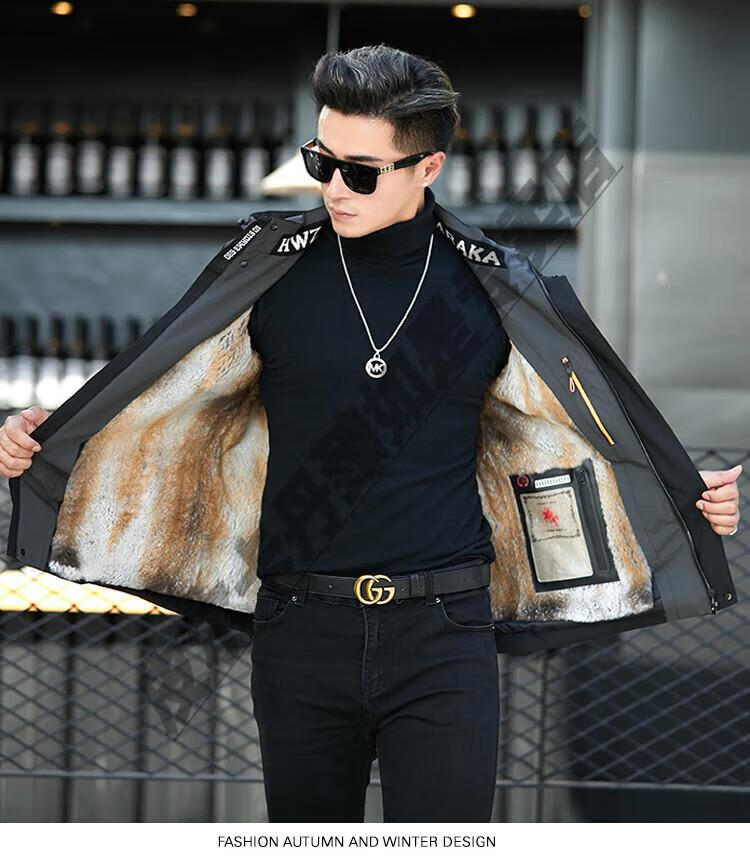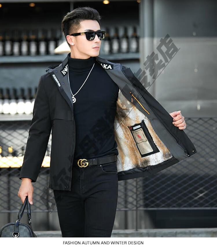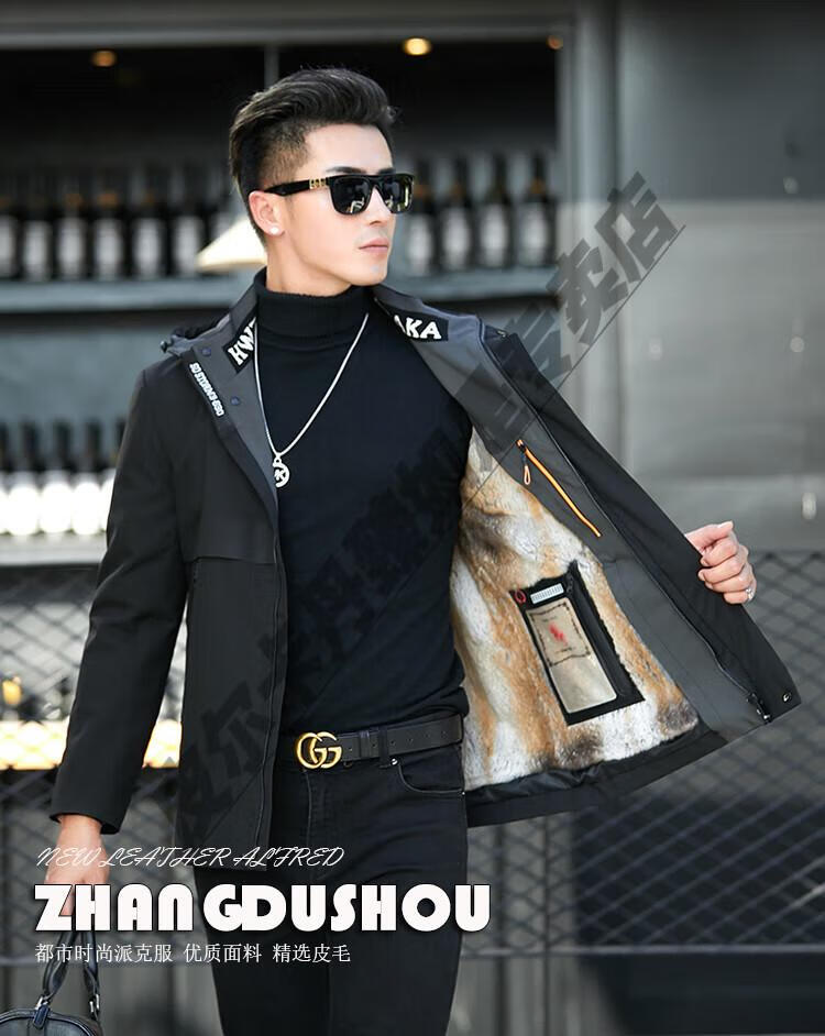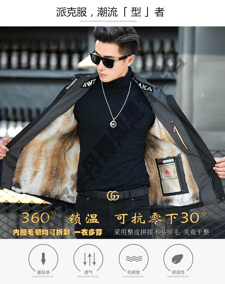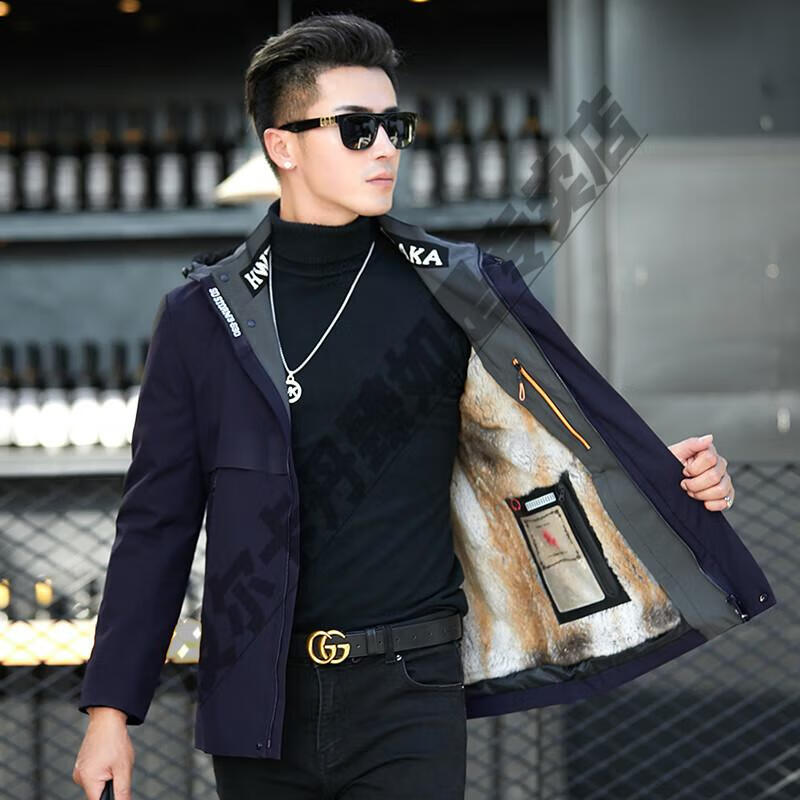 Pierre Cardin parka fur one-piece men's Haining mink lining mink nickel new fur regular style outer Navy Huangshan mink fur lining L (120-135Jin Jin equals 0.5kg)