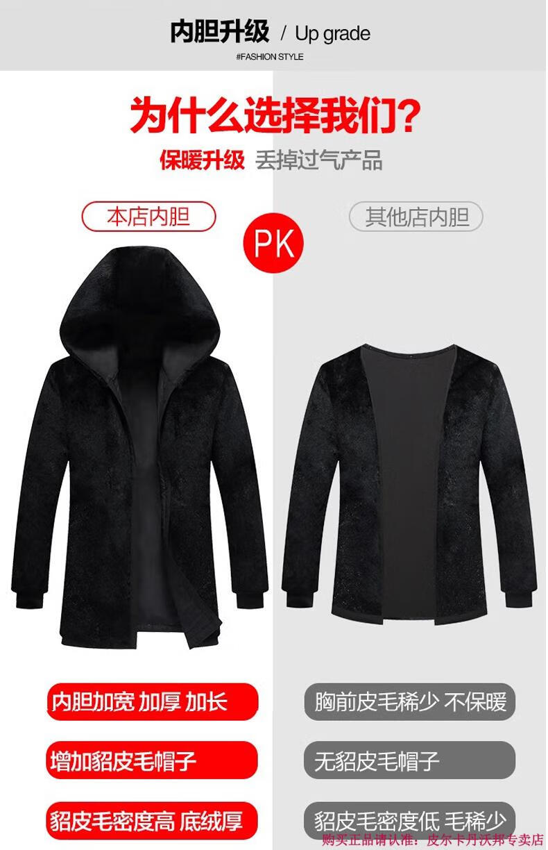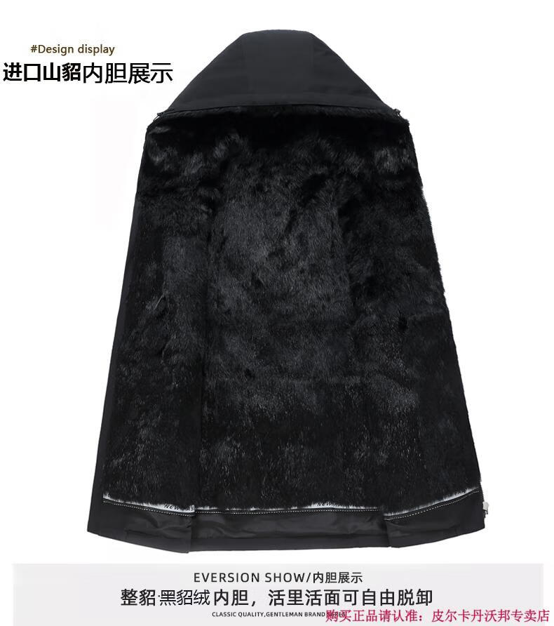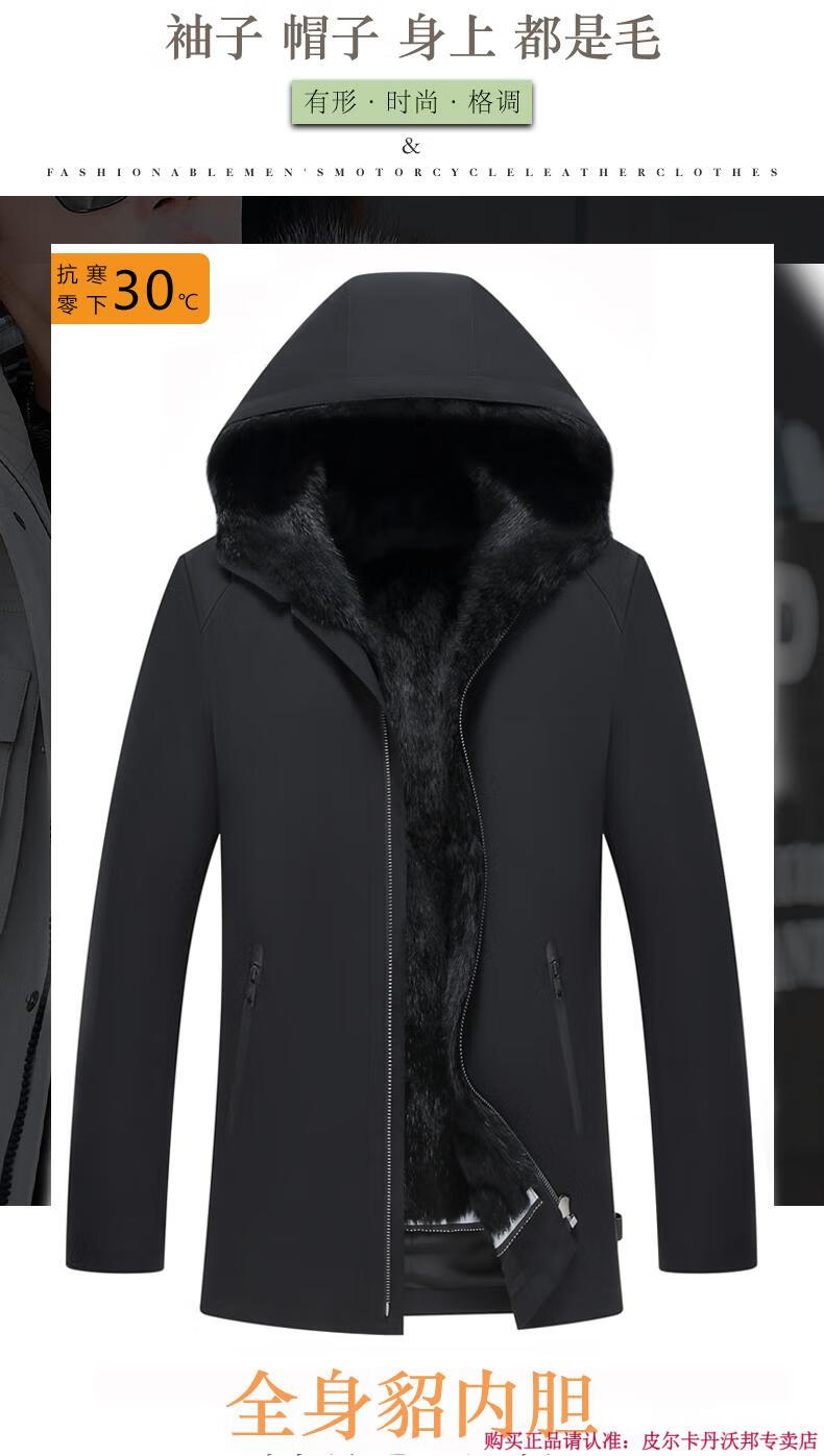Pierre Cardin middle-aged and elderly mink coat men's fur one-piece fur mid-length mink liner pie overcome thickened dad coat black 4XL 195