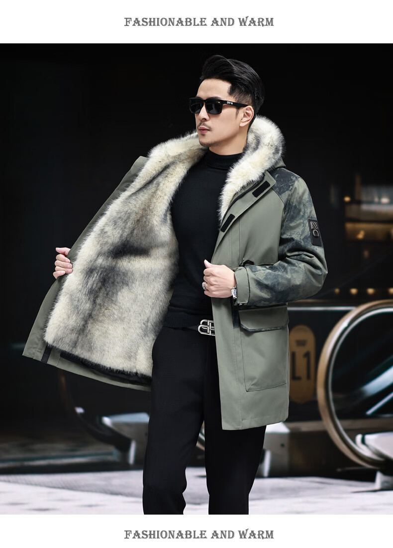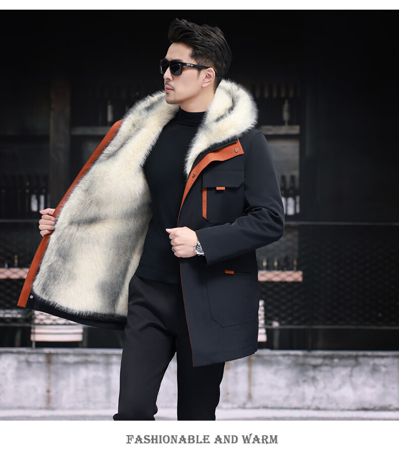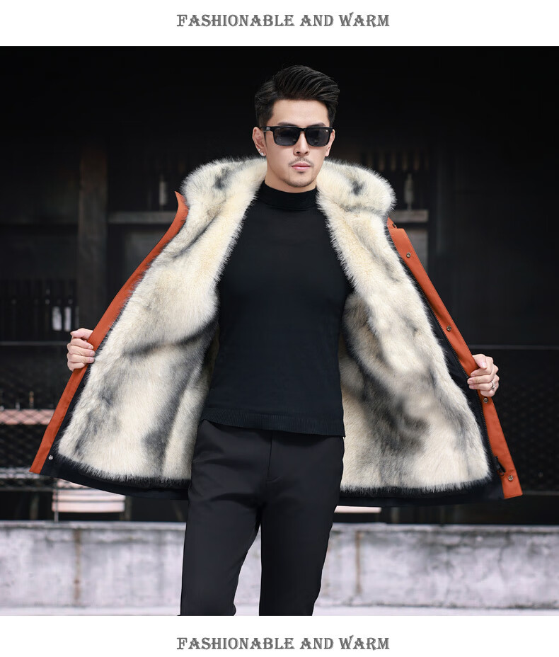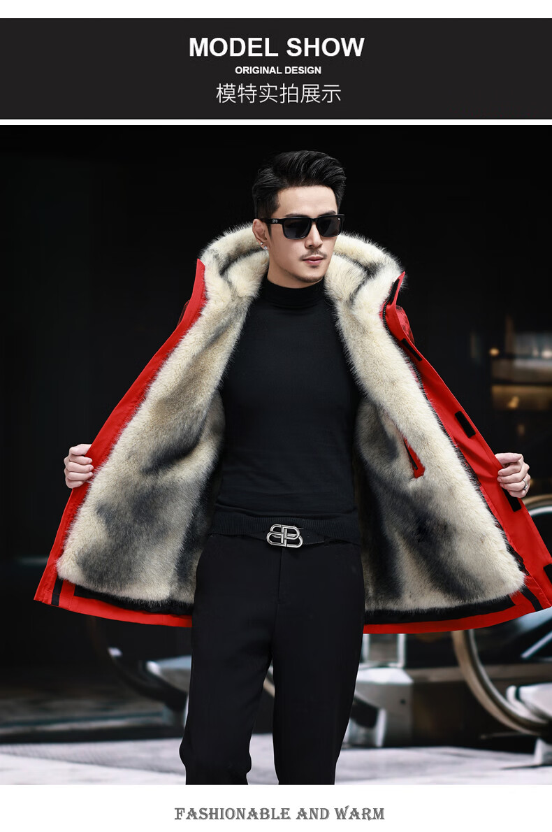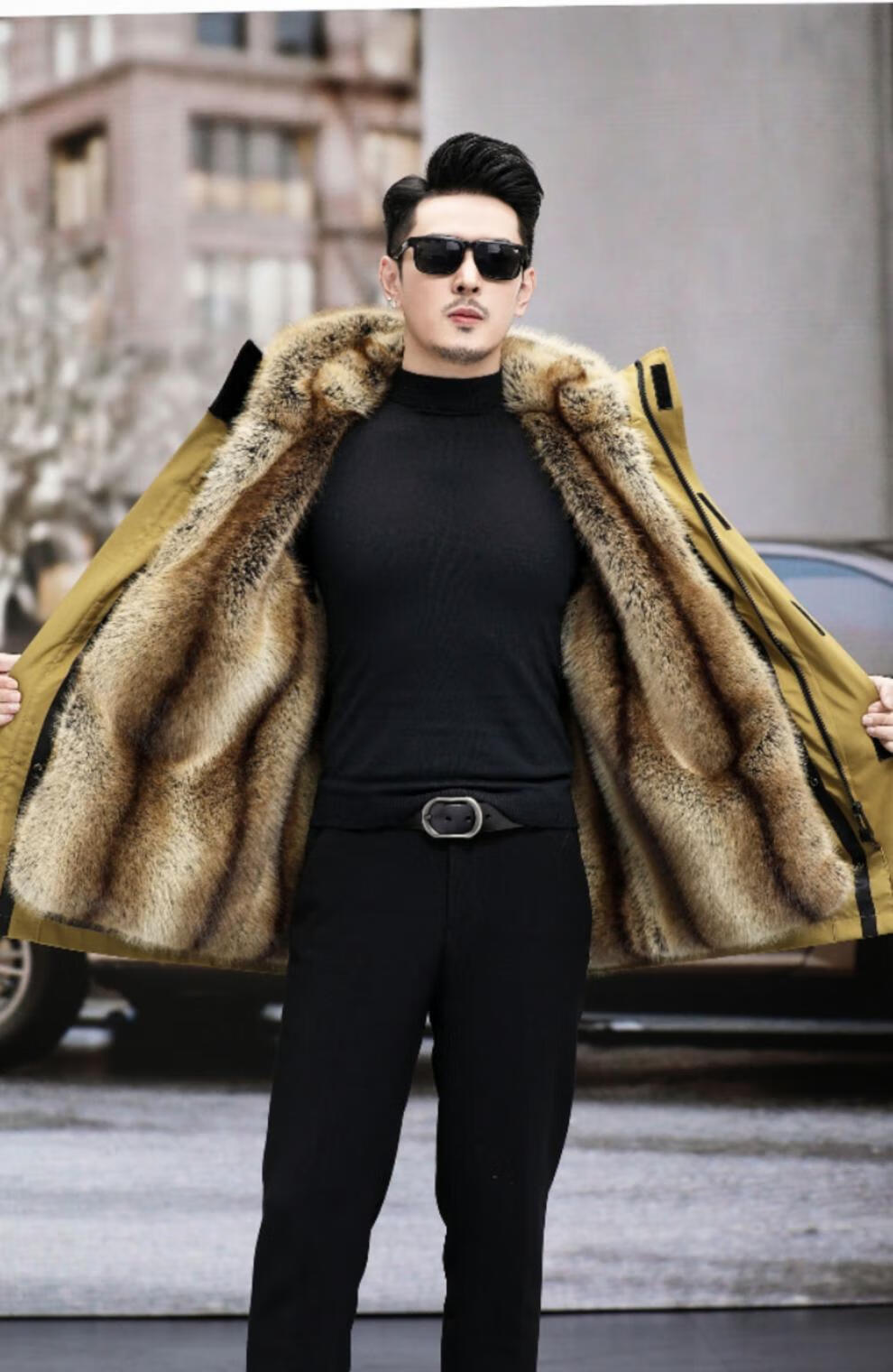 Classic car mid-length loose parka men's winter coat with velvet and thickening 2025 new mink liner dad jacket orange (sleeves with fur) removable liner 4XL 180 to 200Jin Jin equals 0.5 kg