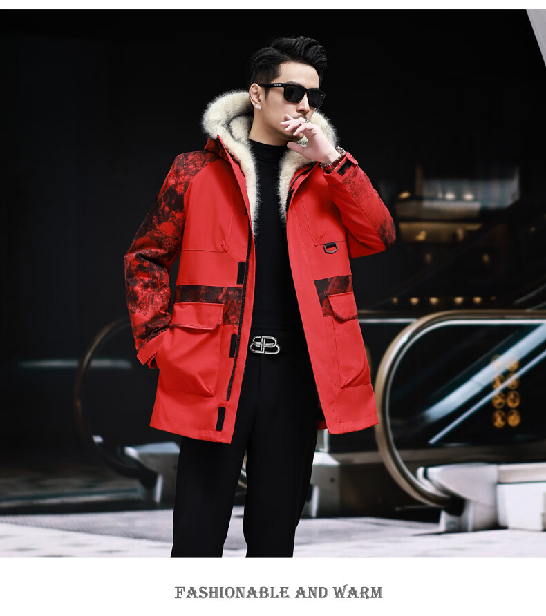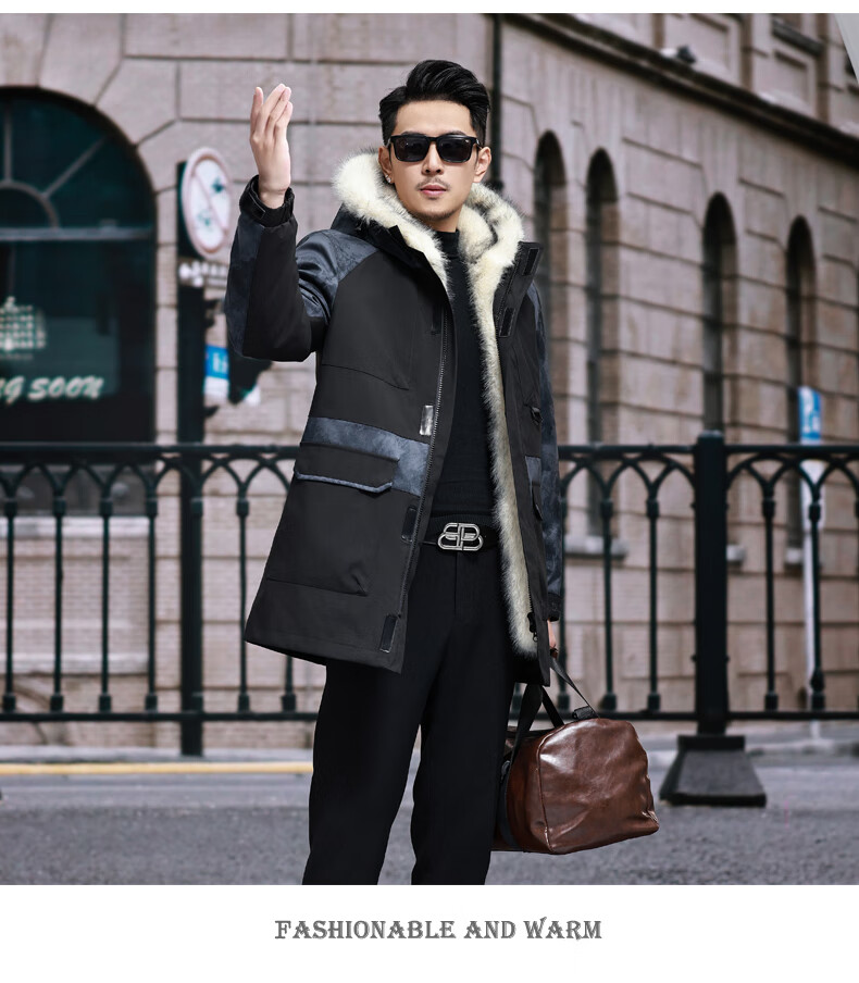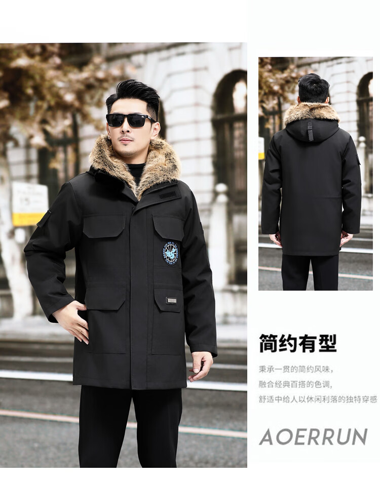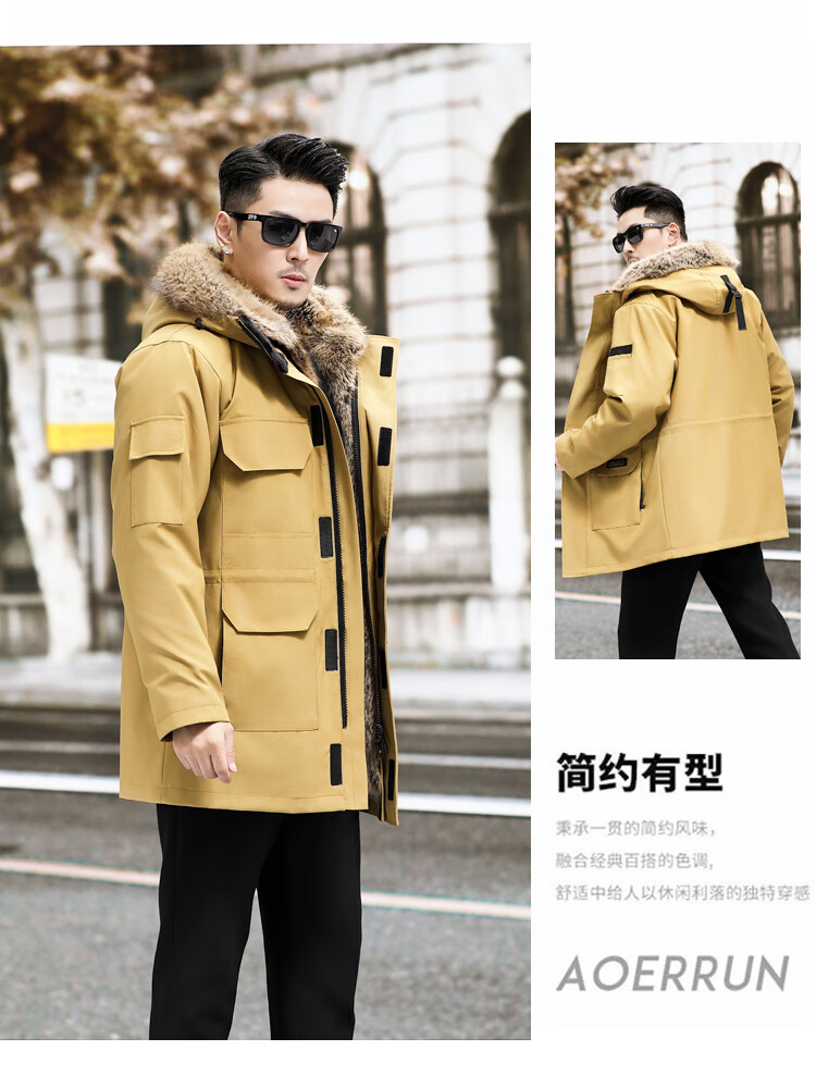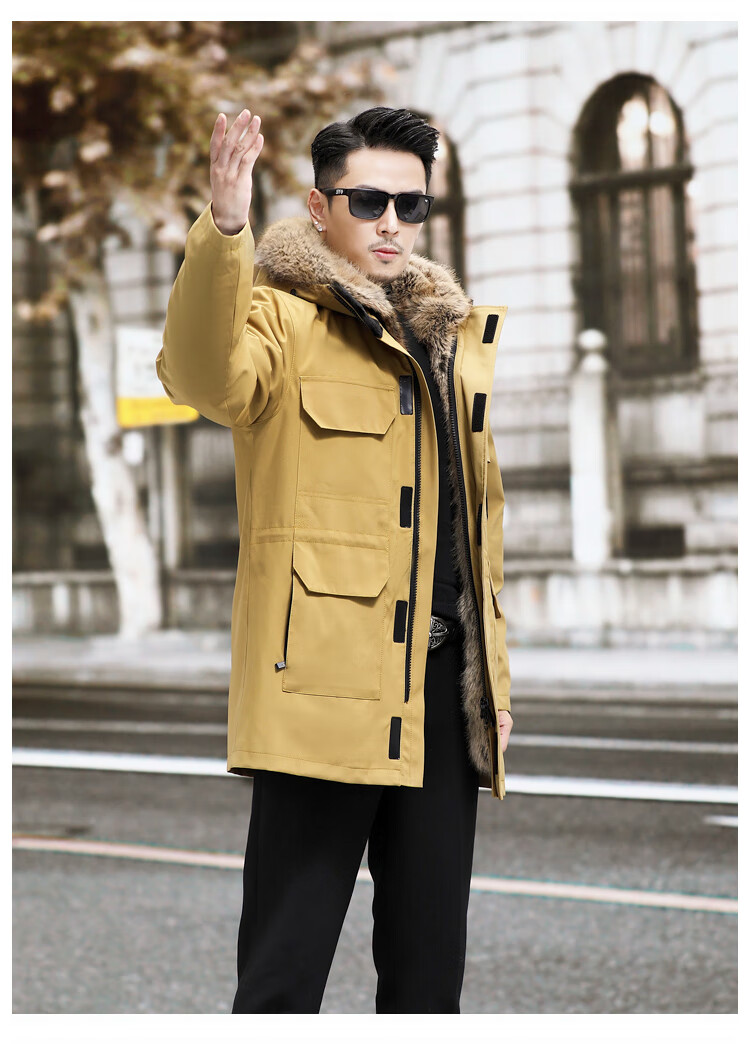 Classic car mid-length loose parka men's winter coat with velvet and thickening 2025 new mink liner dad jacket orange (sleeves with fur) removable liner 4XL 180 to 200Jin Jin equals 0.5 kg
