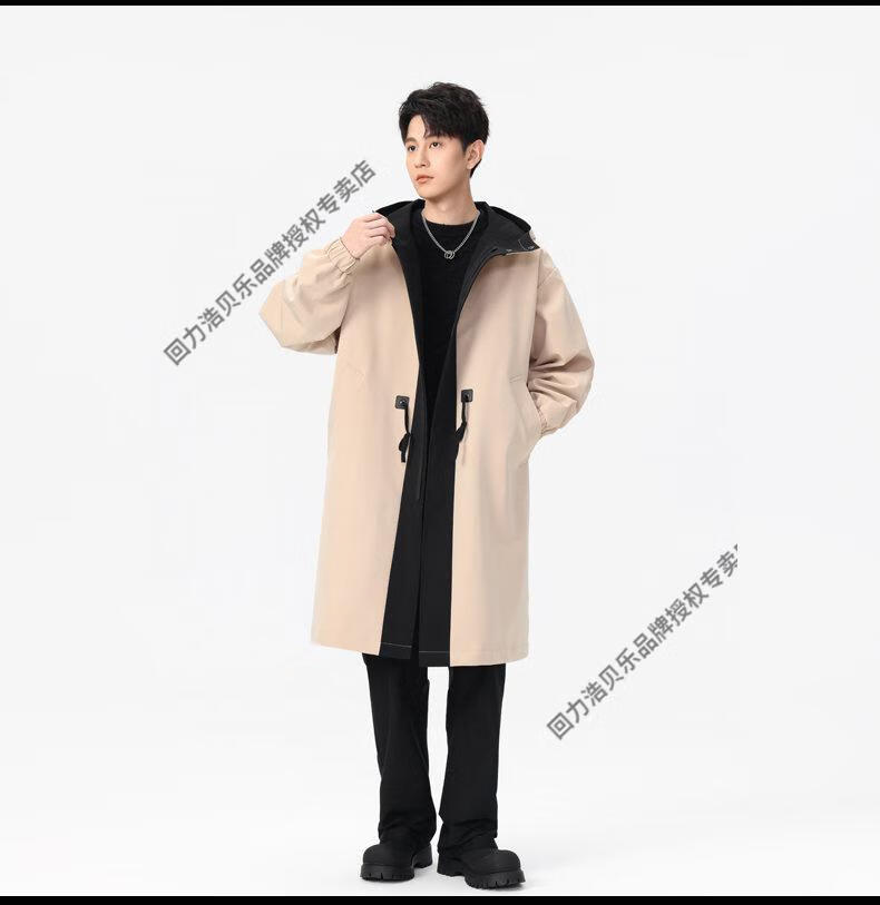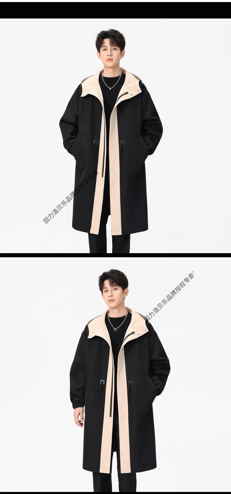 Warrior fake two-piece coat men's mid-length windbreaker jacket men's autumn and winter British style thickened hooded cloak jacket black M