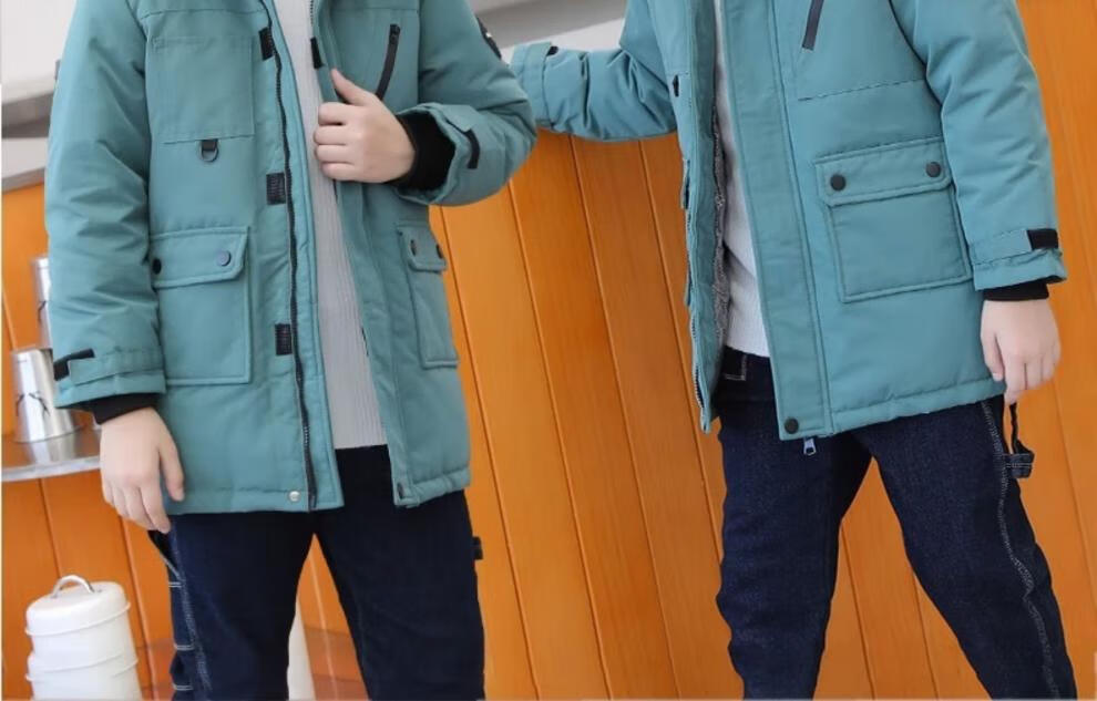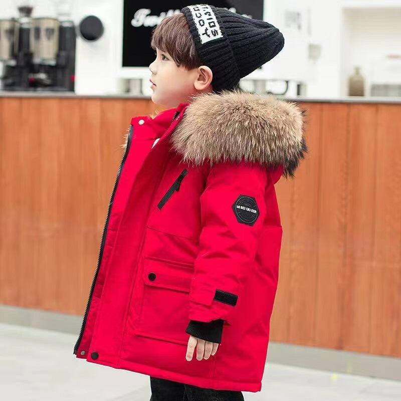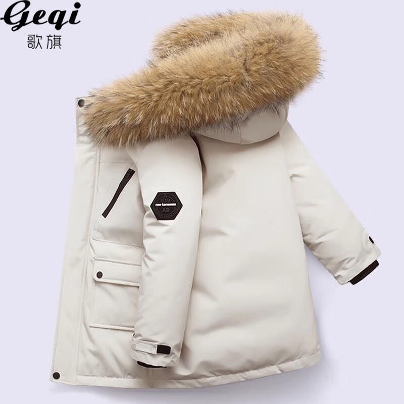 G.DUCKKIDS boys' down cotton padded coat thickened parka coat 2025 autumn and winter coat children's hooded large fur collar padded coat black 160 cm