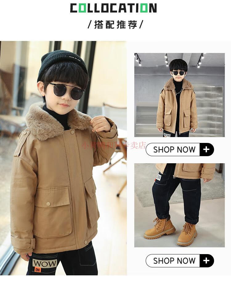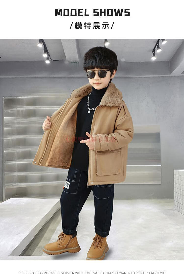 G.DUCKKIDS Children's Clothing Boys' Velvet Jackets Parkas 2025 New Thickened Spring Autumn and Winter Tops Boys' Cotton Clothes Khaki 150 cm