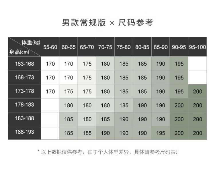 China (cm) 160-165/84-86 165-170 / 88-90 167-172 / 92-96 168-173 / 98-102 170-176 / 106-110