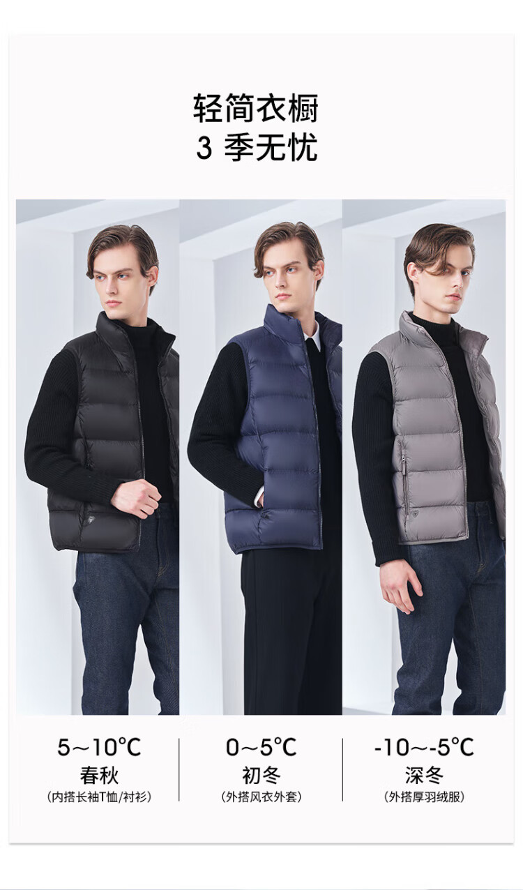 Tambor light down jacket vest for men with short stand-up collar, light and warm, comfortable vest with inner layer TA330033 black 180