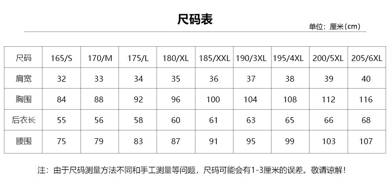 China (cm) 165 / 88-90 170 / 96-98 175 / 108-110 180 / 118-122 185 / 126-130