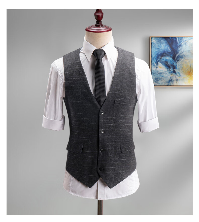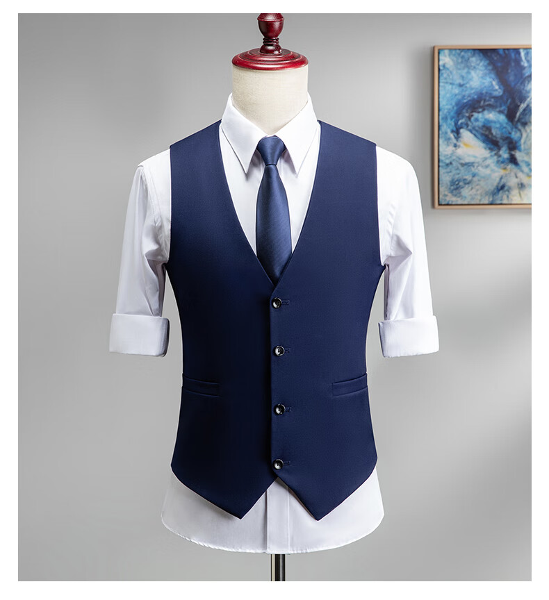 ROMON Father's Day Gift Blue Suit Vest Men's Slim Fit Korean Business Casual Formal Vest Vest Men 221 Dark Blue Four Buttons L 175 Suitable for 115-128 Jin Jin is equal to 0.5 kg or so