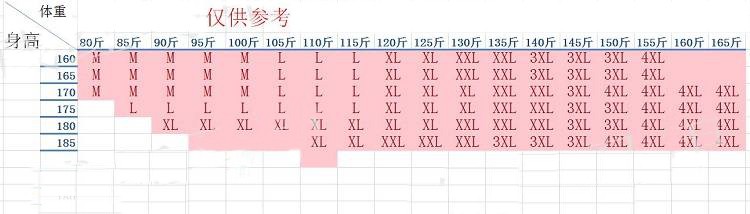 China (cm) 160-165/84-86 165-170 / 88-90 167-172 / 92-96 168-173 / 98-102 170-176 / 106-110