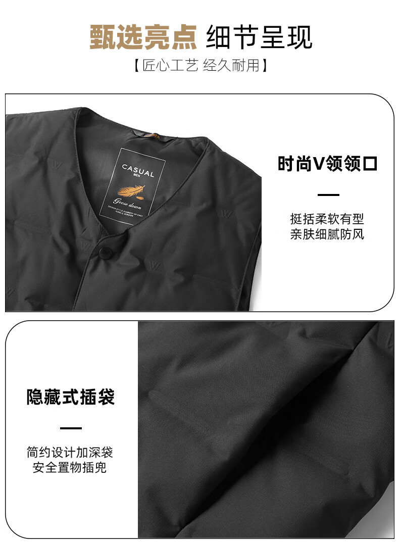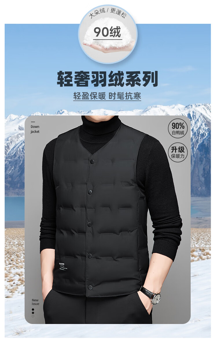 Woodpecker Down Vest Men's Light Thin Inner Wear Men's Vest Autumn and Winter Warm Vest Inner Large Size Down Vest 20850/9903 Navy Blue XL