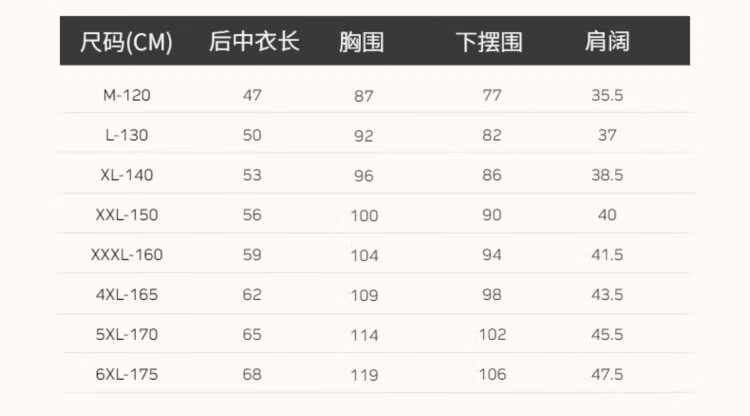 China (cm) 165 / 88-90 170 / 96-98 175 / 108-110 180 / 118-122 185 / 126-130