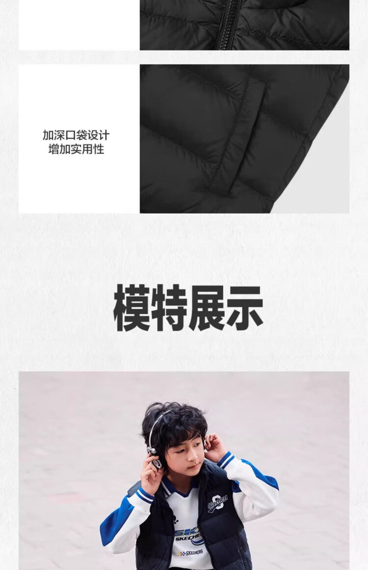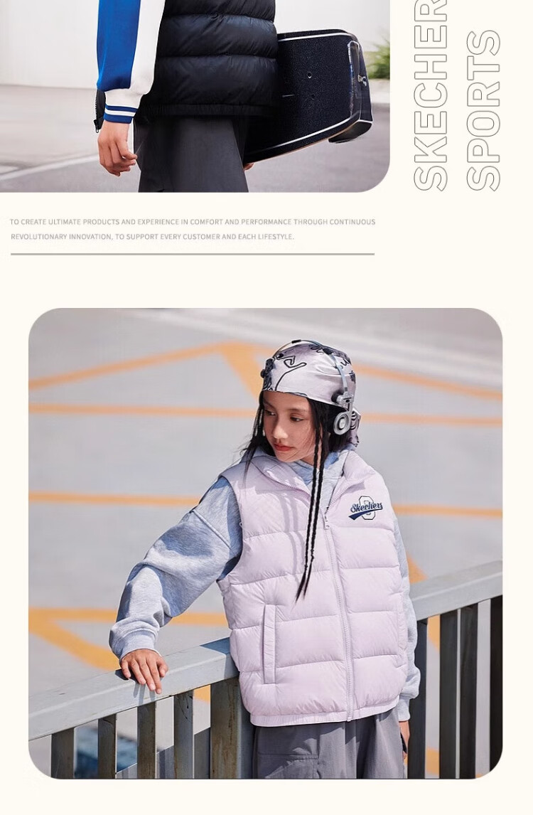 Skechers autumn and winter new style men's and women's woven down jacket vest down vest L424K096