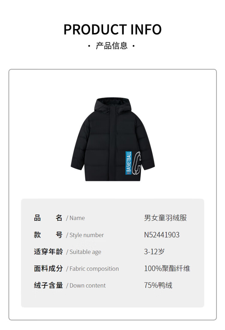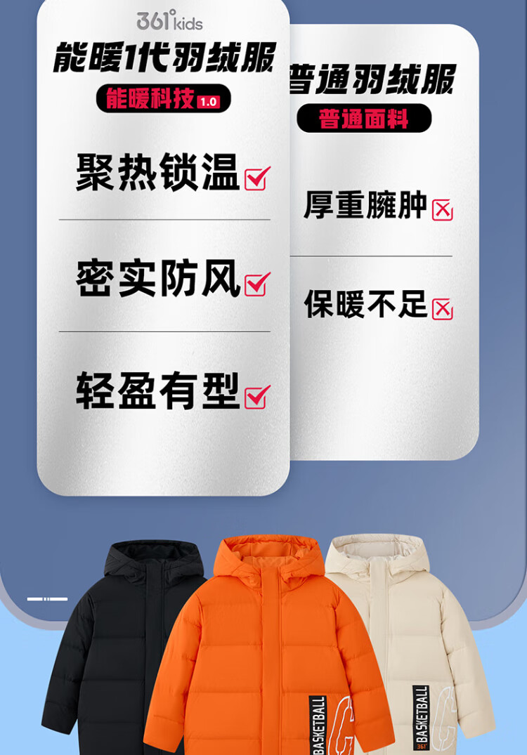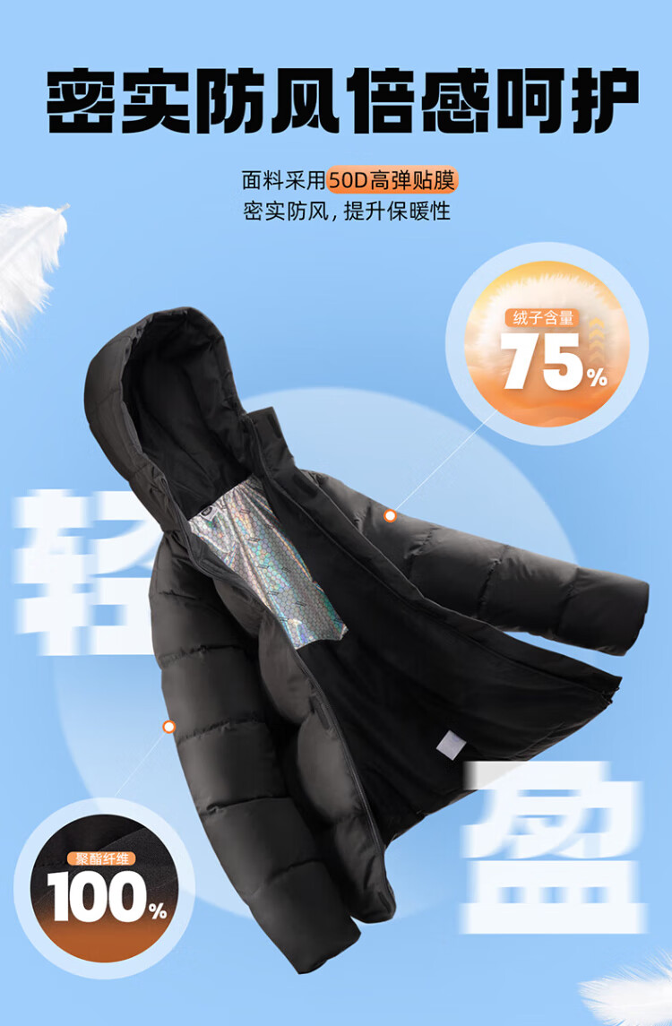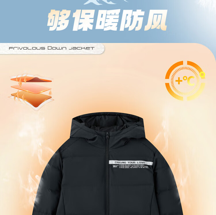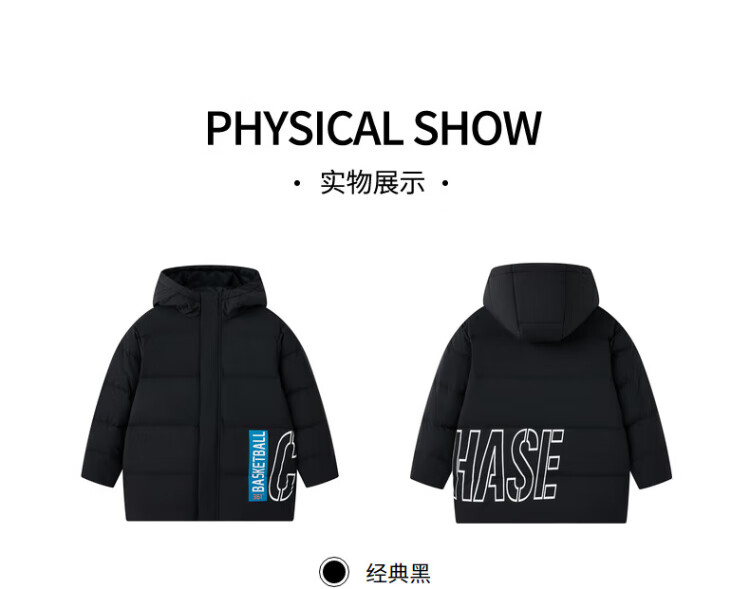 361 Children's Down Jacket 25 Winter Boys 3-14 Years Old Medium Long Warm Jacket Black 170