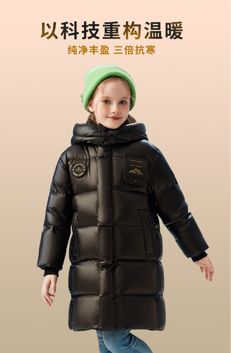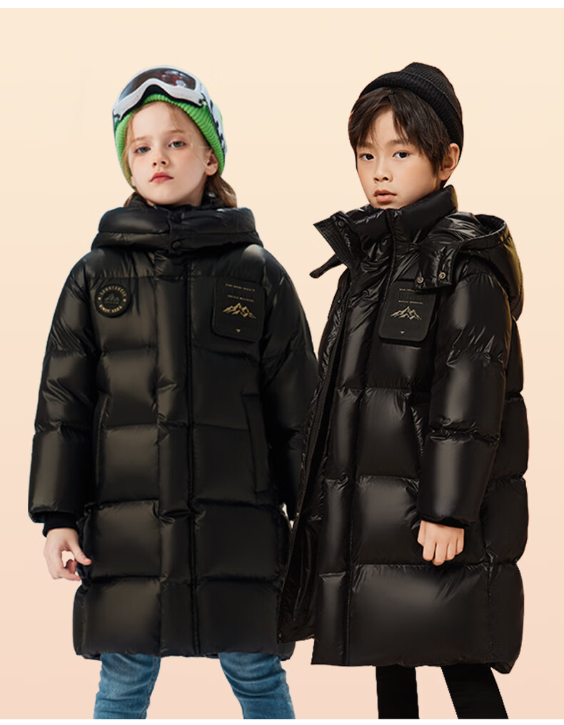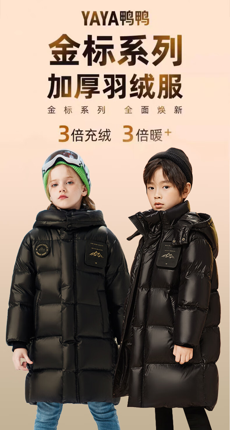 Yaya (YAYA) children's thickened medium-length down jacket for men and women 2025 winter new warm jacket black 170