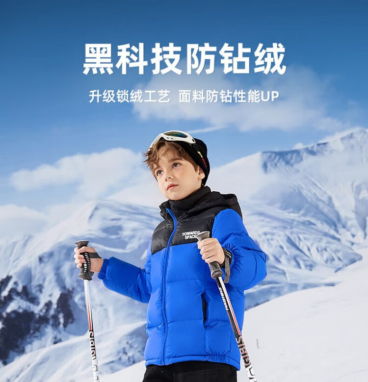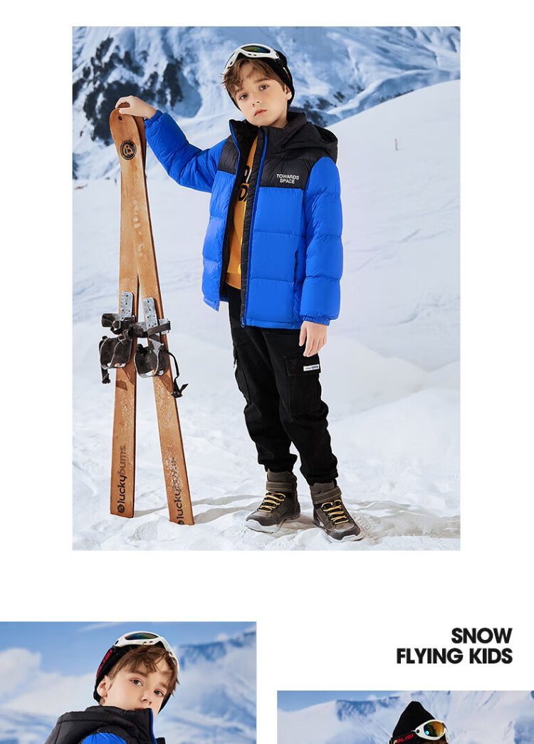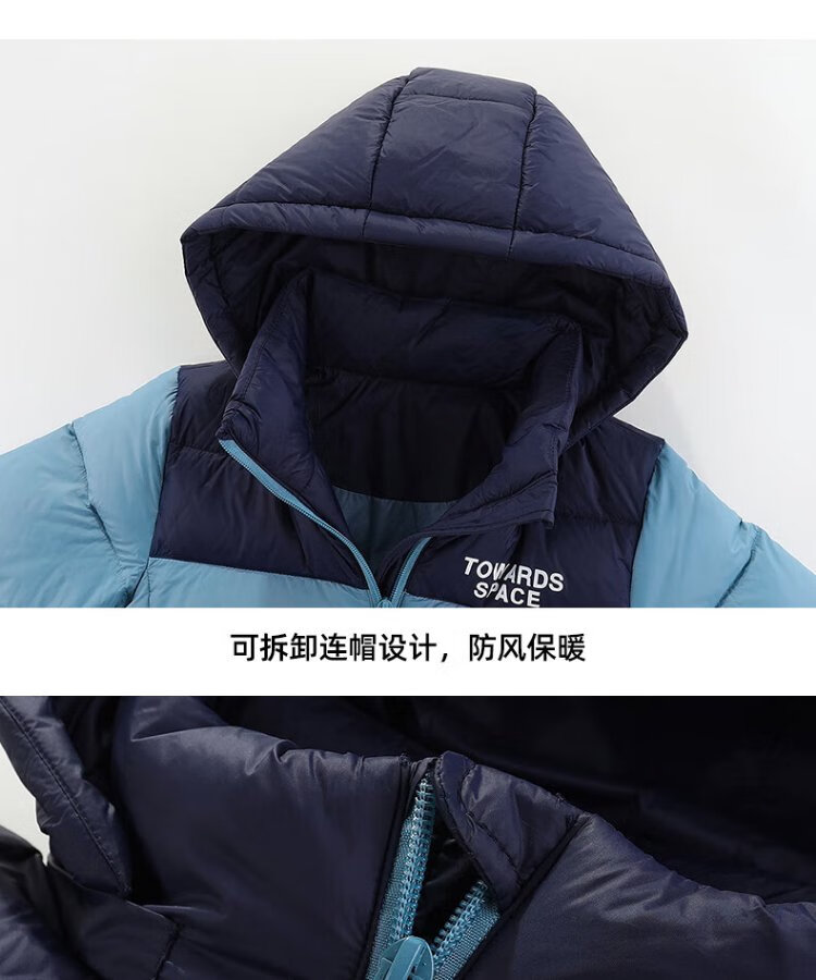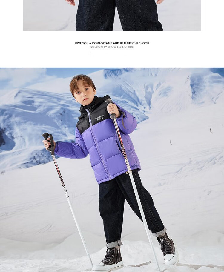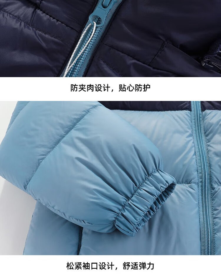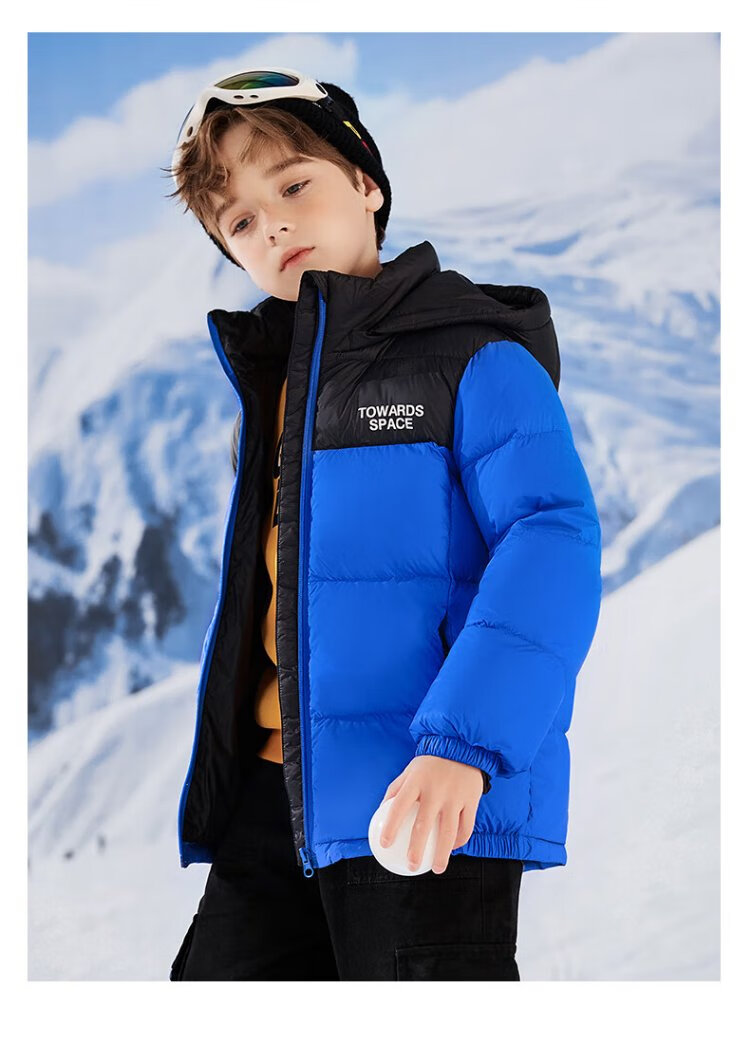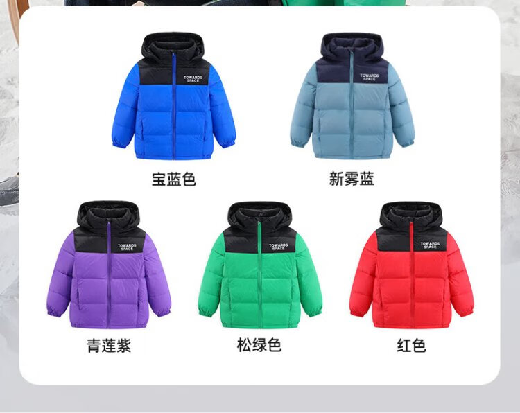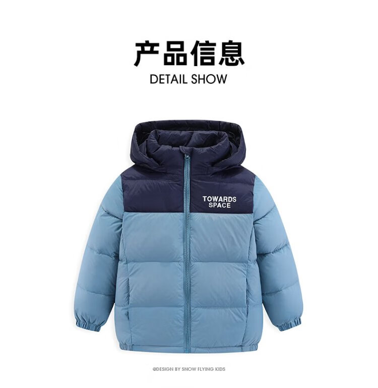 Snow Flying Children's Clothing Children's Down Jacket 2025 New Boys, Girls, Medium and Large Children's Spliced Bread Down Jacket Winter Jacket New Mist Blue 170