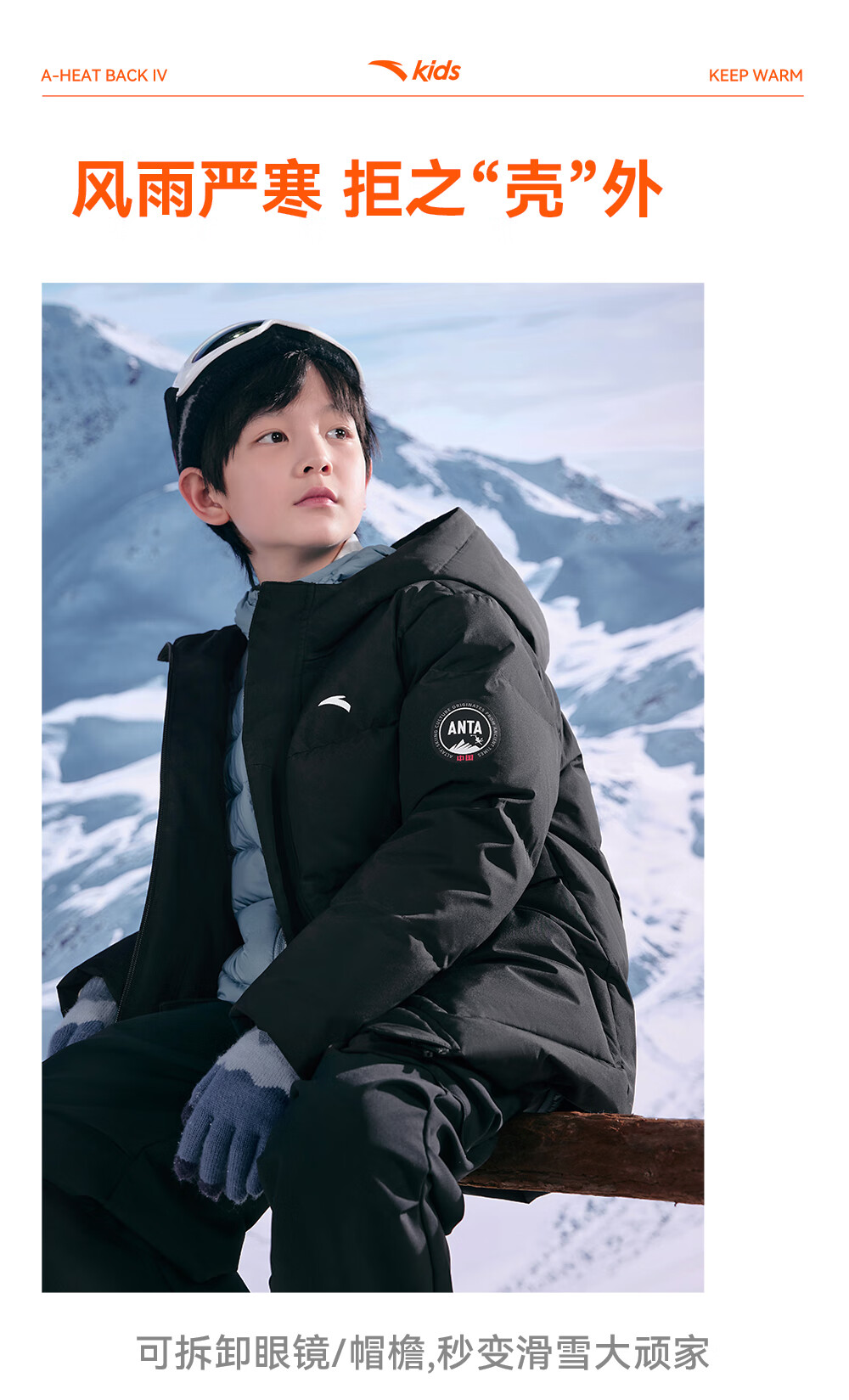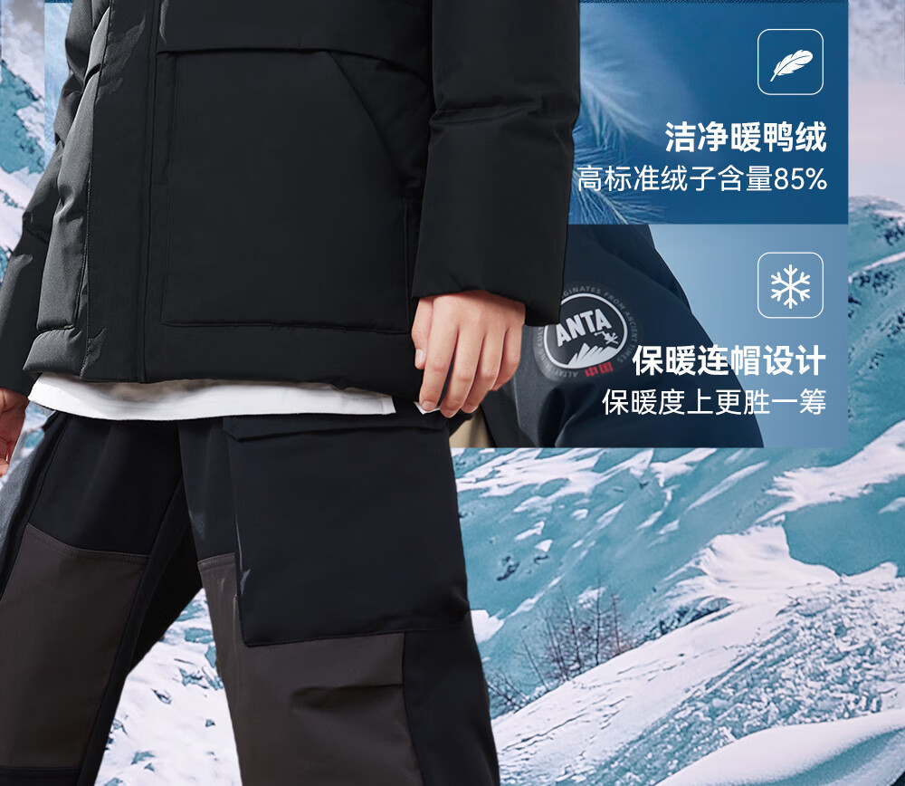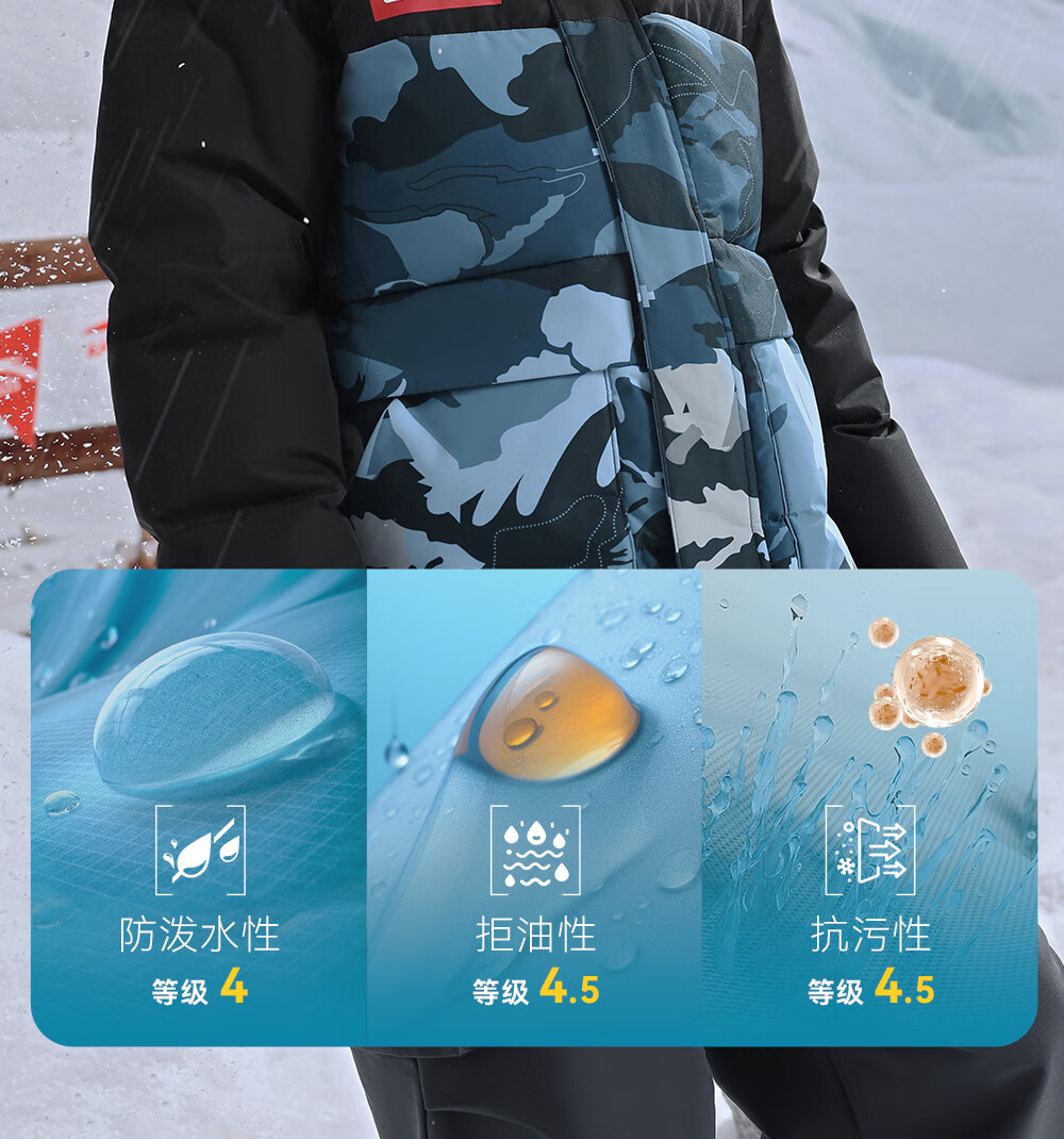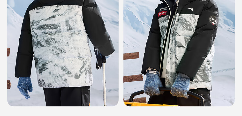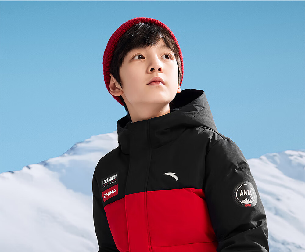 ANTA children's down jacket boys' 25-year winter outdoor three-proof snow shell heat return IV warm windproof thickened top jacket heat return IV snow shell late night blue/full print 6901H-8 down content 85% 160 down filling capacity 153g