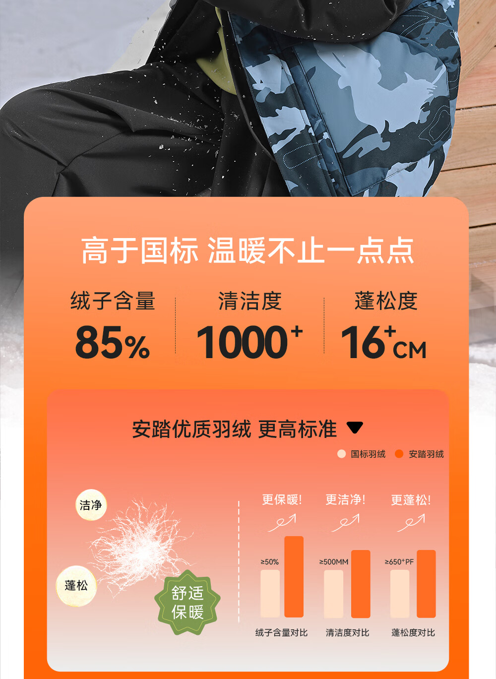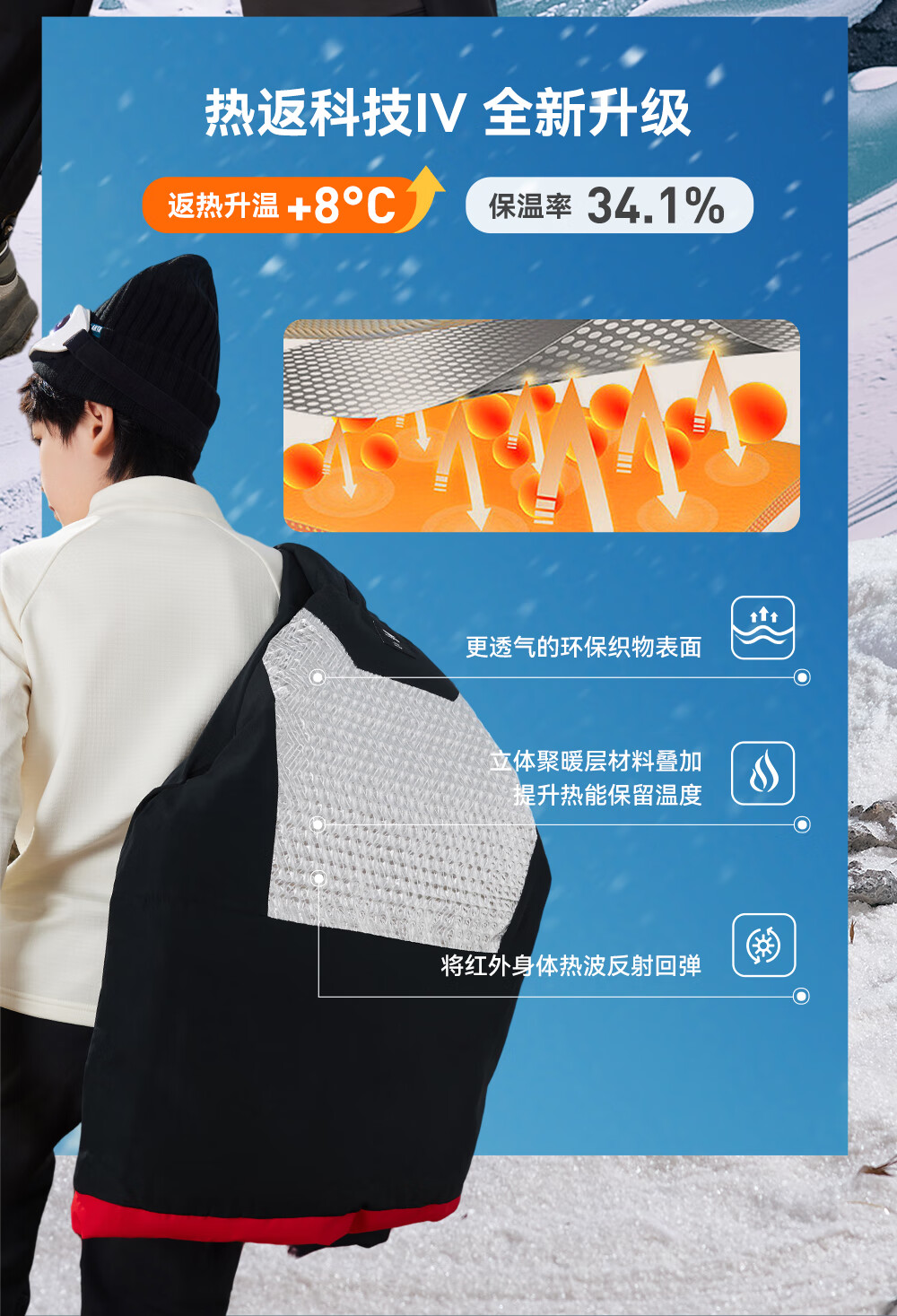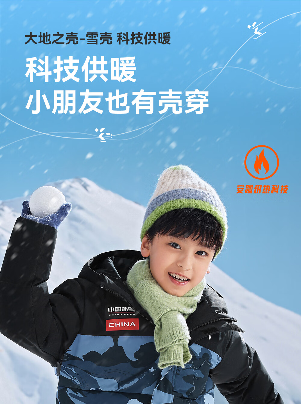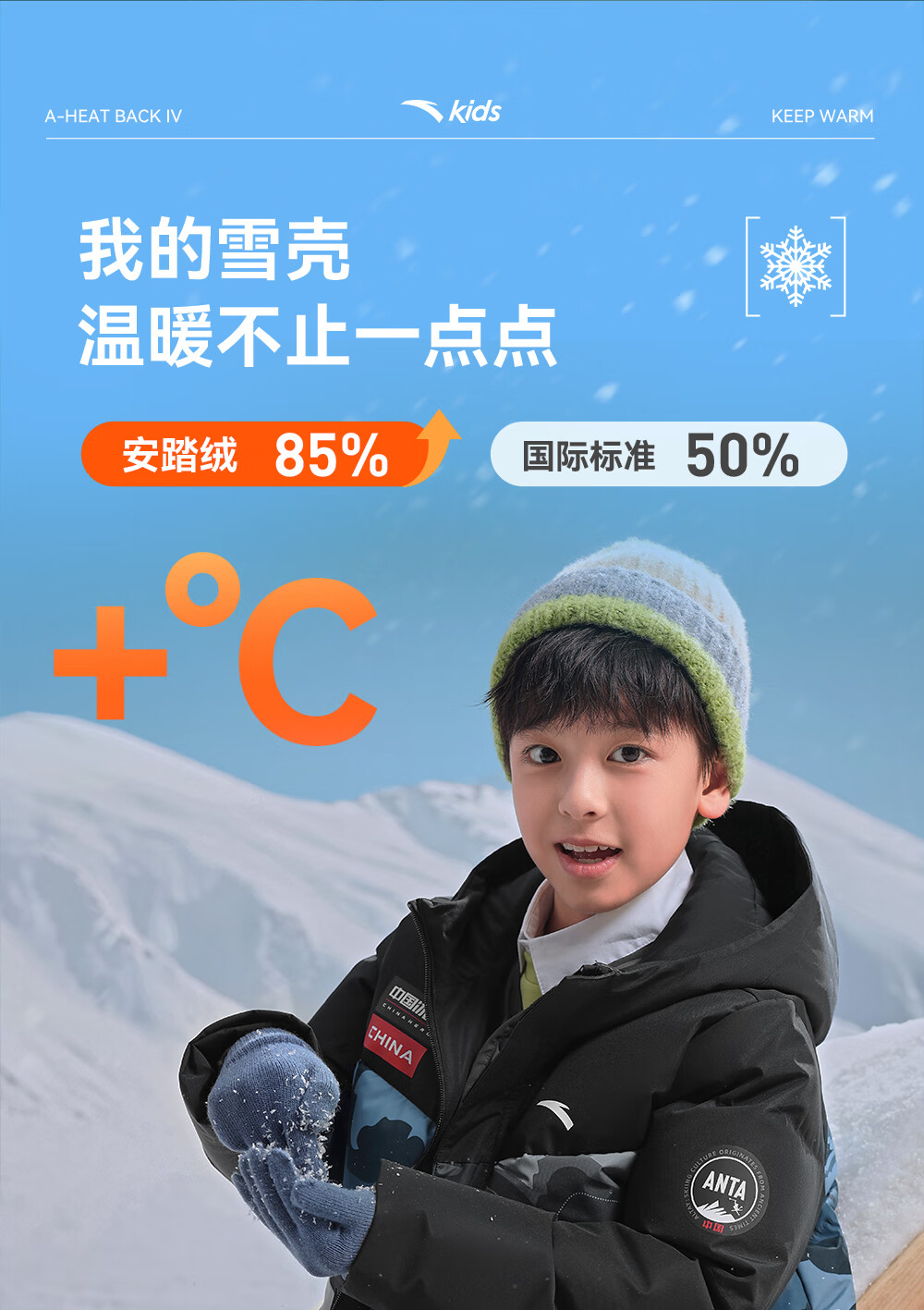 ANTA children's down jacket boys' 25-year winter outdoor three-proof snow shell heat return IV warm windproof thickened top jacket heat return IV snow shell late night blue/full print 6901H-8 down content 85% 160 down filling capacity 153g