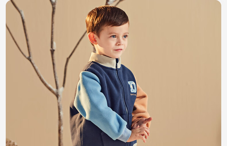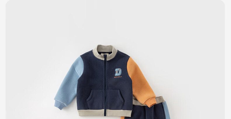 DAVE&BELLA Children's Sports Suit Girls' Autumn Clothes New Polar Fleece Boys' Clothes Large Children's Tops and Trousers Two-piece Set Navy Blue Ready Stock 100 cm (recommended height 90-100cm)