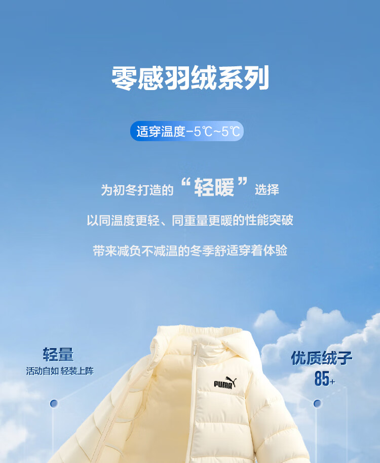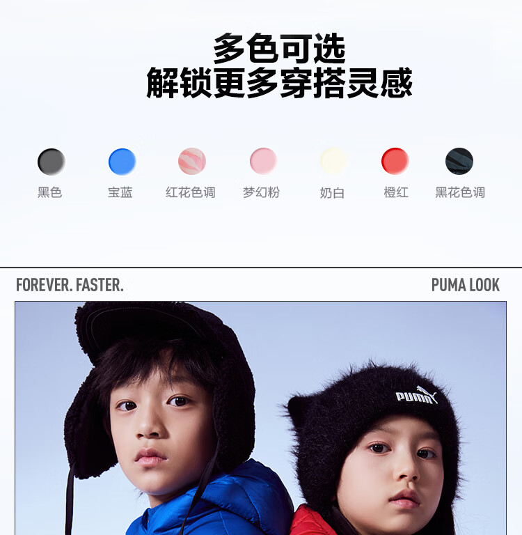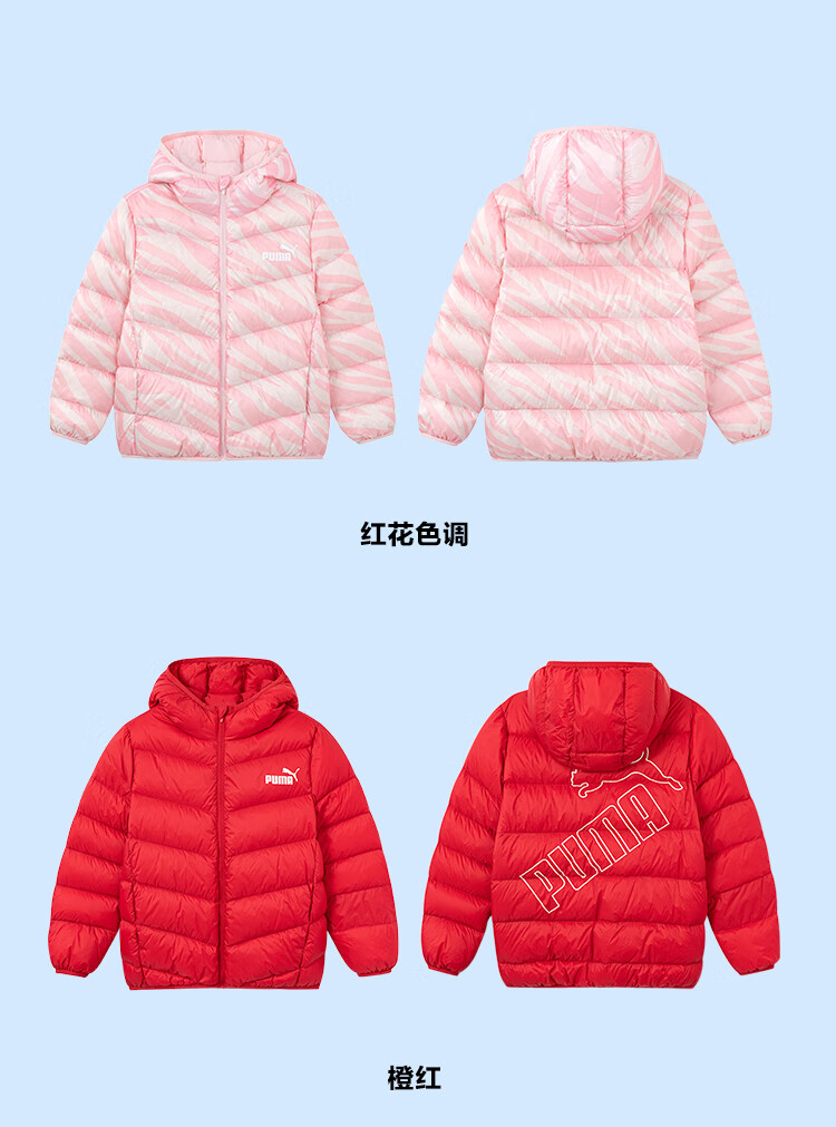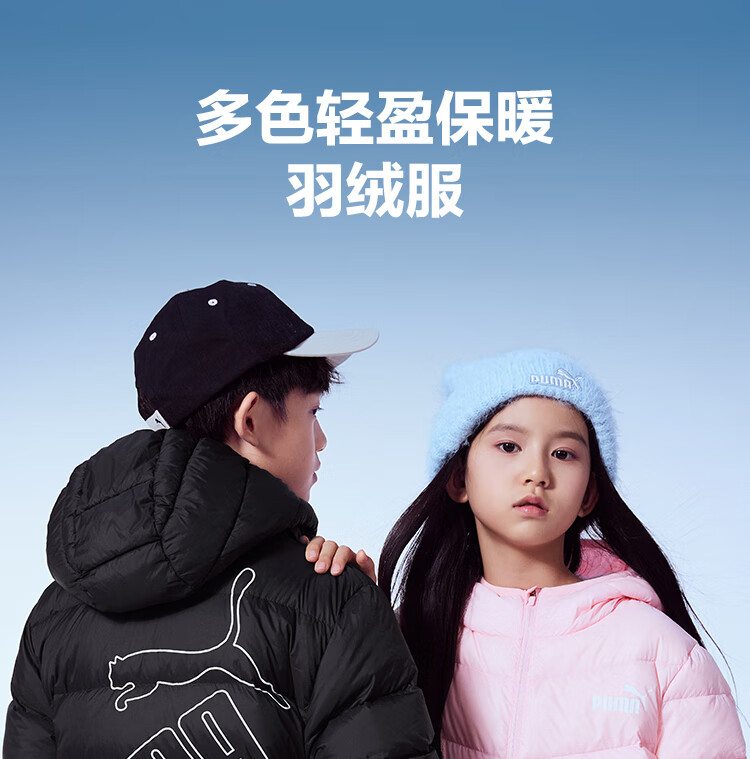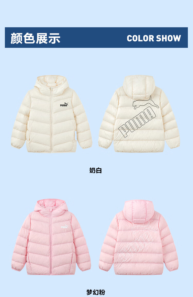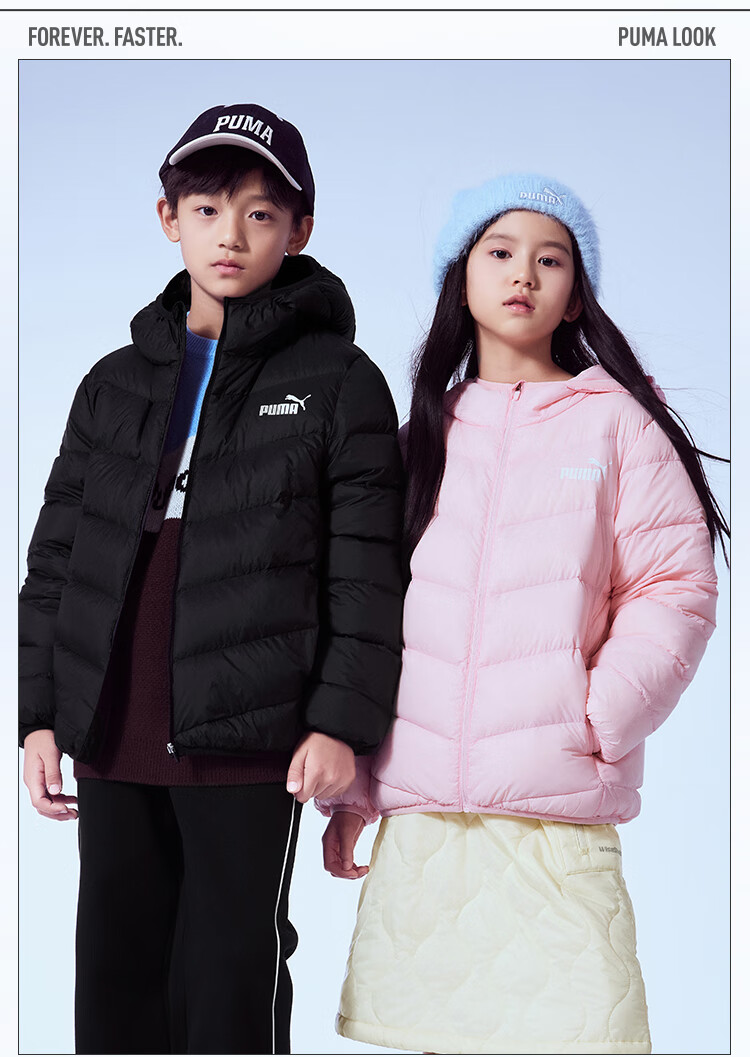 Puma's new children's winter down jacket hooded, warm and fashionable black 90001 150