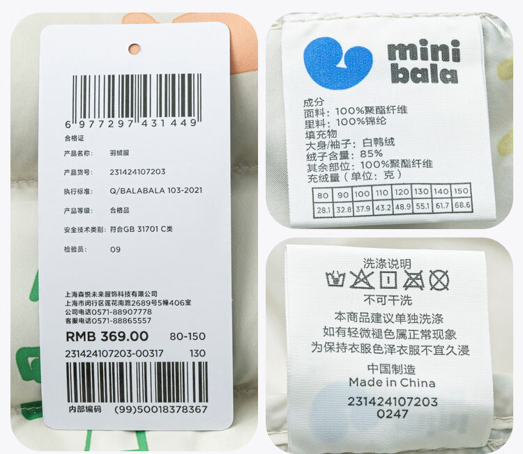 Mini Bala Waterproof and Breathable Warm Hooded Three-Proof Warm Children's Down Jacket for Boys and Girls New Autumn and Winter 2025 White and Purple Tone White Duck Down-1000+ Cleanliness 120 Down Filling Capacity 46.4g