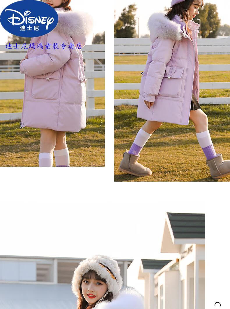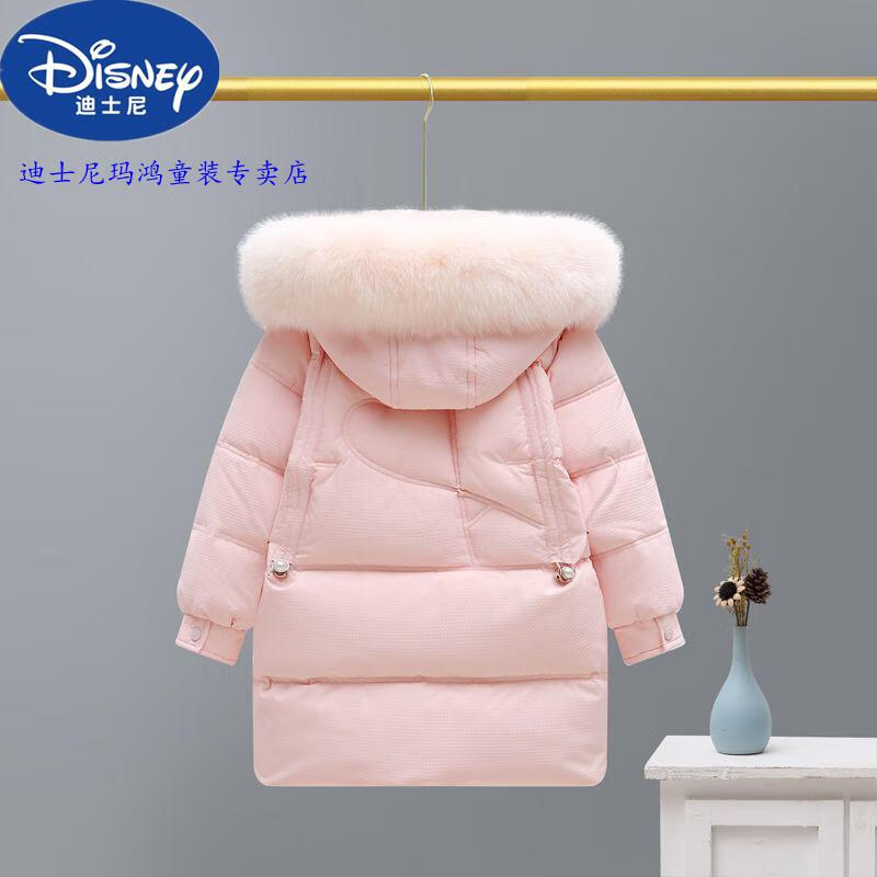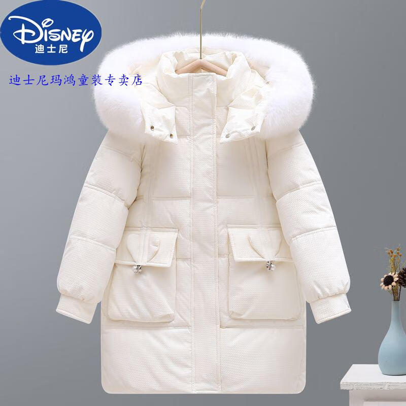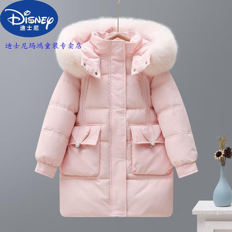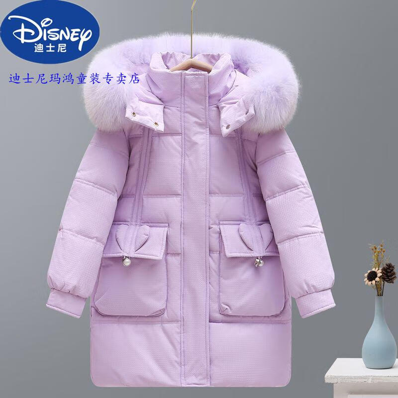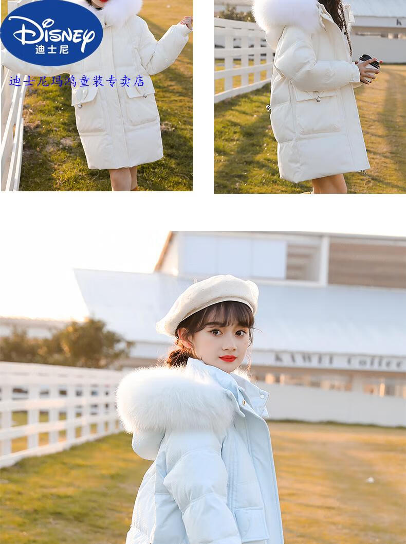 Disney (Disney) White Duck Down 2024 New Girls' Down Jacket Mid-Length Children's Three-proof Washable Winter Thickened Jacket for Medium and Large Children Starry Sky Blue 150