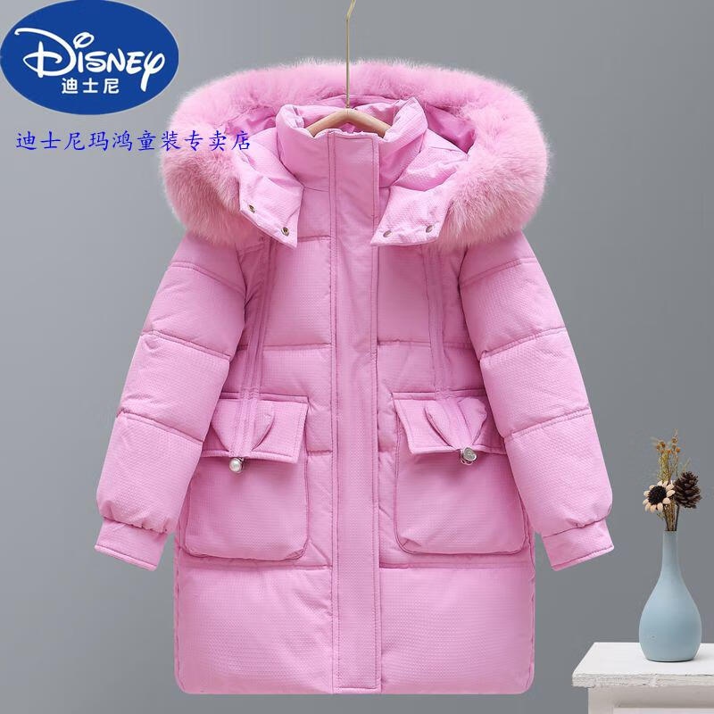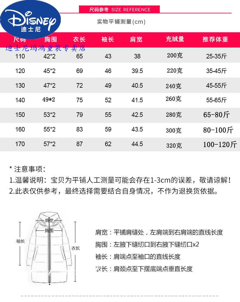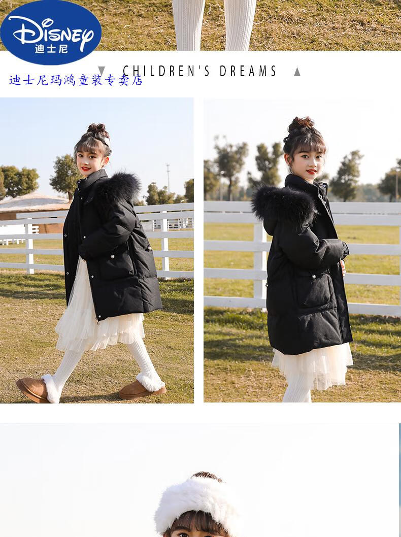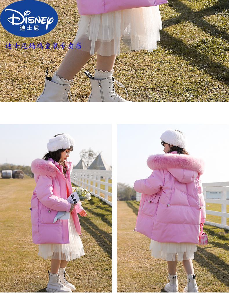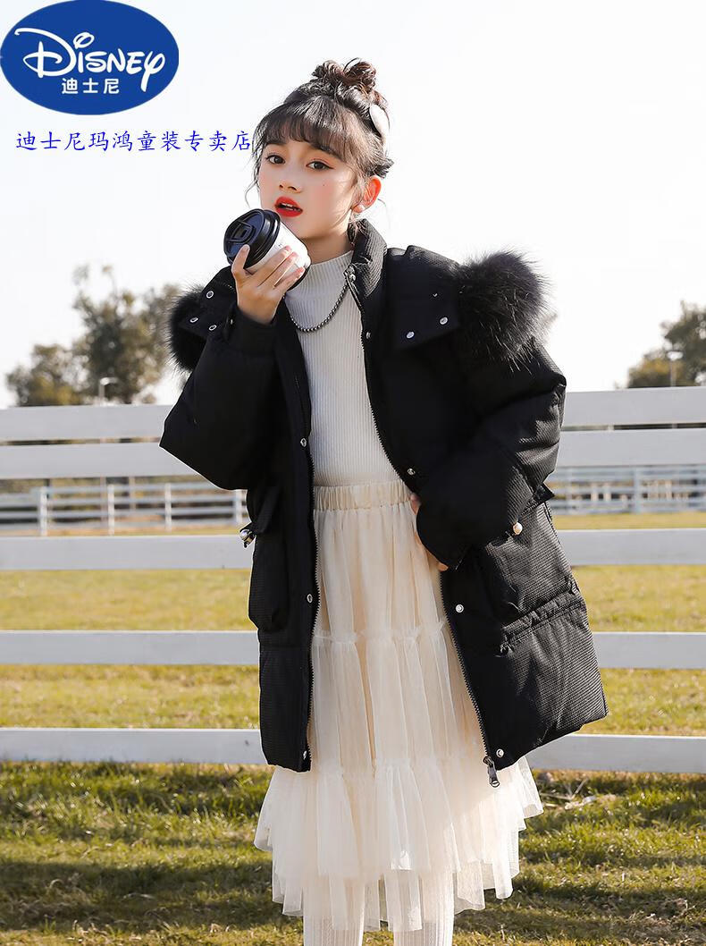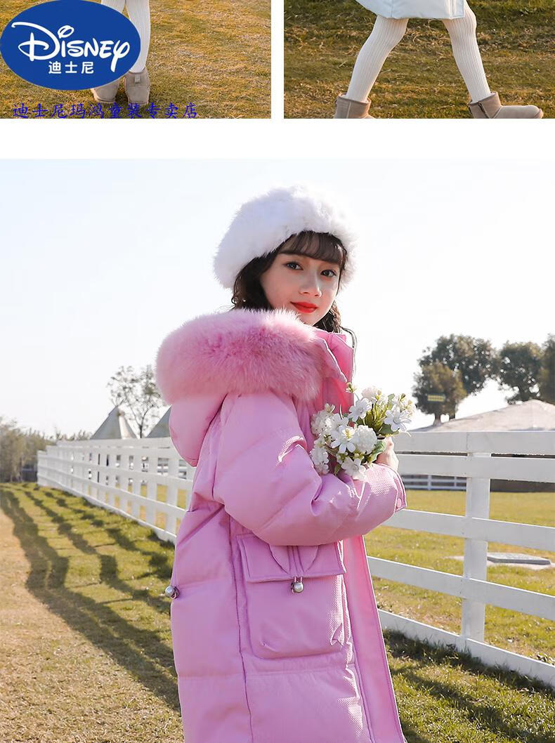 Disney (Disney) White Duck Down 2024 New Girls' Down Jacket Mid-Length Children's Three-proof Washable Winter Thickened Jacket for Medium and Large Children Starry Sky Blue 150