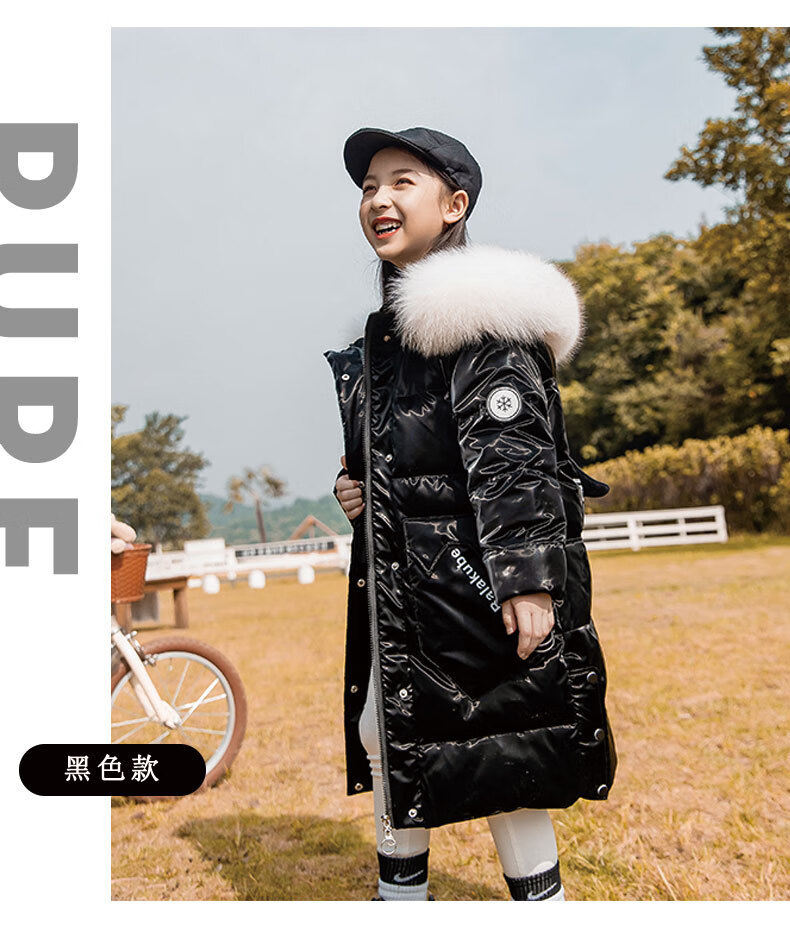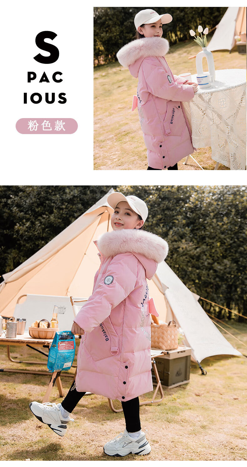 G.DUCKKIDS Girls' Down Jacket Shiny Disposable Mid-Length Medium and Large Children's 2025 New Korean Version Thickened Children's Winter Jacket Trendy Pink 150