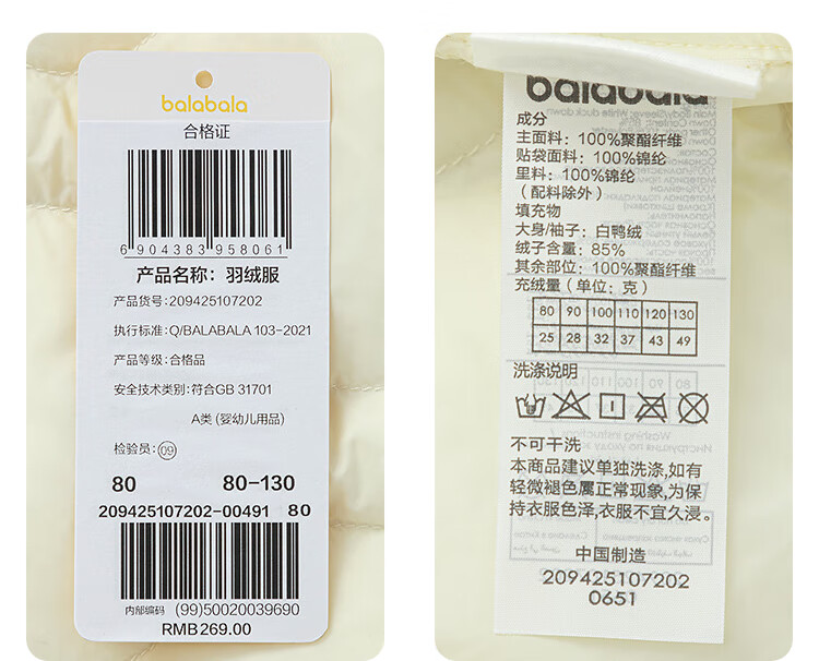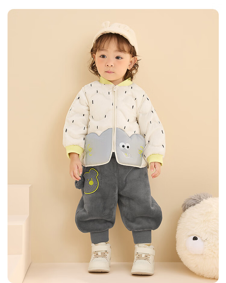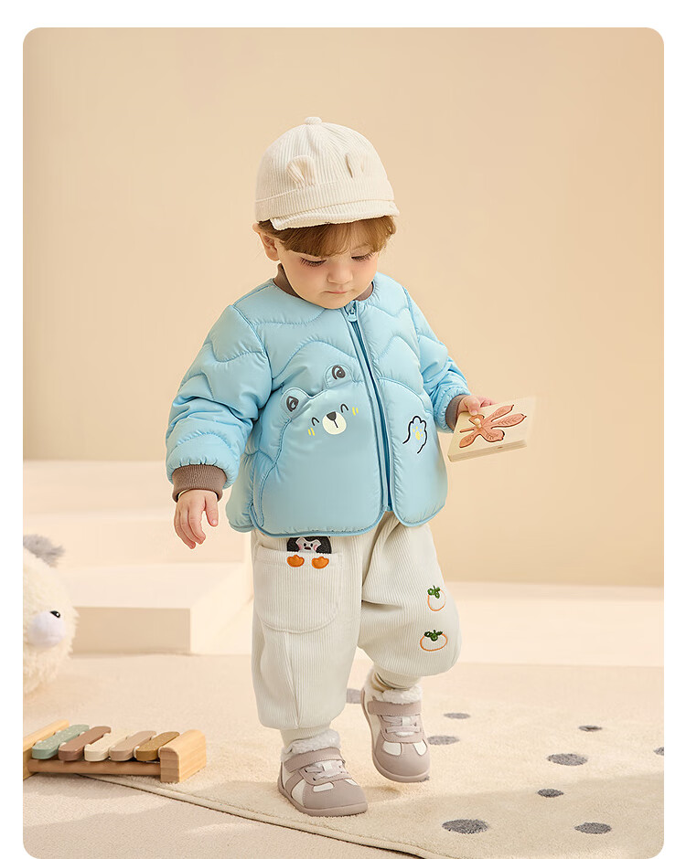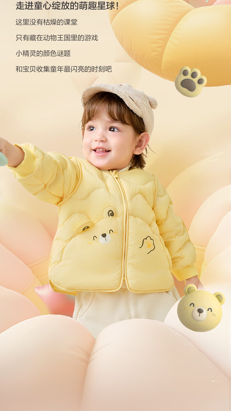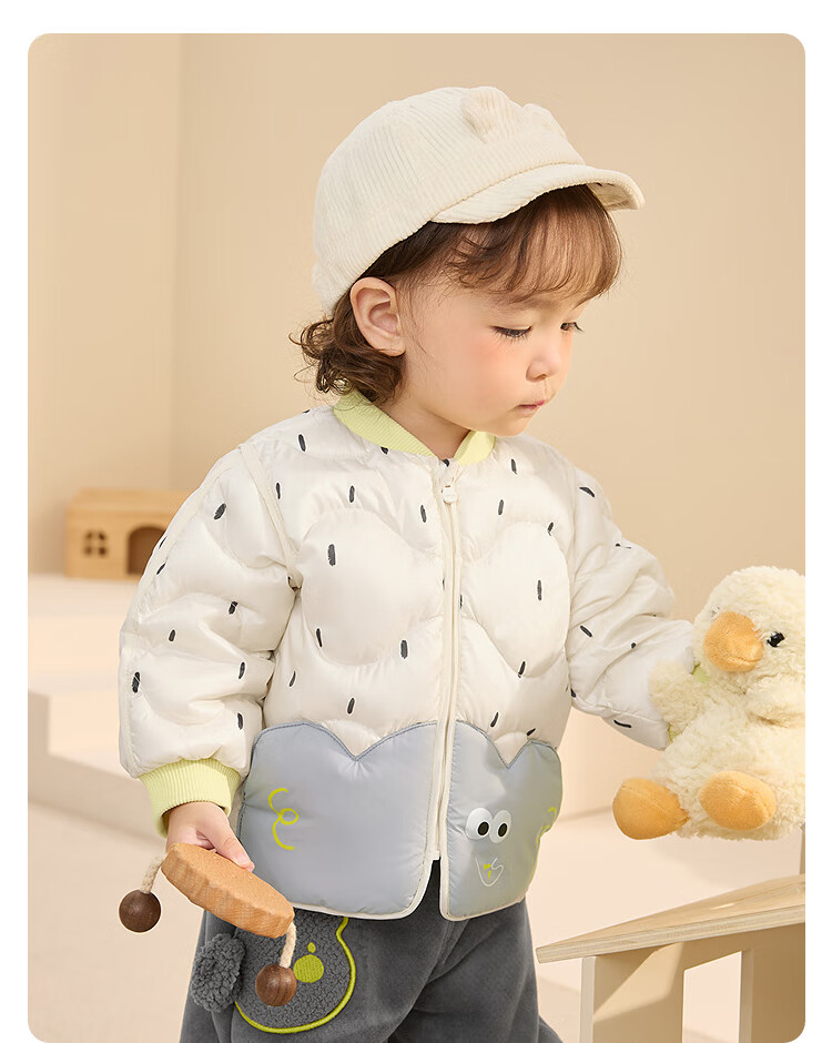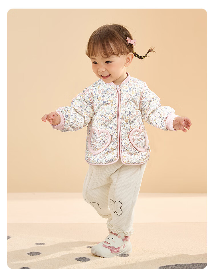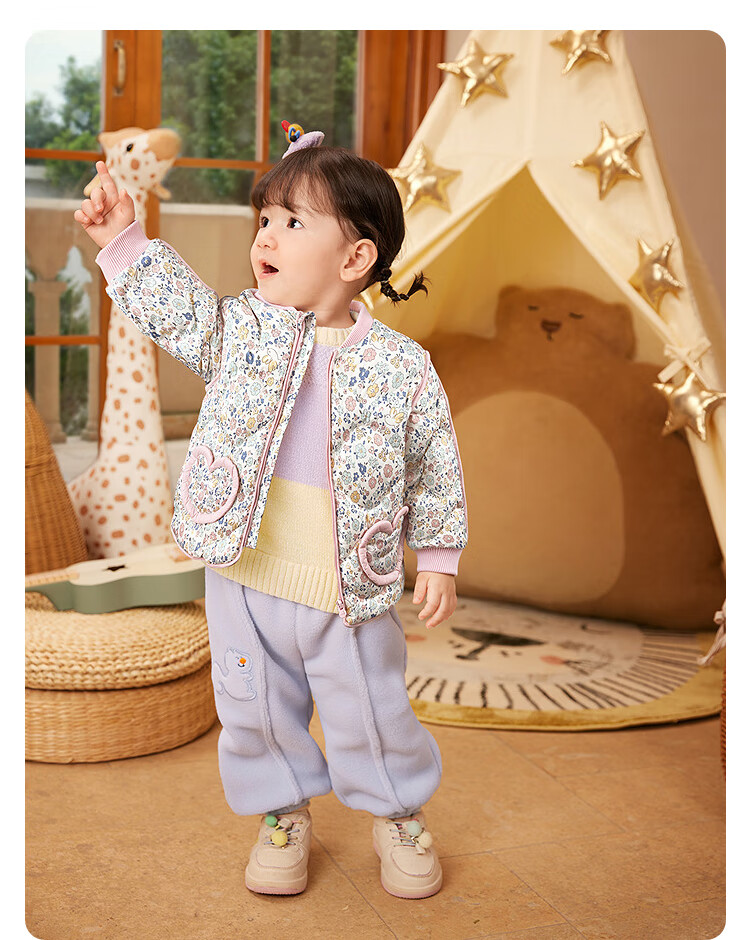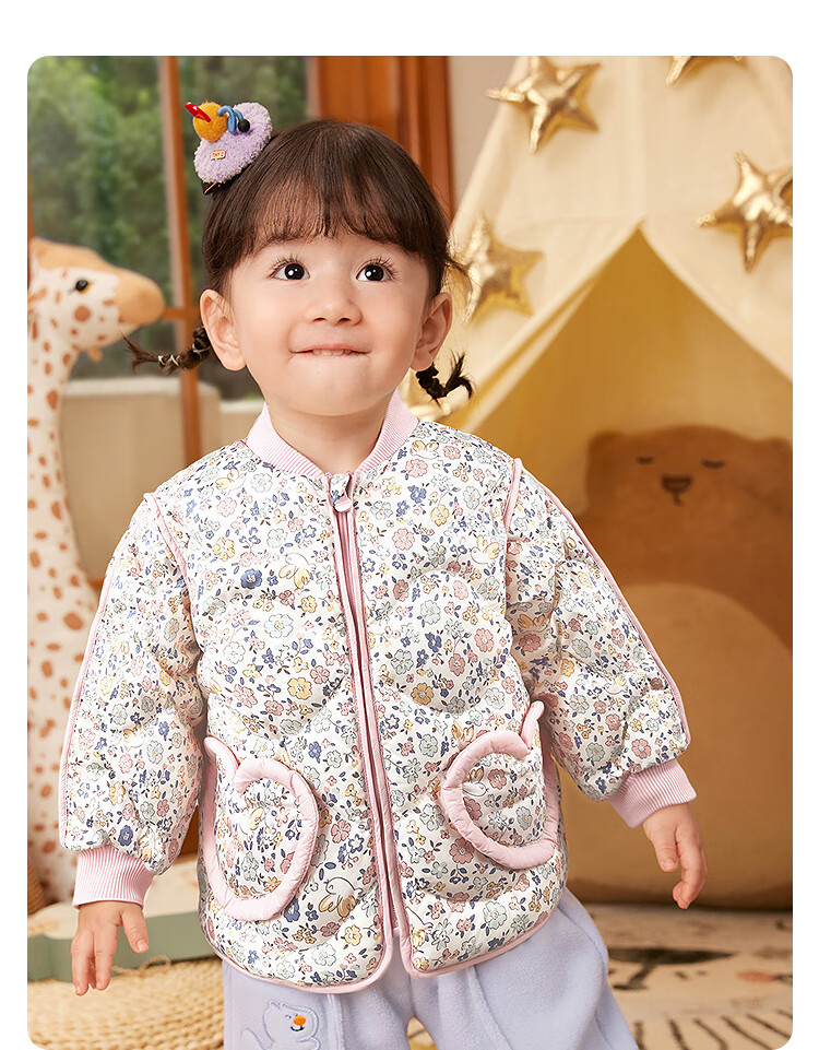 Balabala children's down jacket three-proof clothing light baseball collar jacket boys and girls 2025 new autumn and winter clothing floral cute sweet little floral 00387-white duck down 90 filling capacity 28g