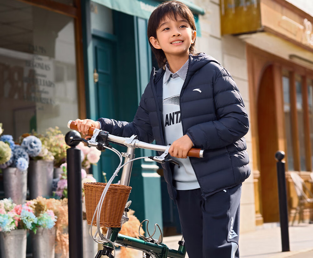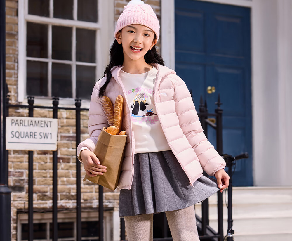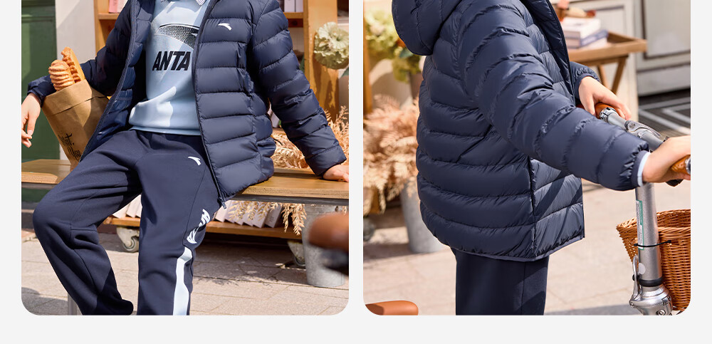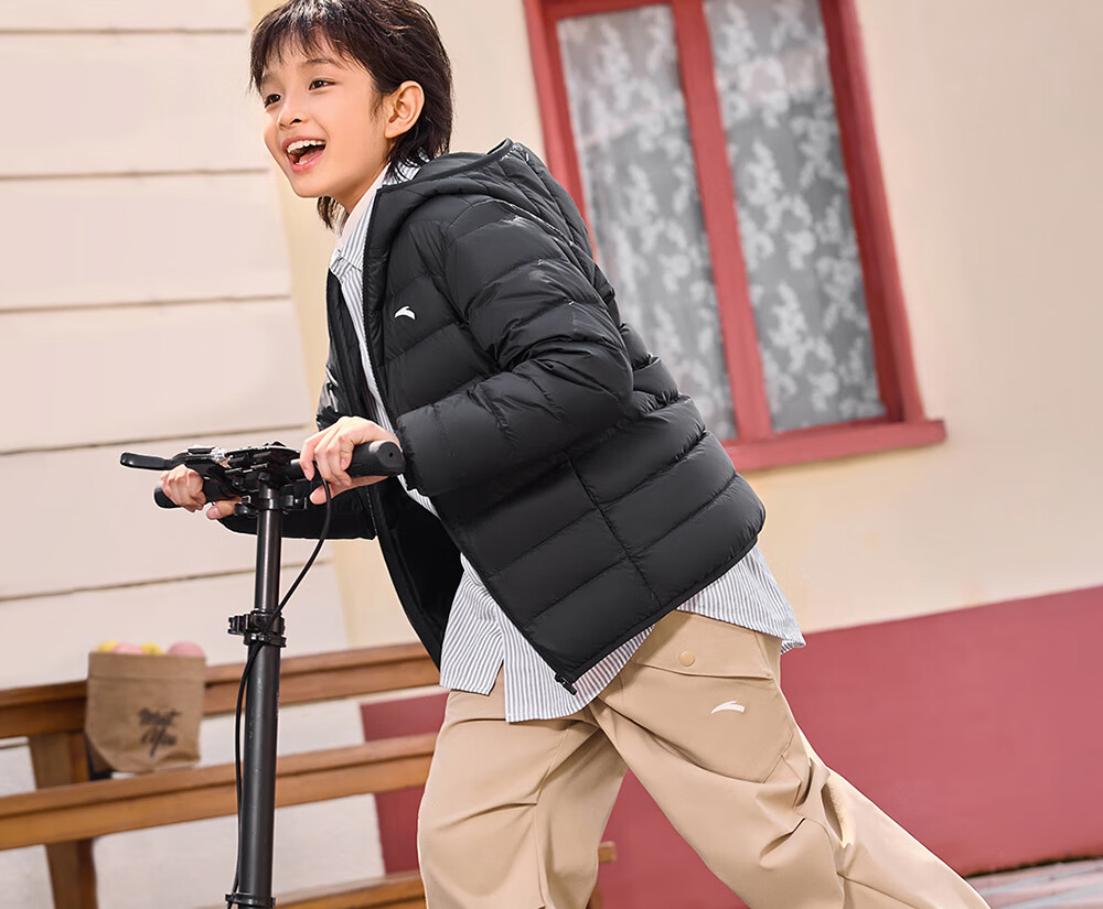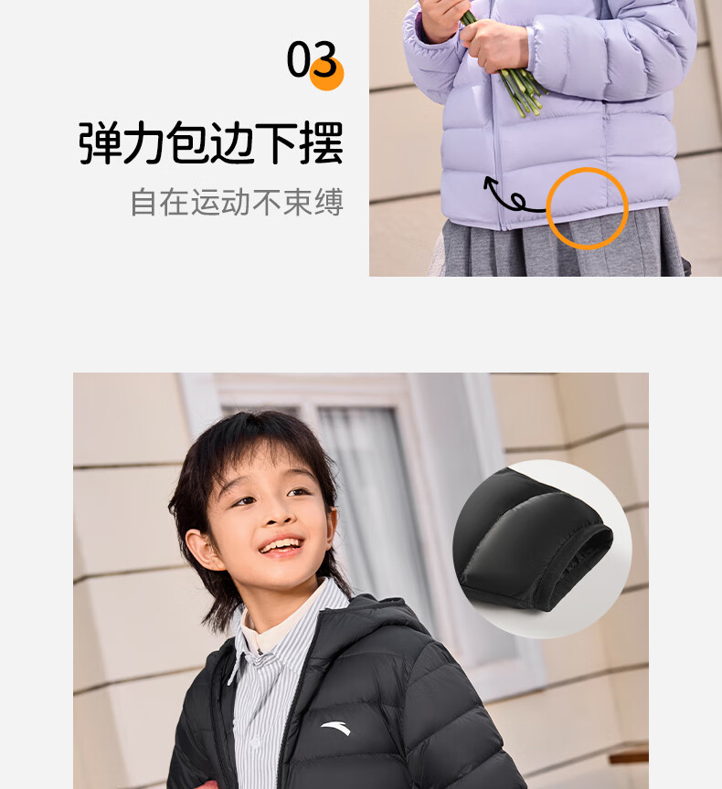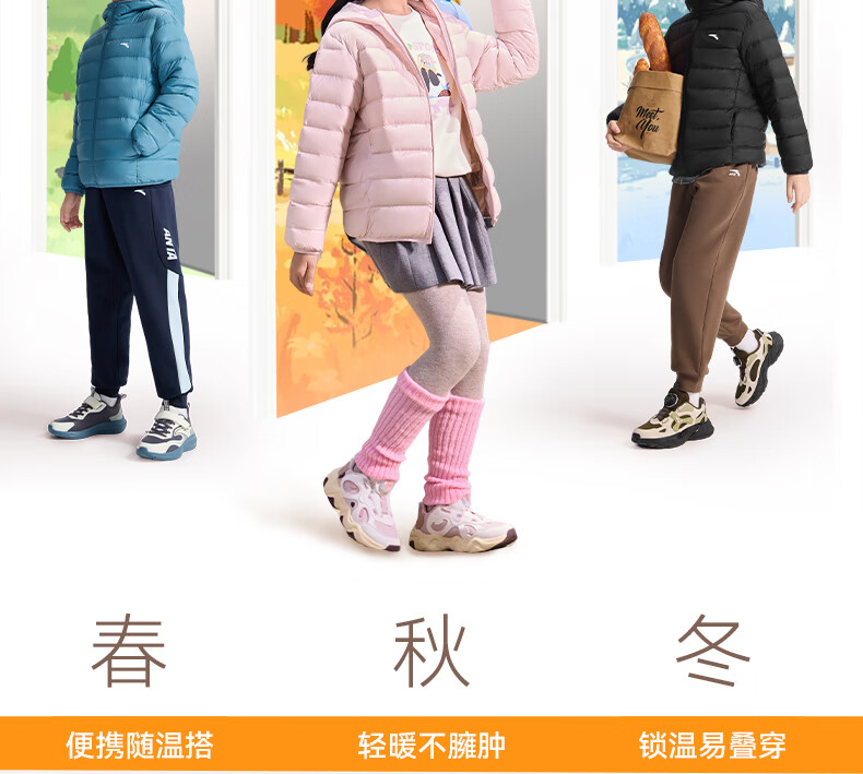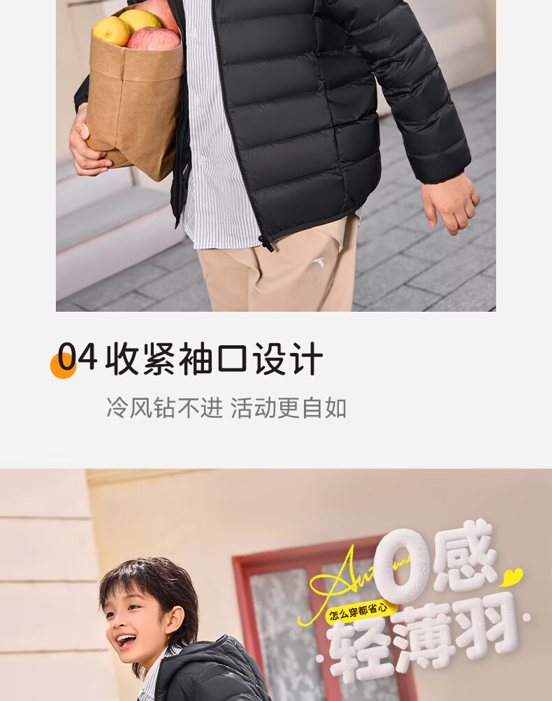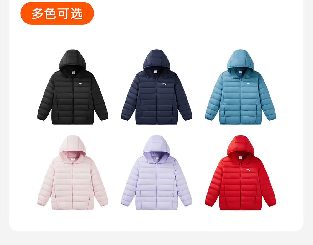 ANTA children's down jacket for boys and girls 25 years new winter style breathable, warm and comfortable solid color thin down jacket, rigid and soft pink-6, down content 85% 150, down filling 48g