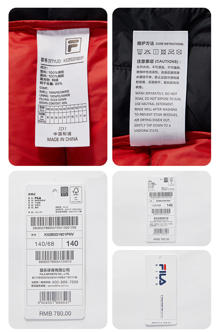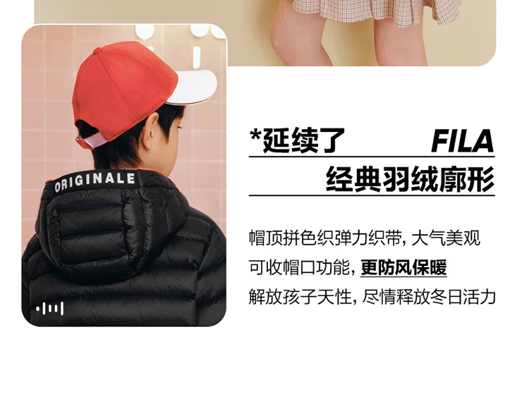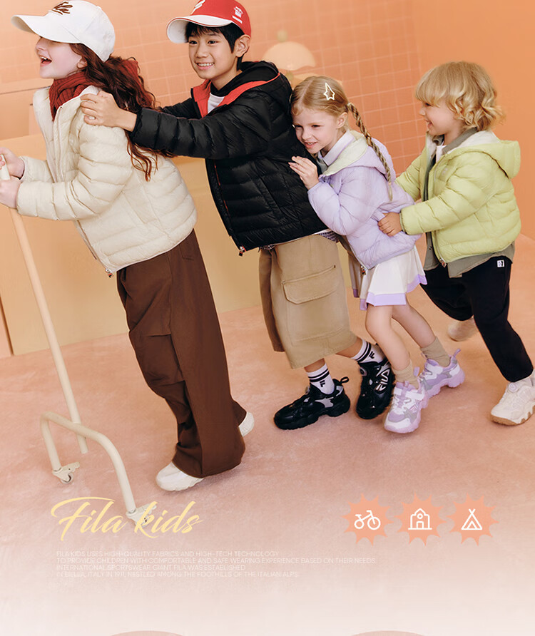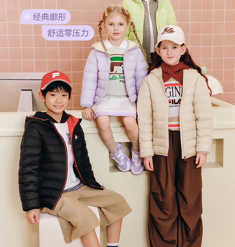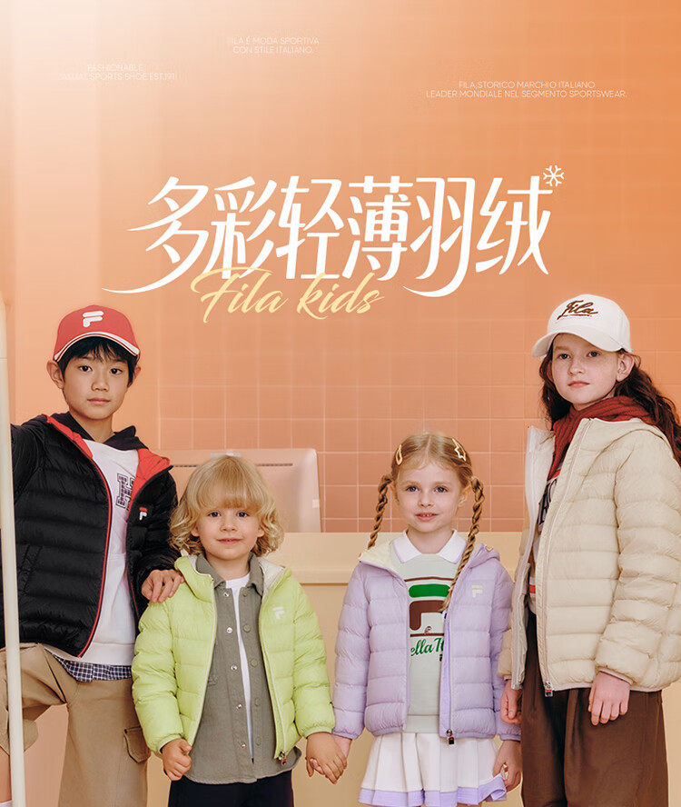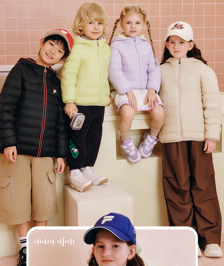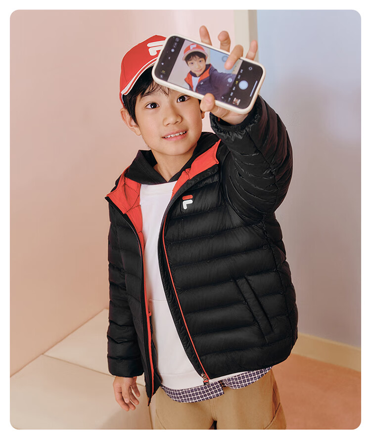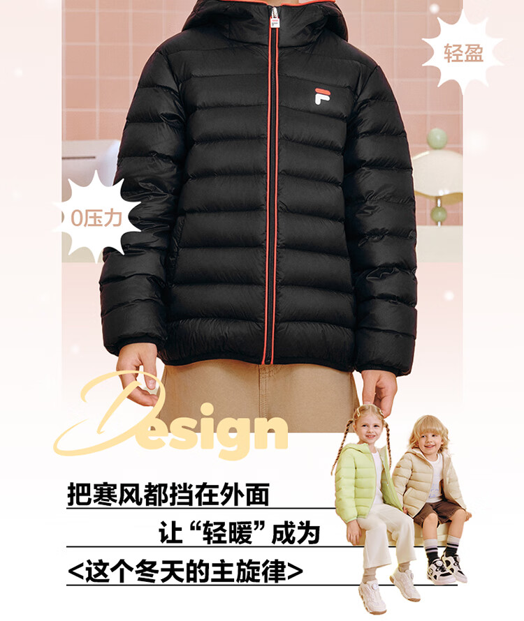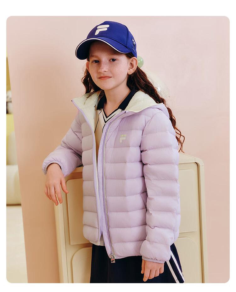 FILA Children's Clothing Cotton Feather 2025 Autumn New Lightweight Down Jacket for Boys and Girls, Thin Legend Blue-NV 150