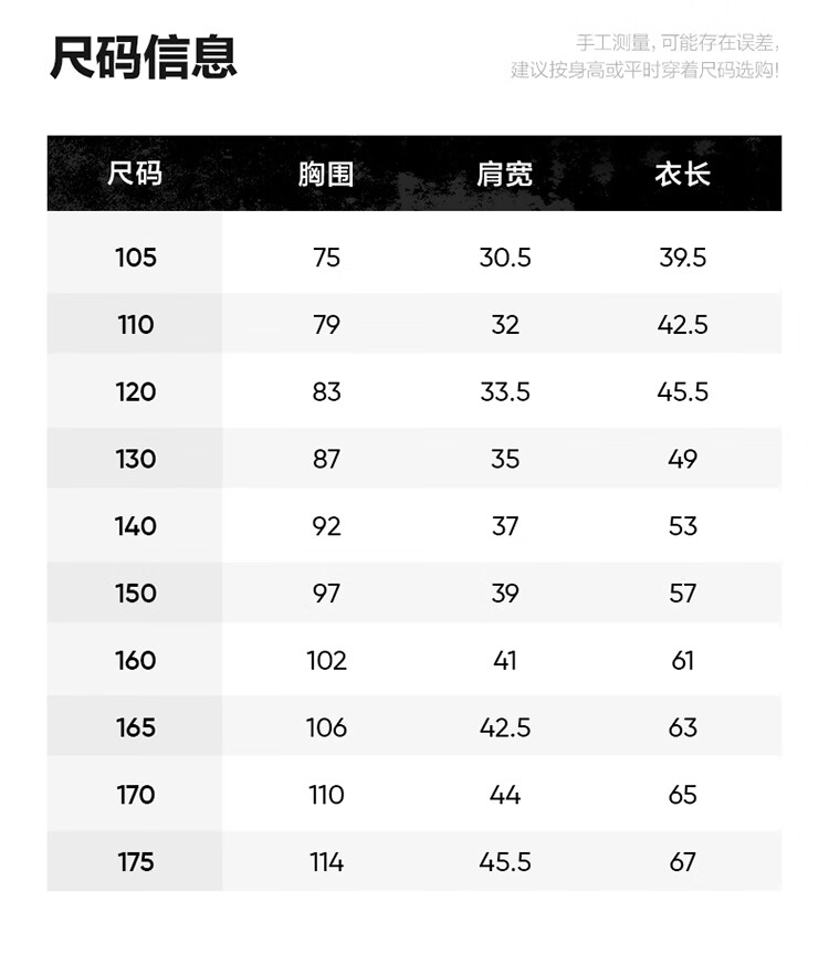 China (cm) 160-165/84-86 165-170 / 88-90 167-172 / 92-96 168-173 / 98-102 170-176 / 106-110