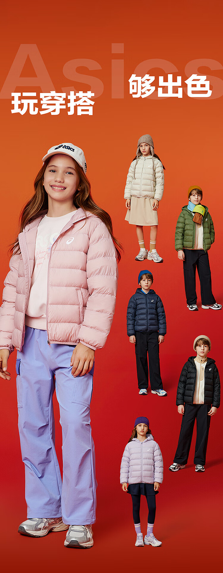 ASICS Children's Wear 25 Years Winter Children's Soft and Comfortable Three-Proof Lightweight Warm Down Jacket High Down Filling Pink Cleanliness 1000-Duck Down 170 Down Filling 109.2g