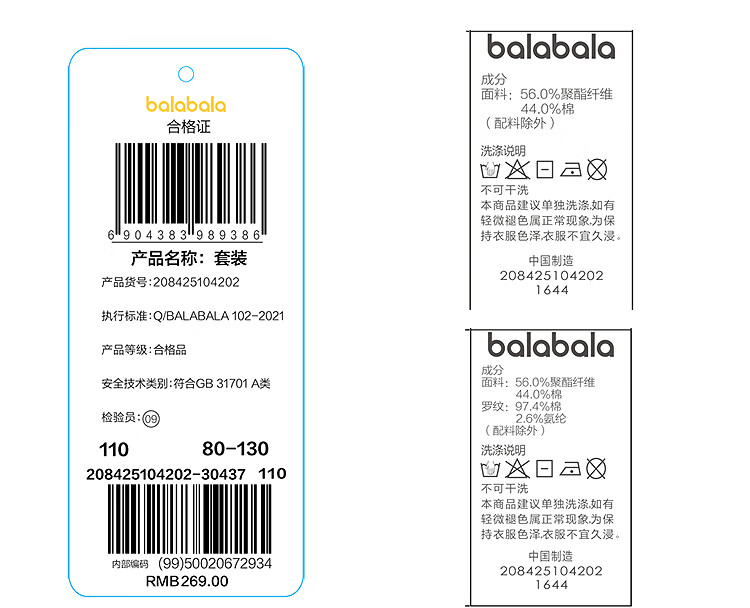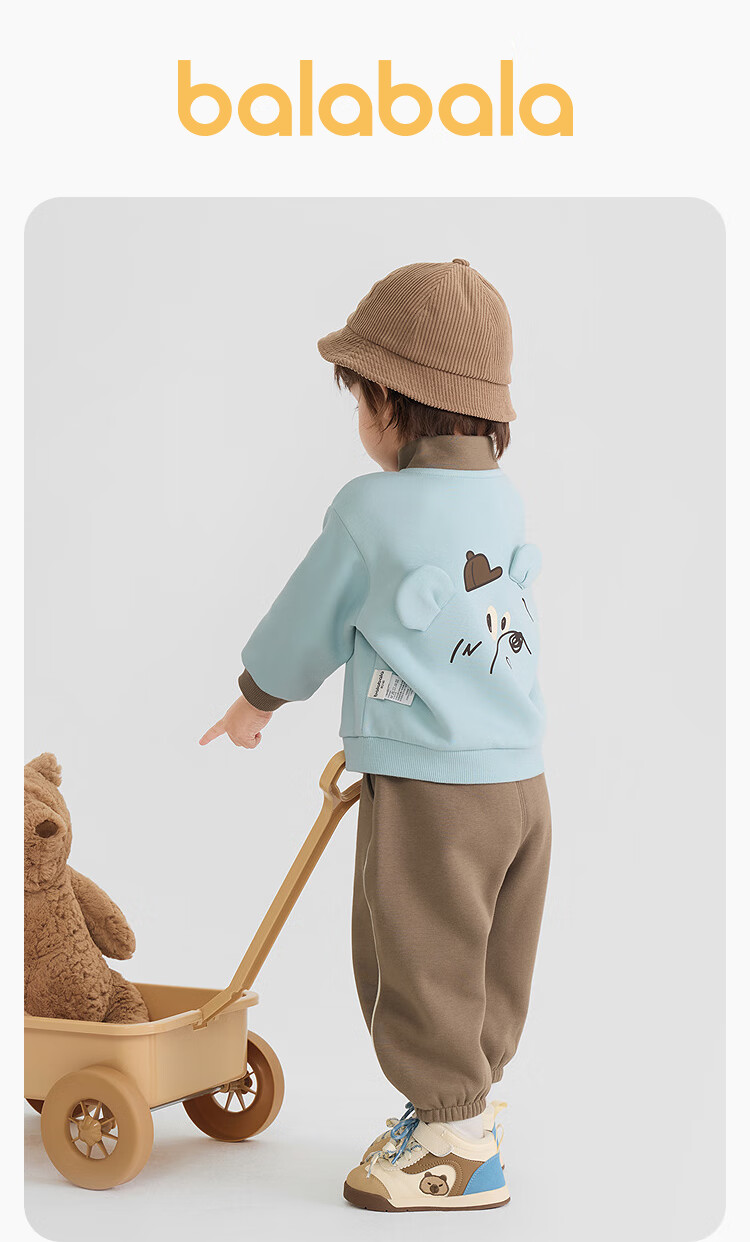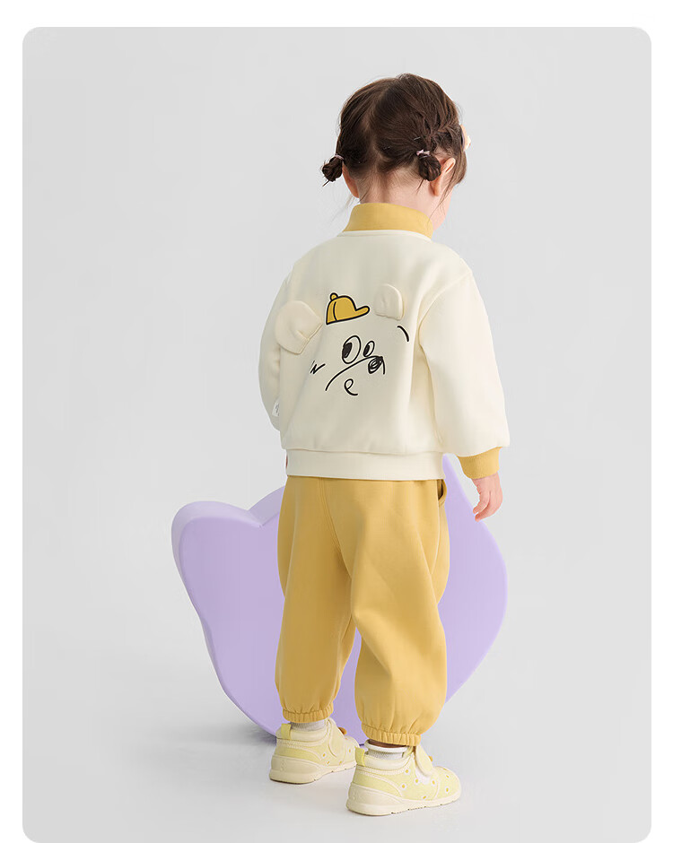 Balabala children's clothing children's suit girls and boys two-piece set 2025 autumn and winter new comfortable clothes toddler clothes cute and cute white and yellow suit 30437 100