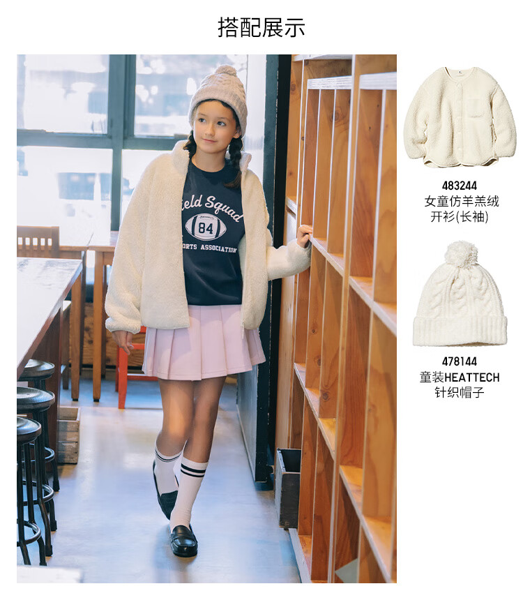 Uniqlo children's clothing girls' imitation sherpa cardigan long-sleeved fleece warm jacket 25 autumn and winter new style 483244 09 black 150