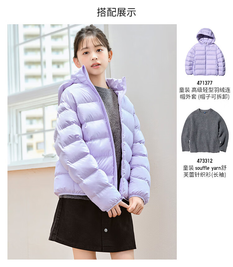 Uniqlo children's clothing boys and girls advanced lightweight down hooded jacket with removable hat 471377 54 green 130