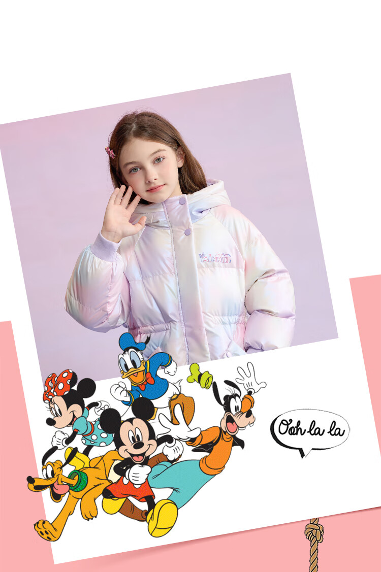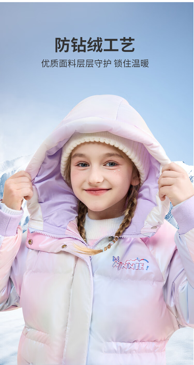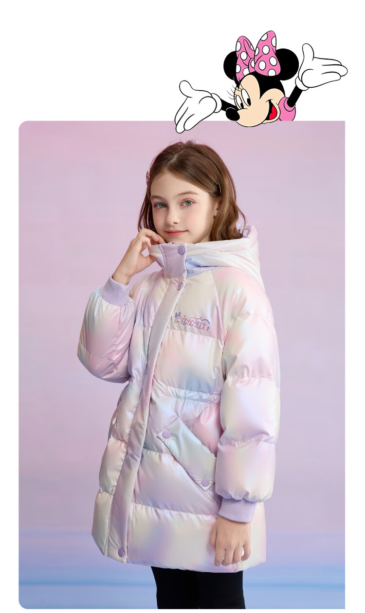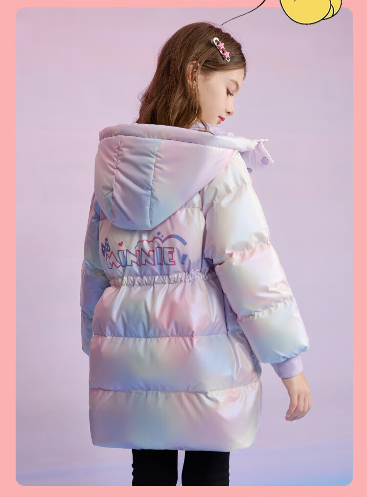 Disney's New National Standard Children's Down Jacket 2025 Winter New Hooded Colorful Mid-Length Style Top Clothes Children's Clothes Purple 90 White Duck Down One Size 130cm Filled Down Approximately 118g