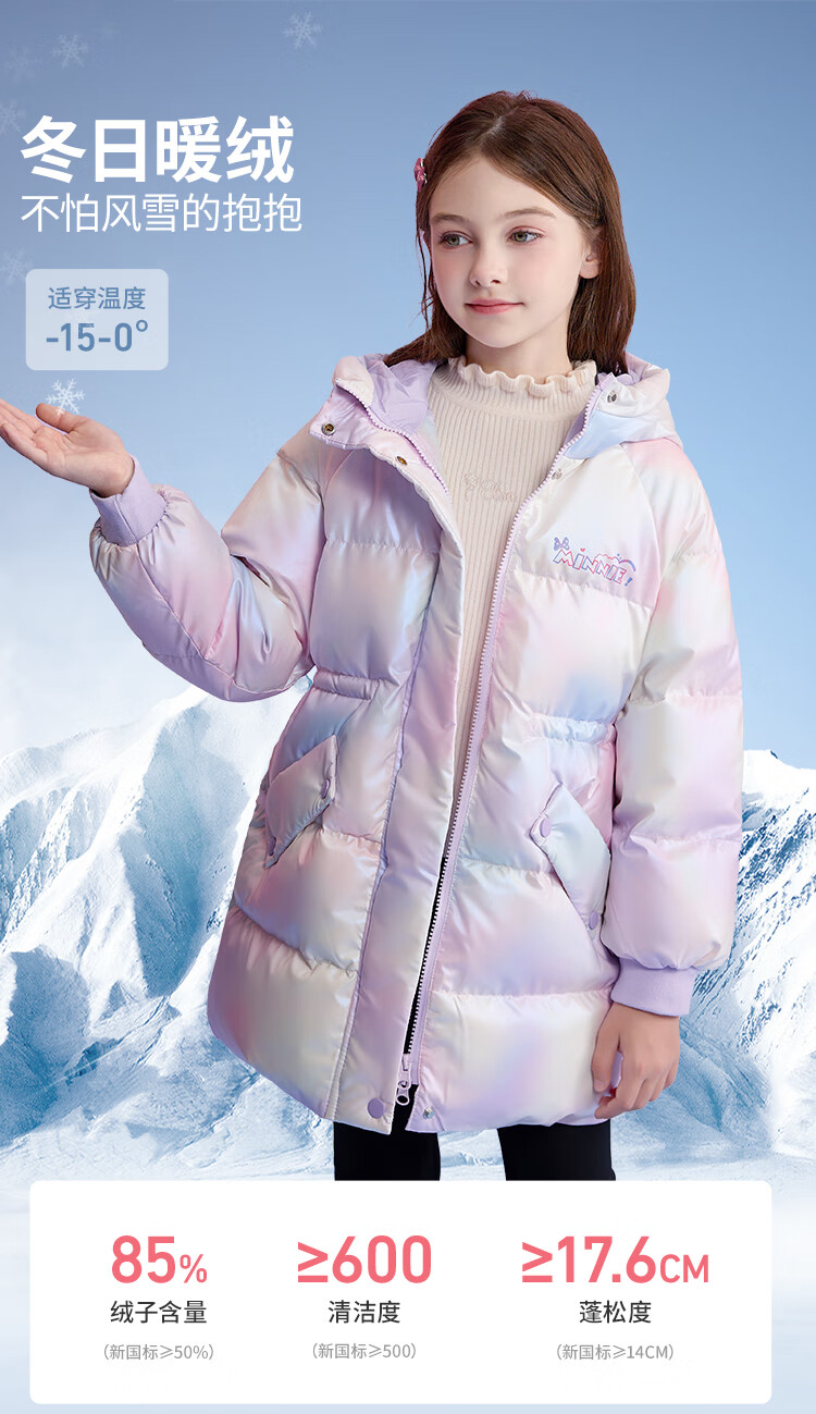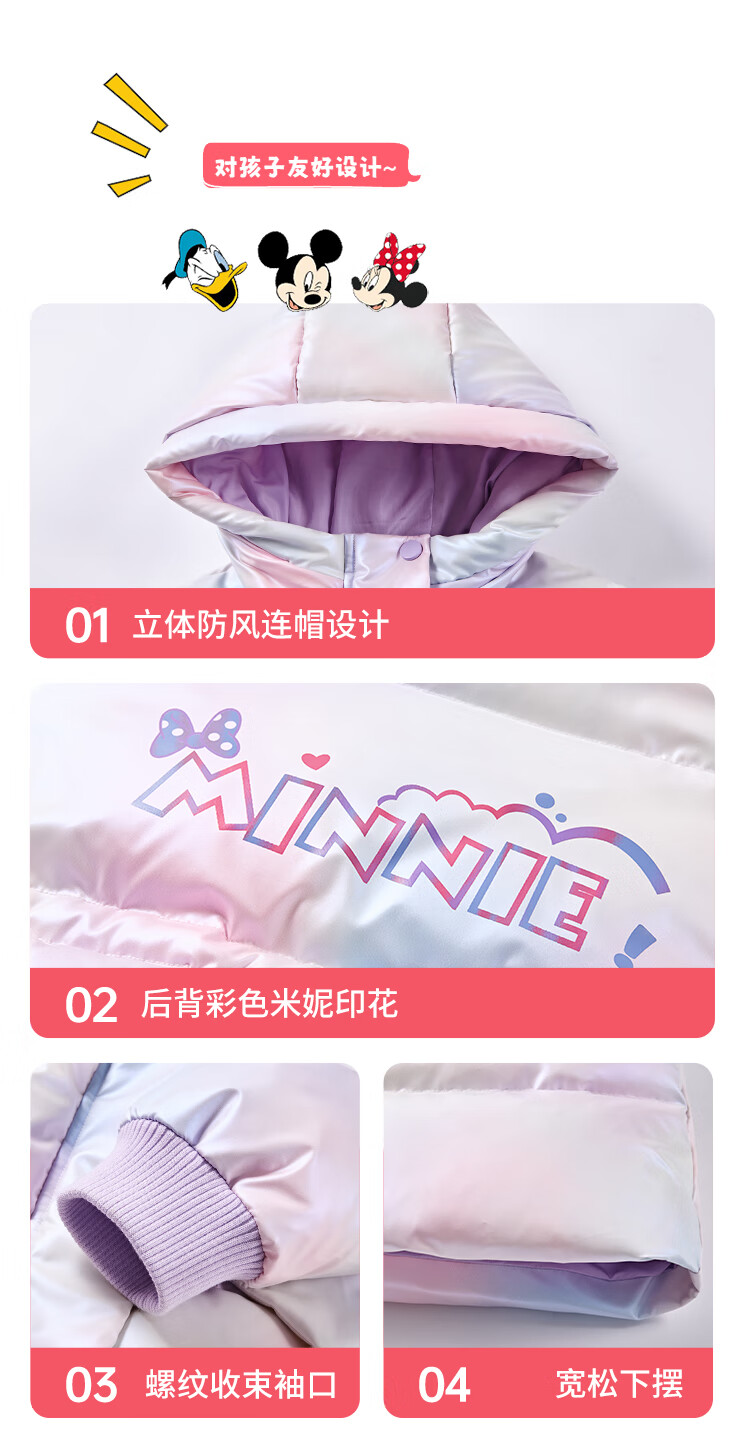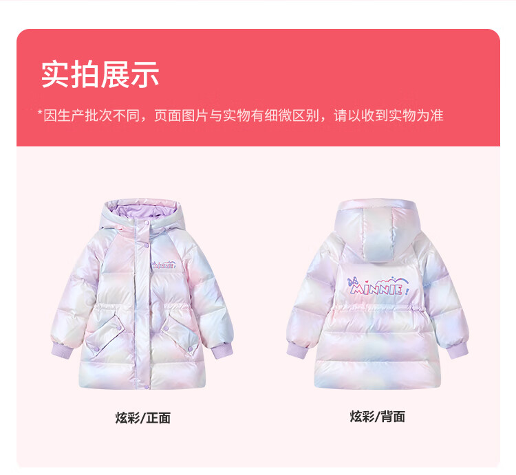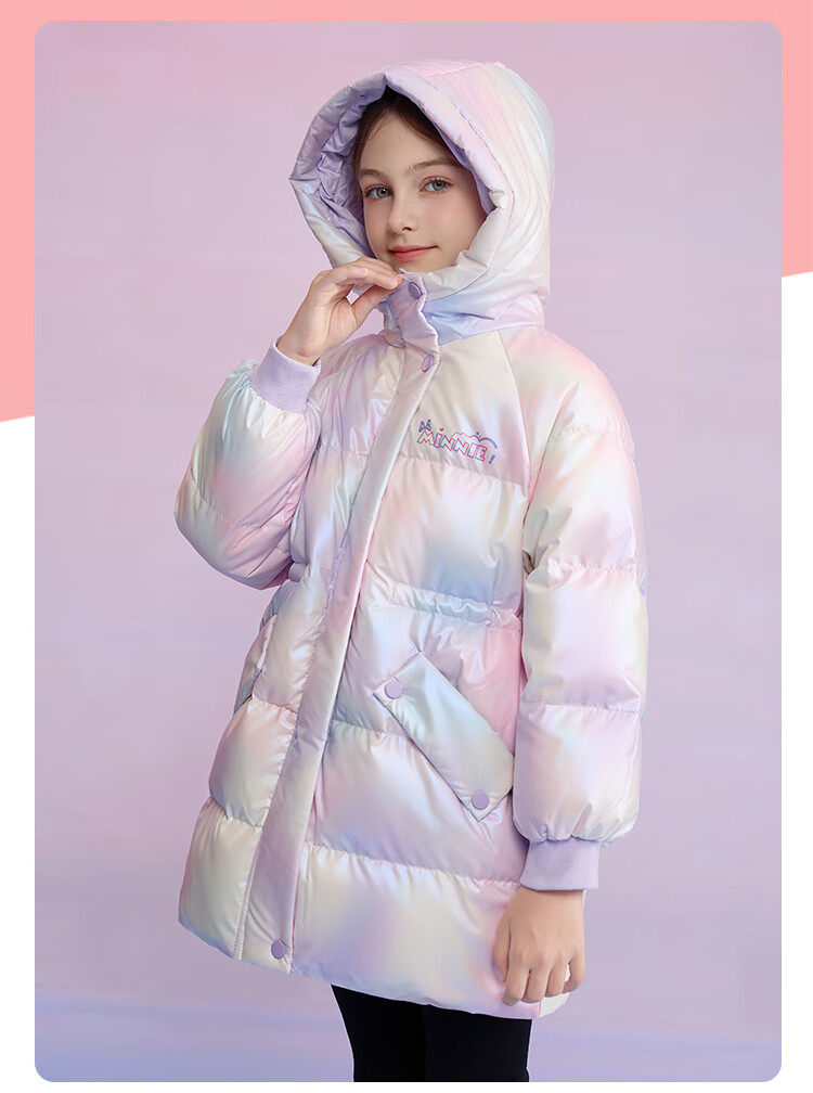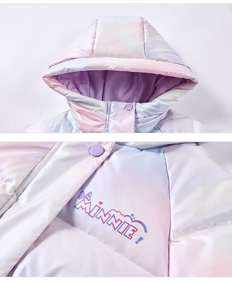 Disney's New National Standard Children's Down Jacket 2025 Winter New Hooded Colorful Mid-Length Style Top Clothes Children's Clothes Purple 90 White Duck Down One Size 130cm Filled Down Approximately 118g