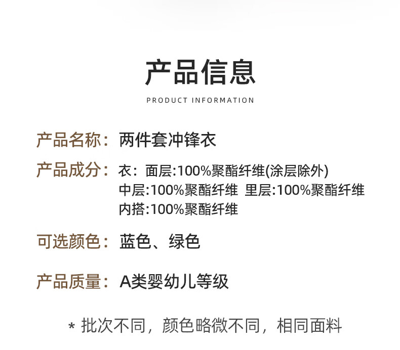 Bali Piggy Boy's Charge Jacket Autumn Outdoor Cover Children's Clothes 2024 New Early Spring Autumn Baby Girl Jacket Three-Proof 2-piece Set Green 90 cm