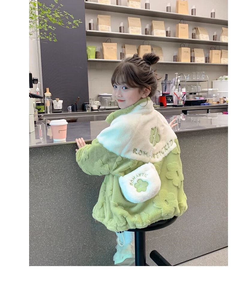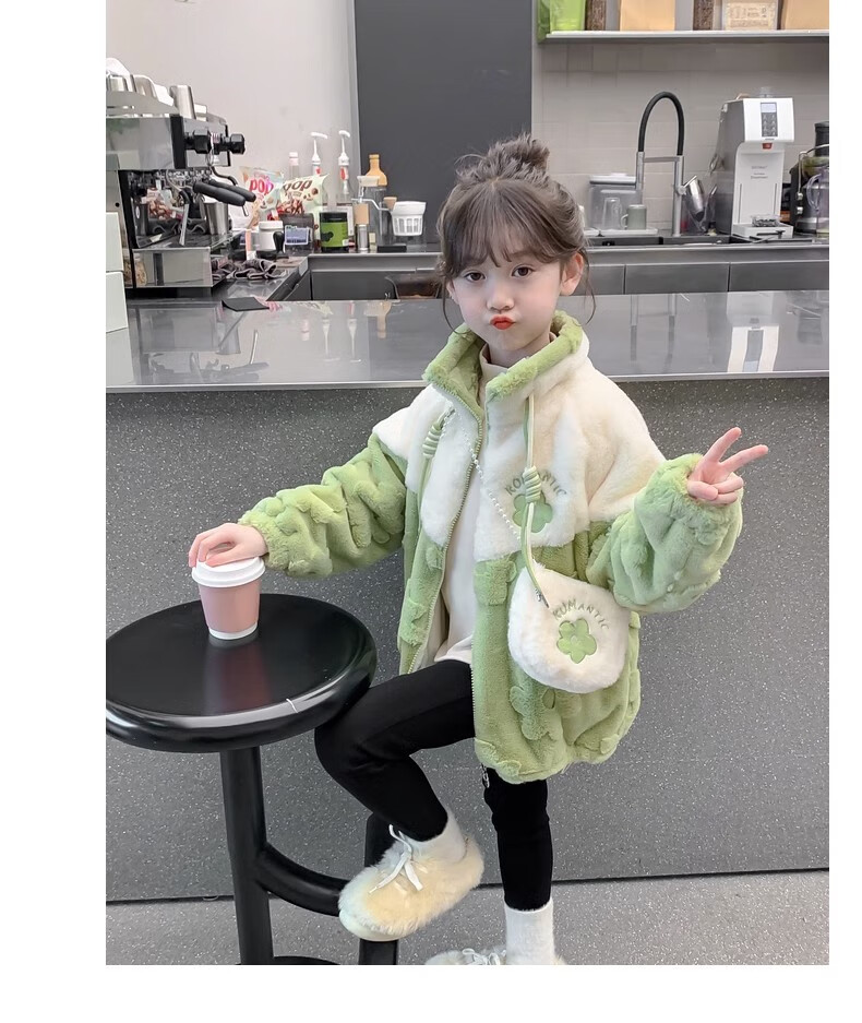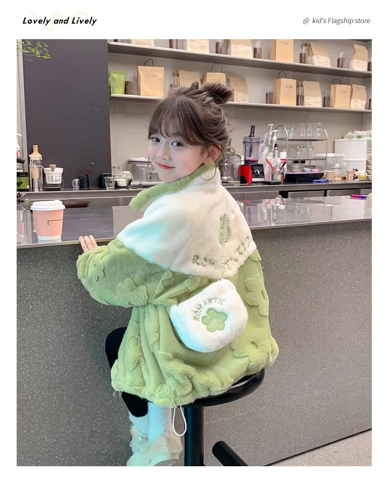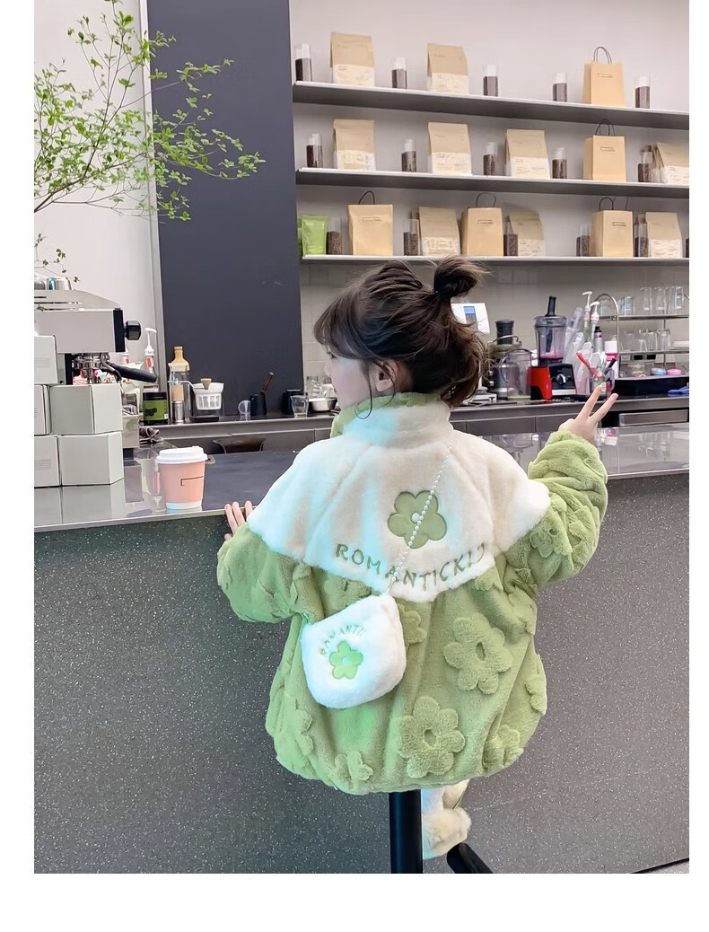Disney Girls Winter Jacket 2025 New Style Children's Winter Thickened Little Girl Lamb Plush Padded Top Trendy Pink with Bag 110