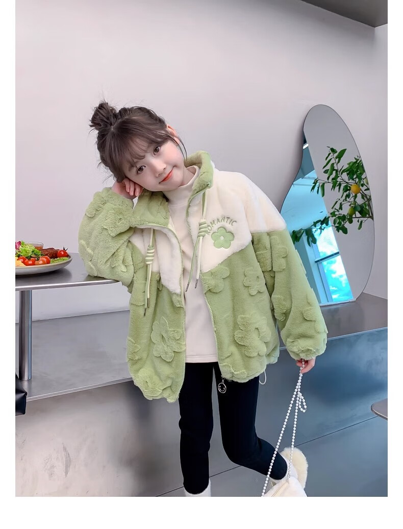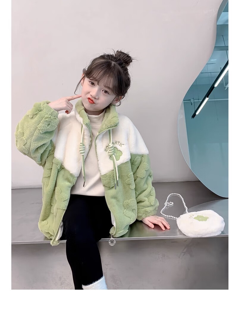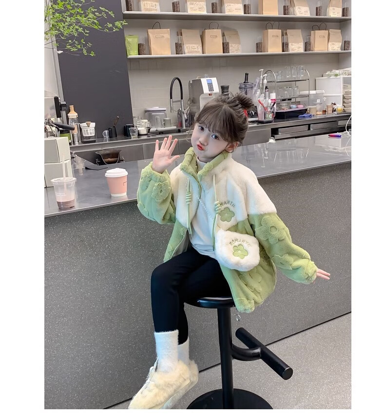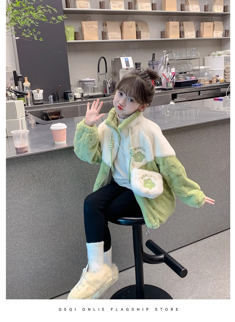 Disney Girls Winter Jacket 2025 New Style Children's Winter Thickened Little Girl Lamb Plush Padded Top Trendy Pink with Bag 110