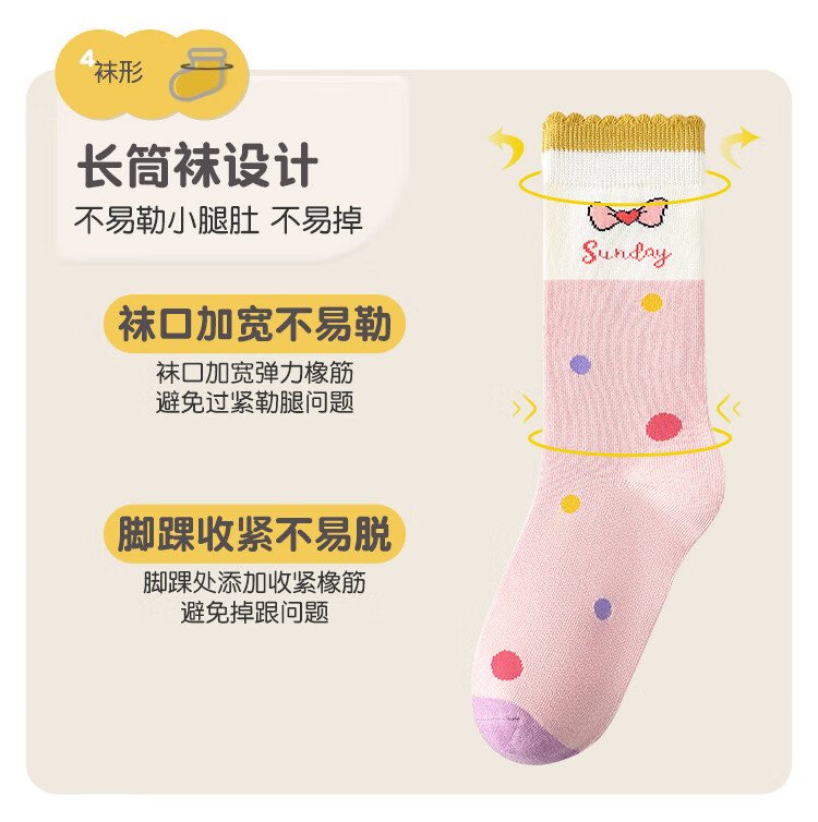 Langsha Children's Socks Girls Spring Autumn Winter Stockings Comfortable Sweat-Absorbent Breathable Middle-Grade Children's Cute Sports Girls Cotton Socks