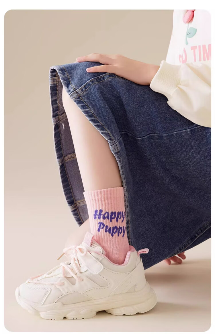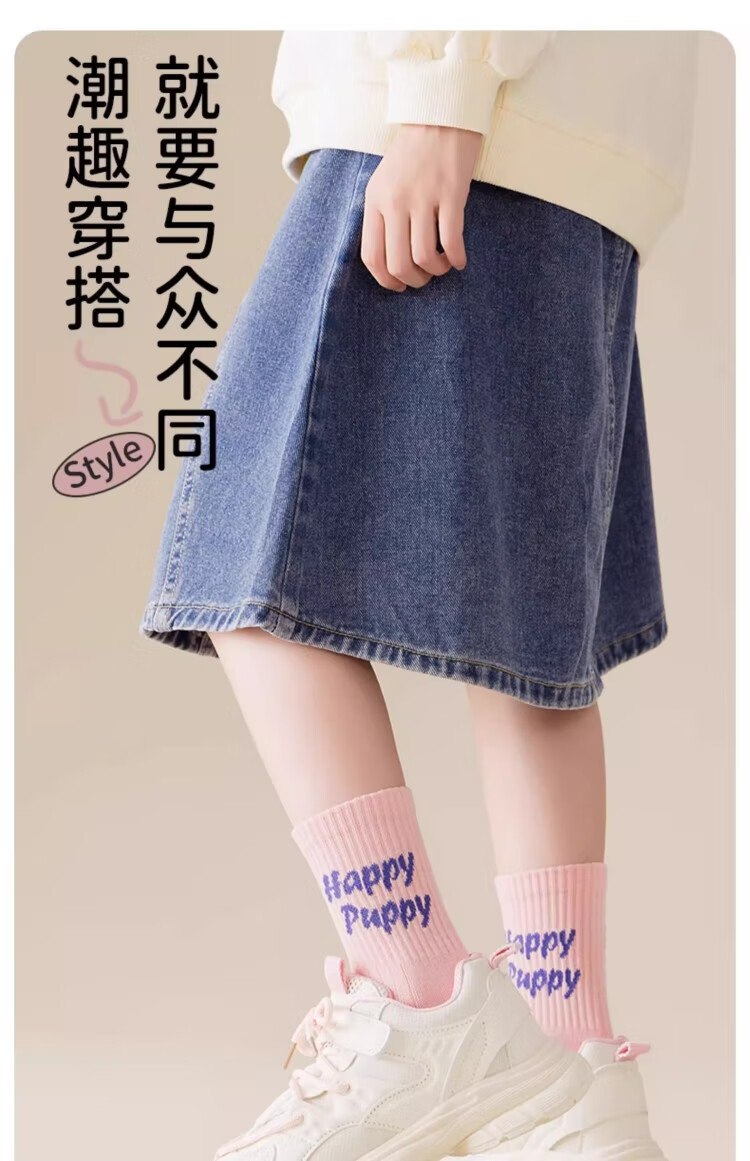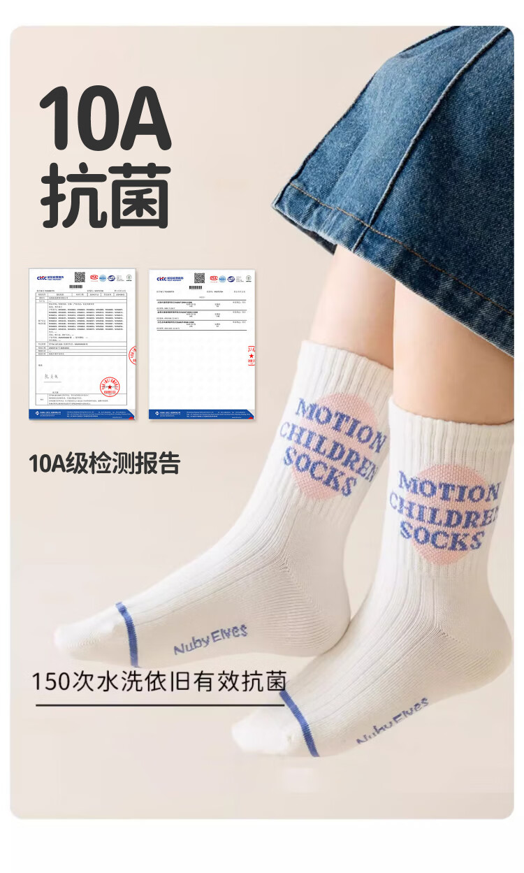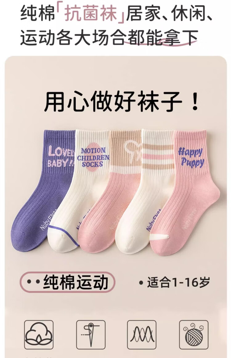 Cotton Xiaonian children's socks, autumn and winter mid-calf socks, 100% cotton, 10A antibacterial and deodorant, 6 pairs for girls, middle-aged and older students