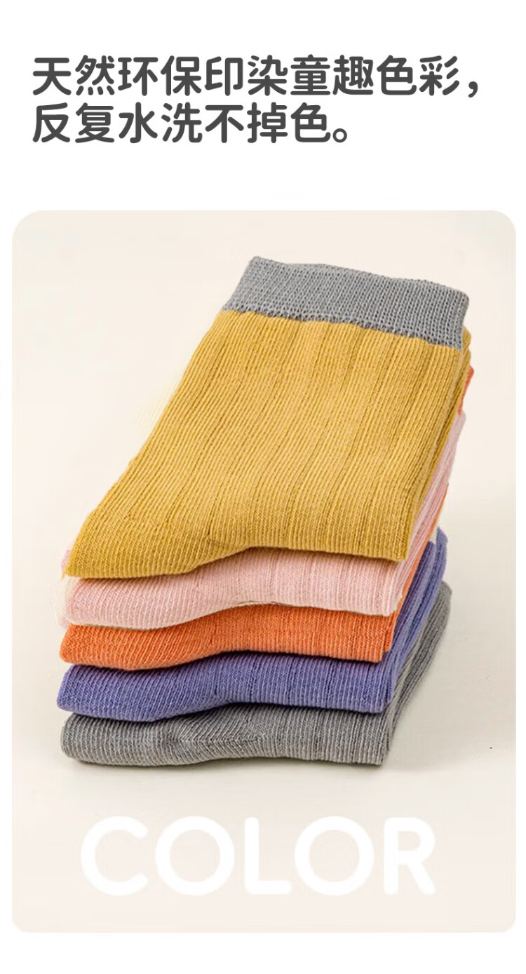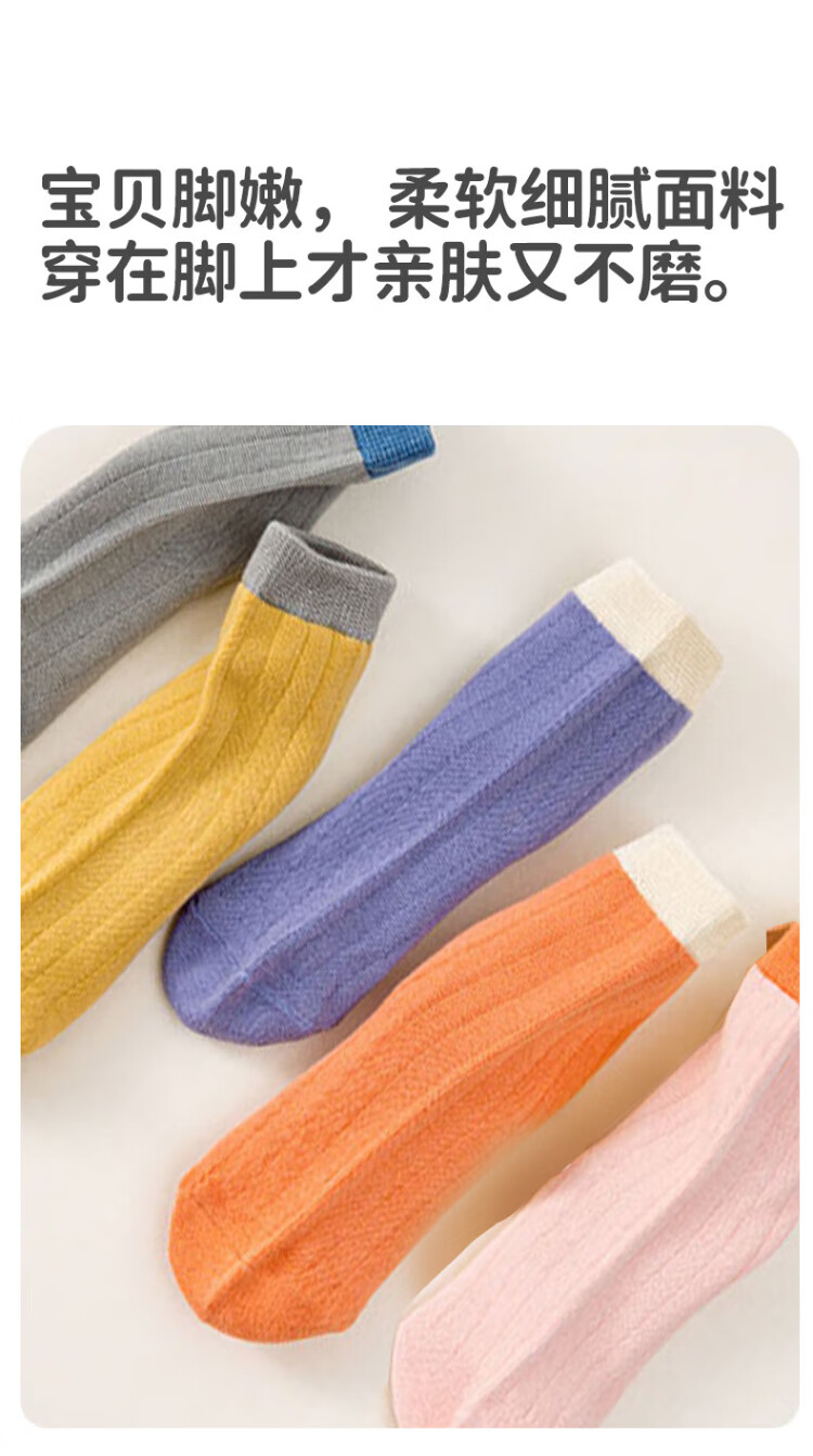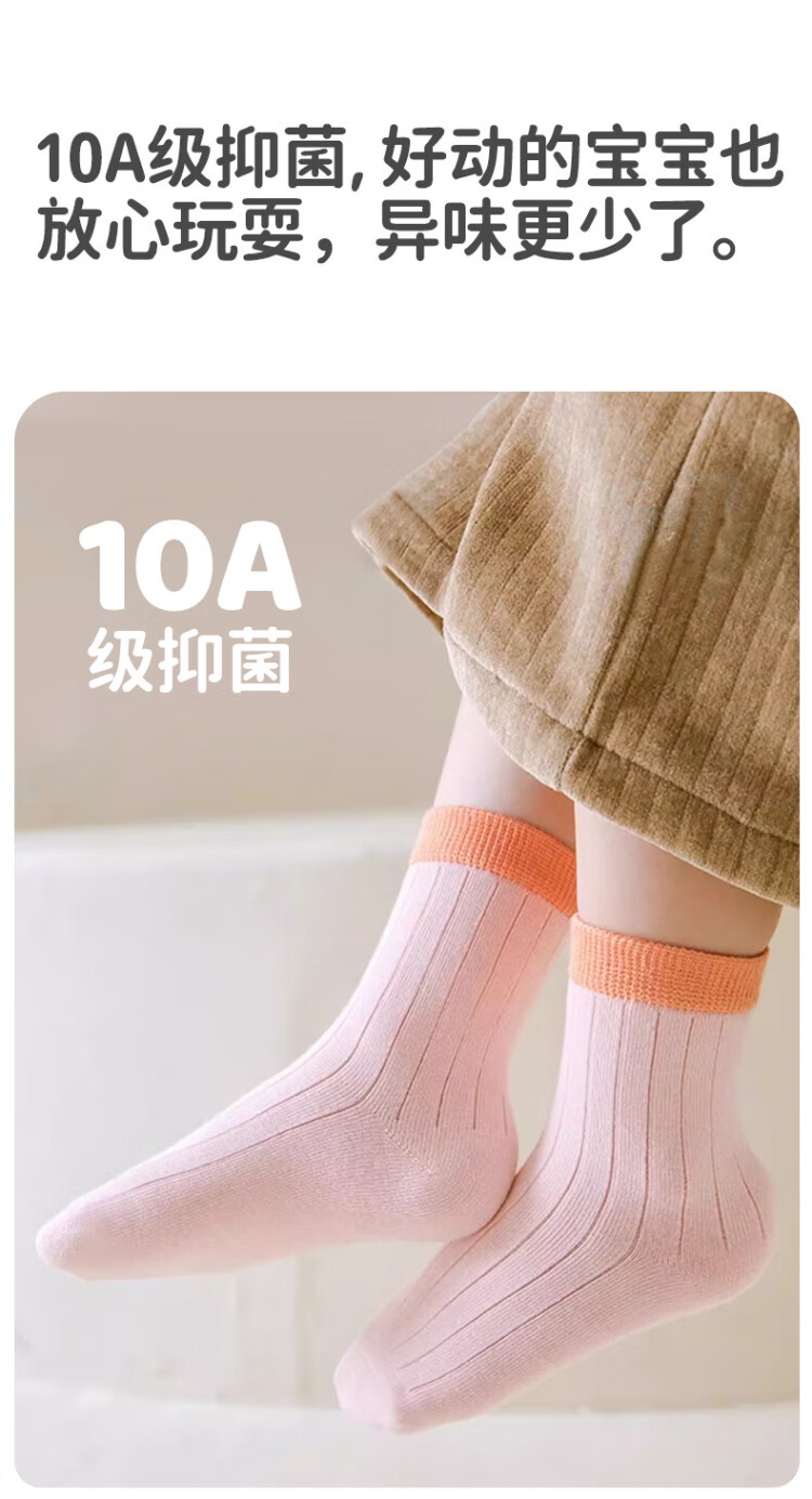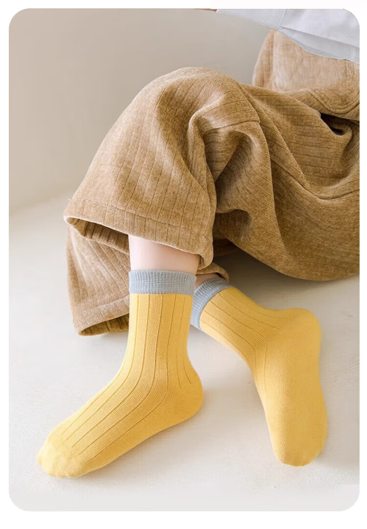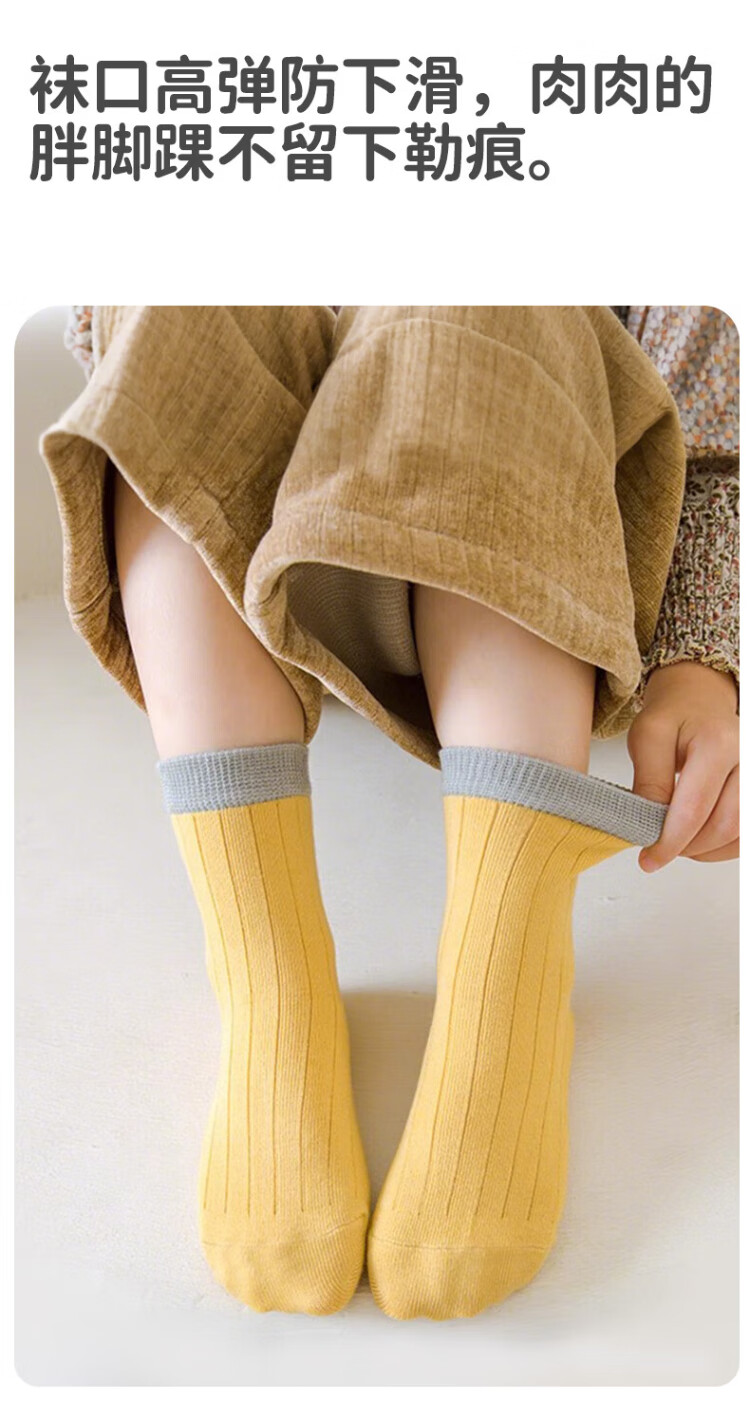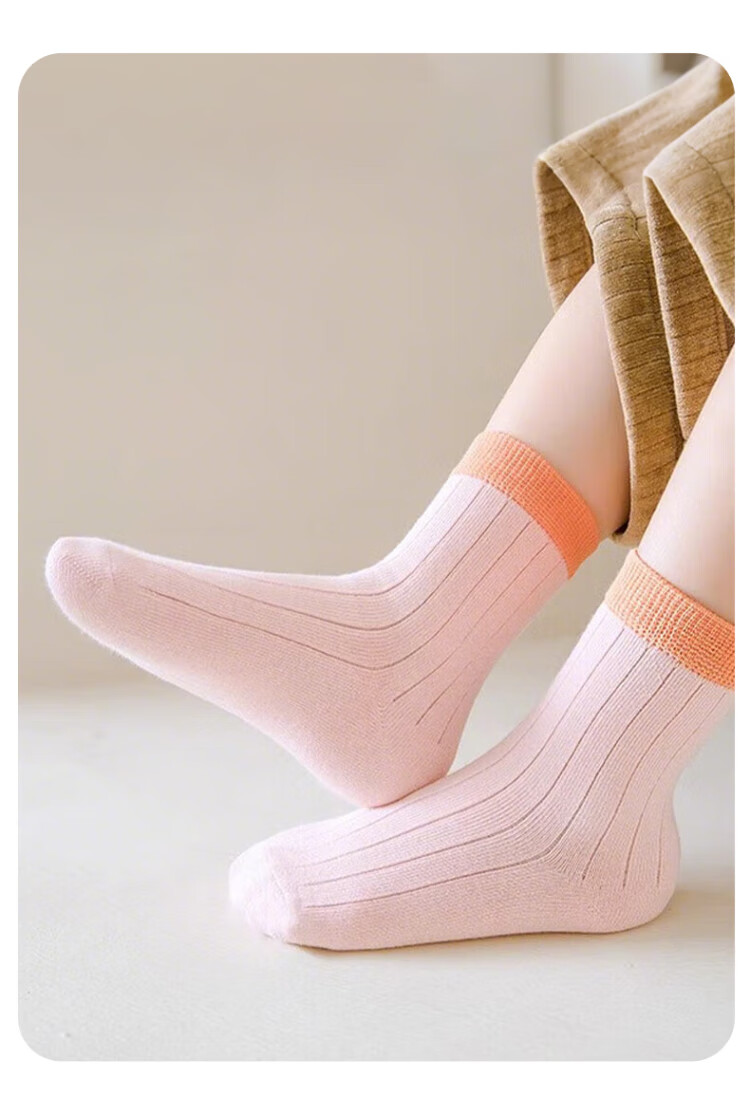 Cotton Xiaonian children's socks, autumn and winter mid-calf socks, 100% cotton, 10A antibacterial and deodorant, 6 pairs for girls, middle and older children