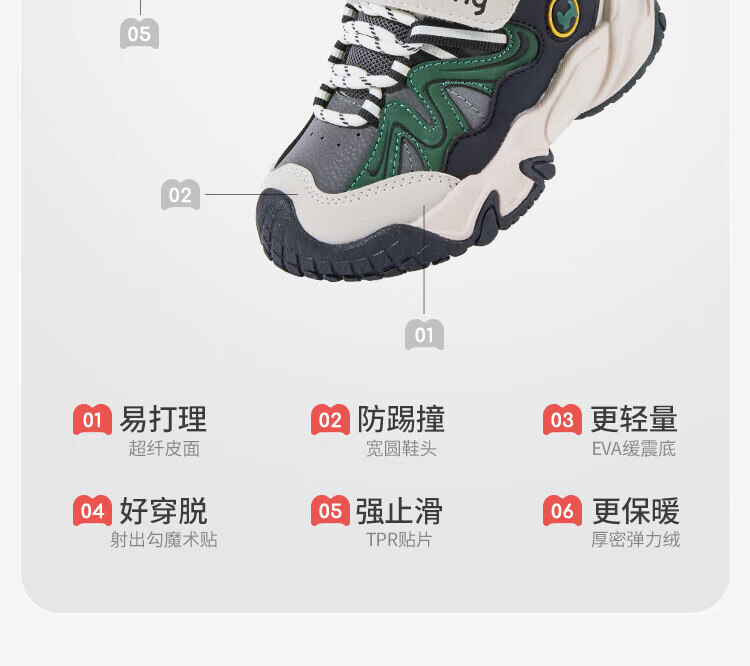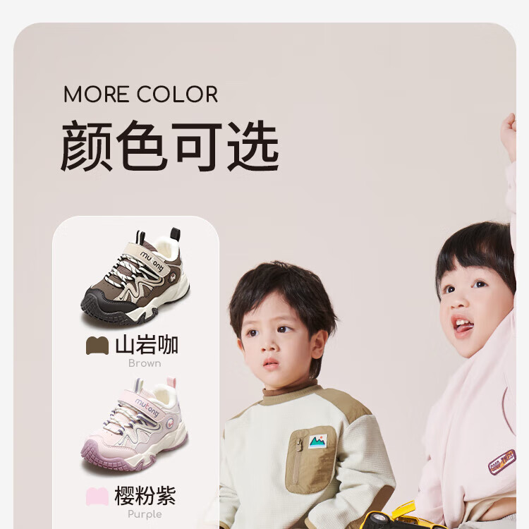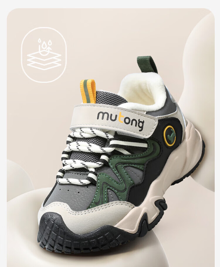 Shepherd boy children's sports shoes men's winter plus velvet warm cotton shoes outdoor anti-kick girls' shoes meteorite gray 26