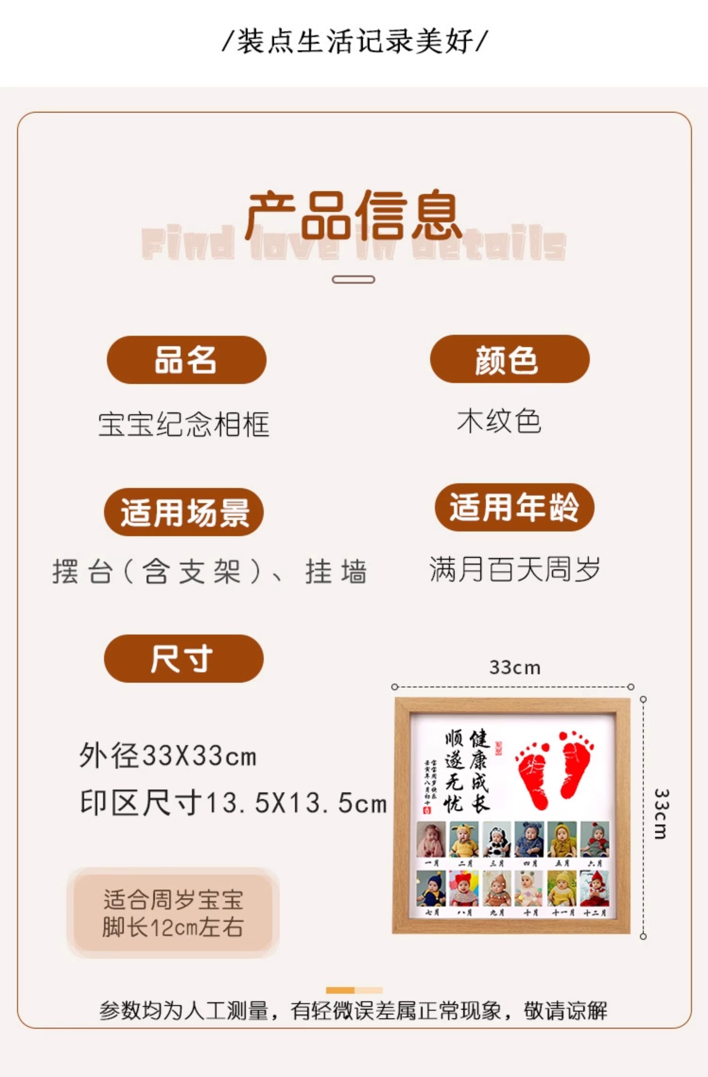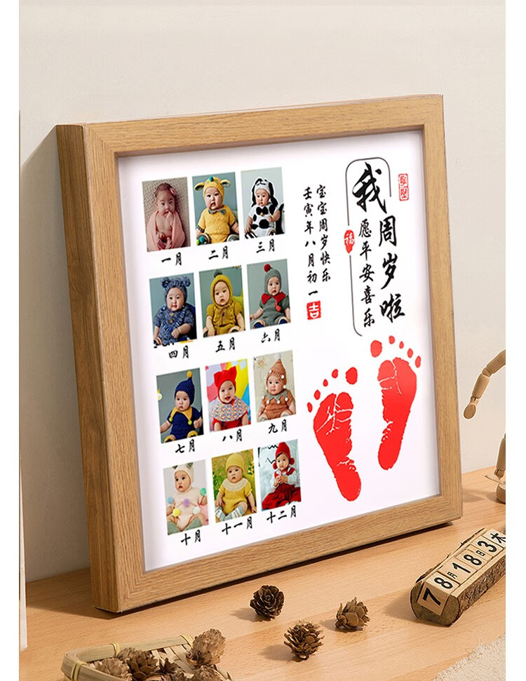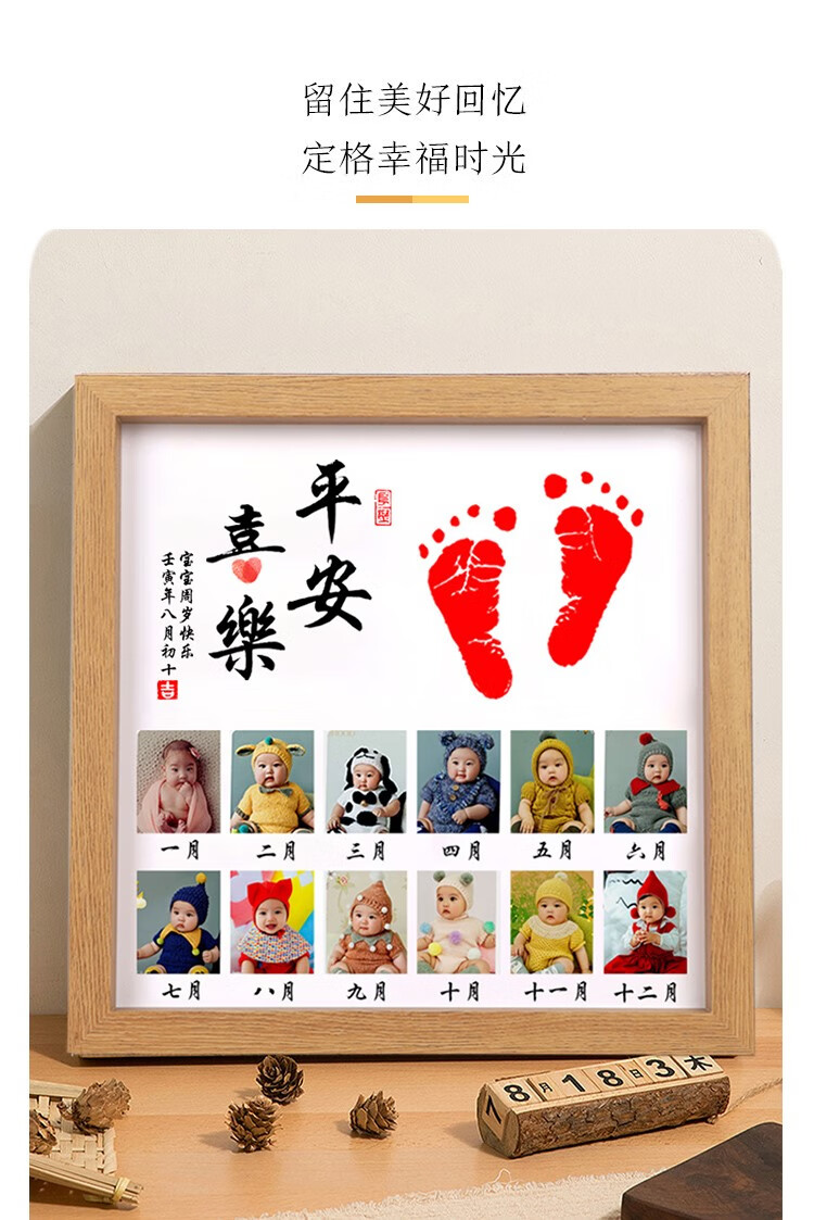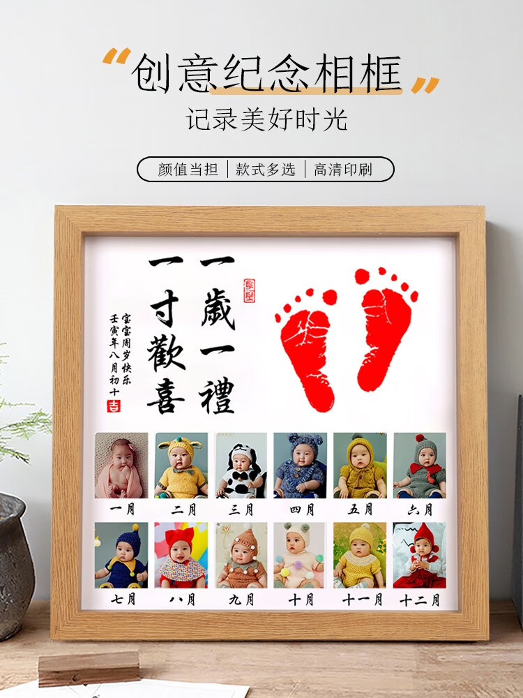 Baby's one-year-old hand and foot print photo frame, hand and foot print ritual, 12-month photo, birthday gift commemoration, the apple of your eye, free ink pad + traceless nails + wet wipes