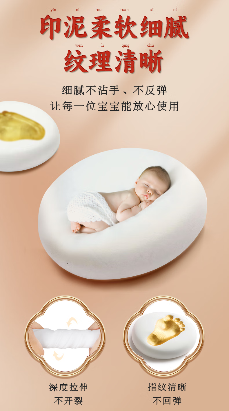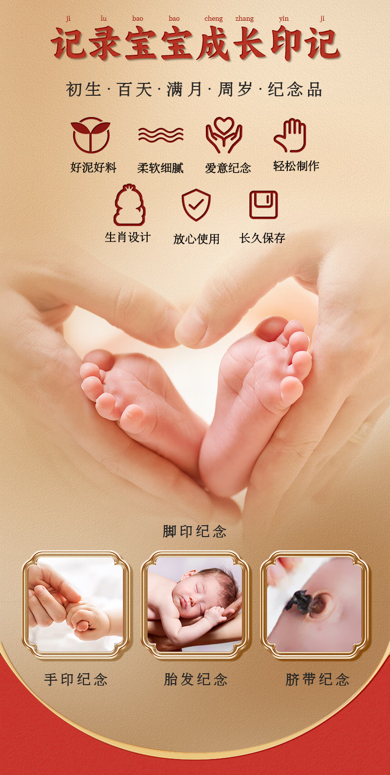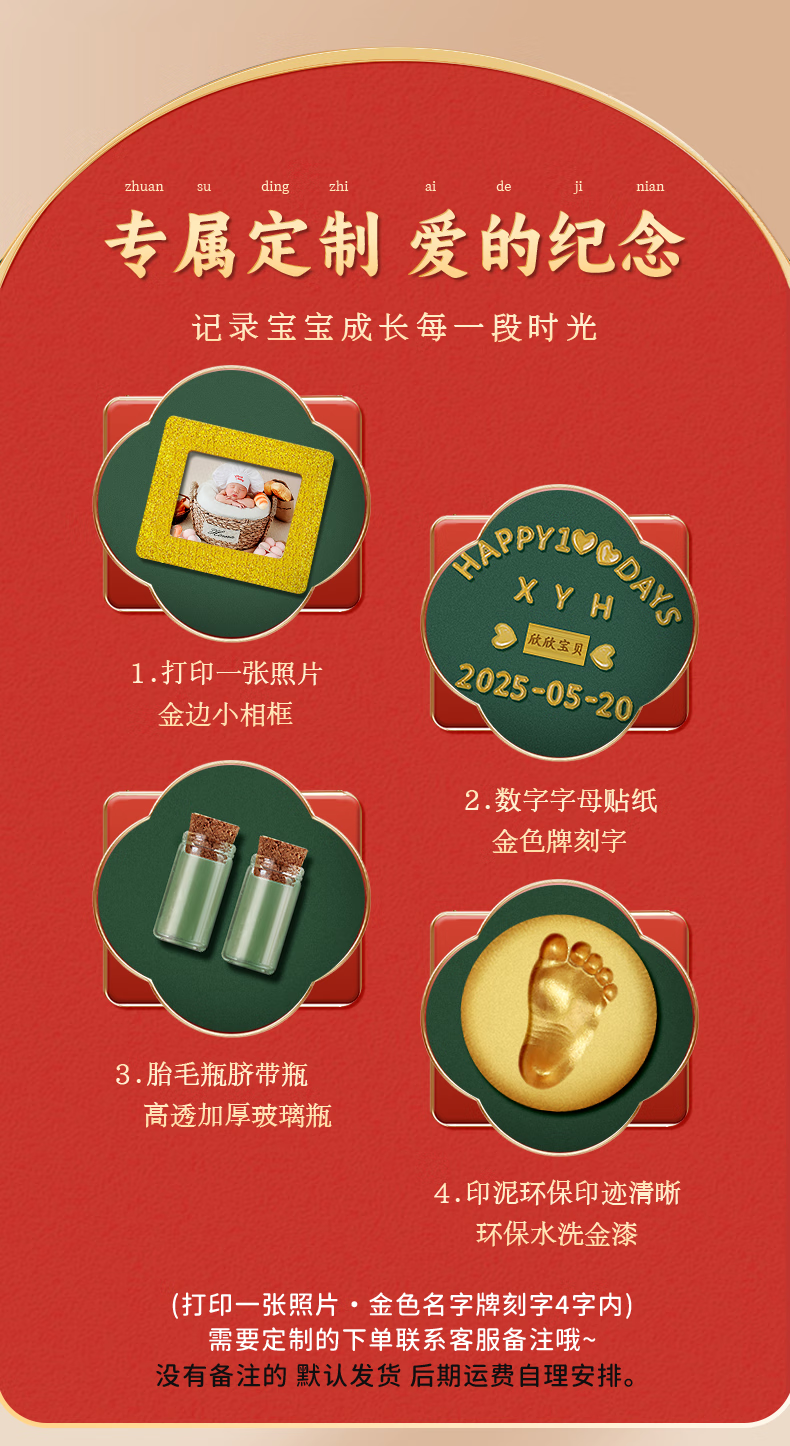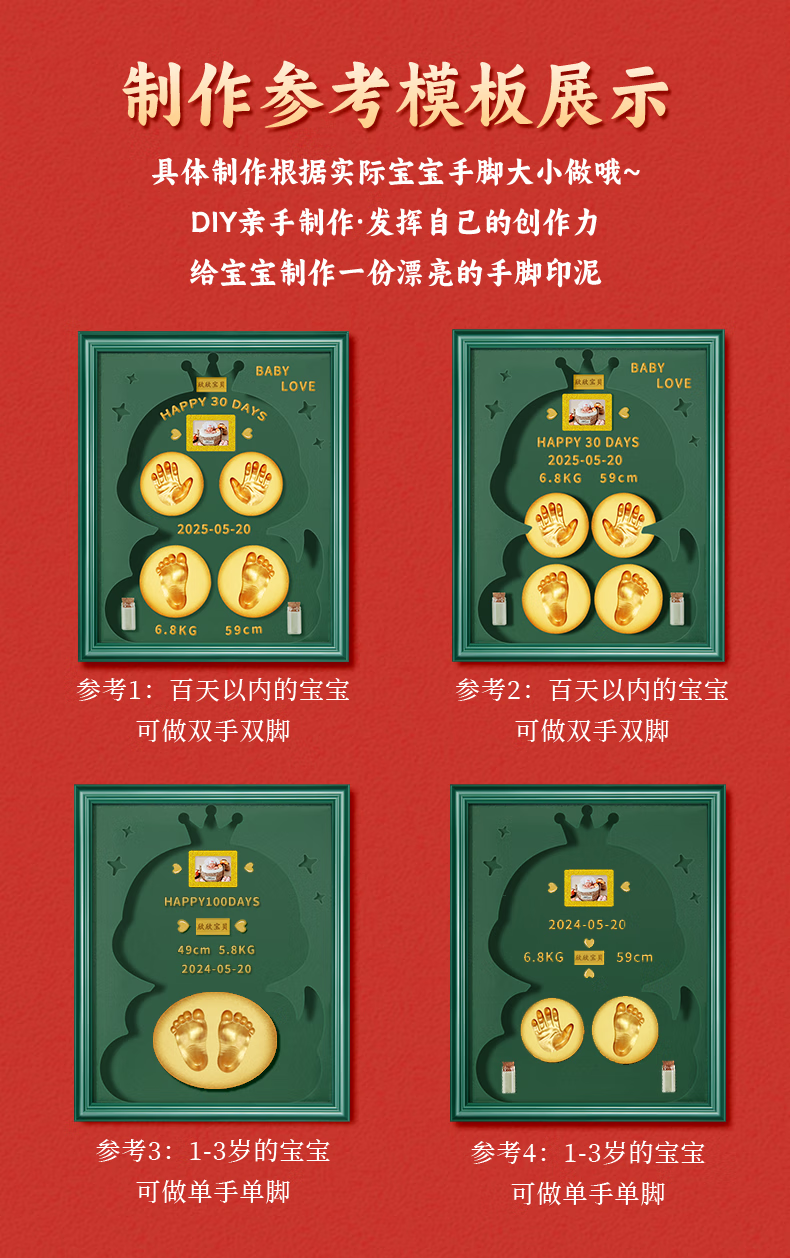 Shiyuexiaozai2025 Year of the Snake newborn baby's hand and foot prints, fetal hair, umbilical cord collection, baby's hand and foot prints, 100th day commemorative photo frame, solid wood color, Qiancheng Si brocade, blank + gold base, 12-inch regular package