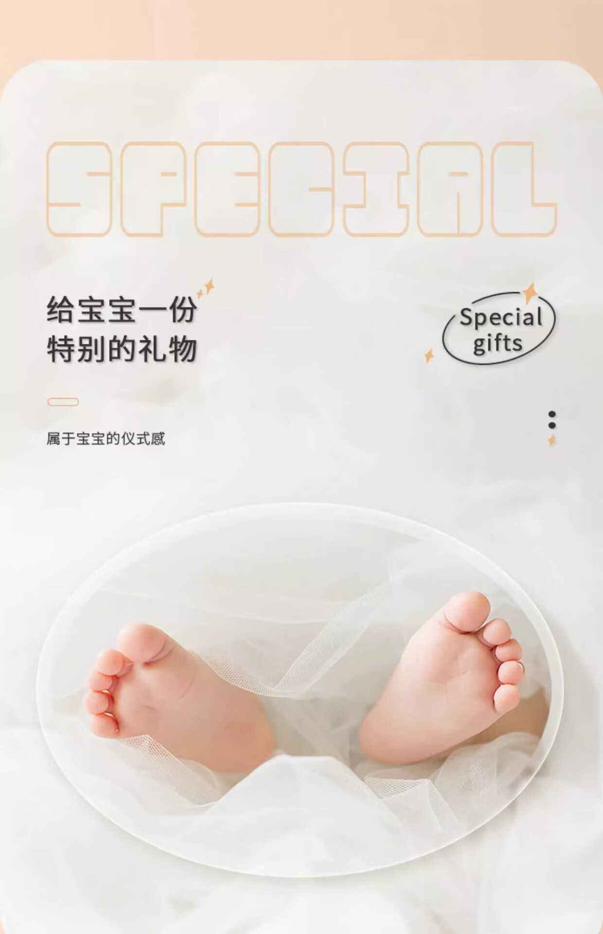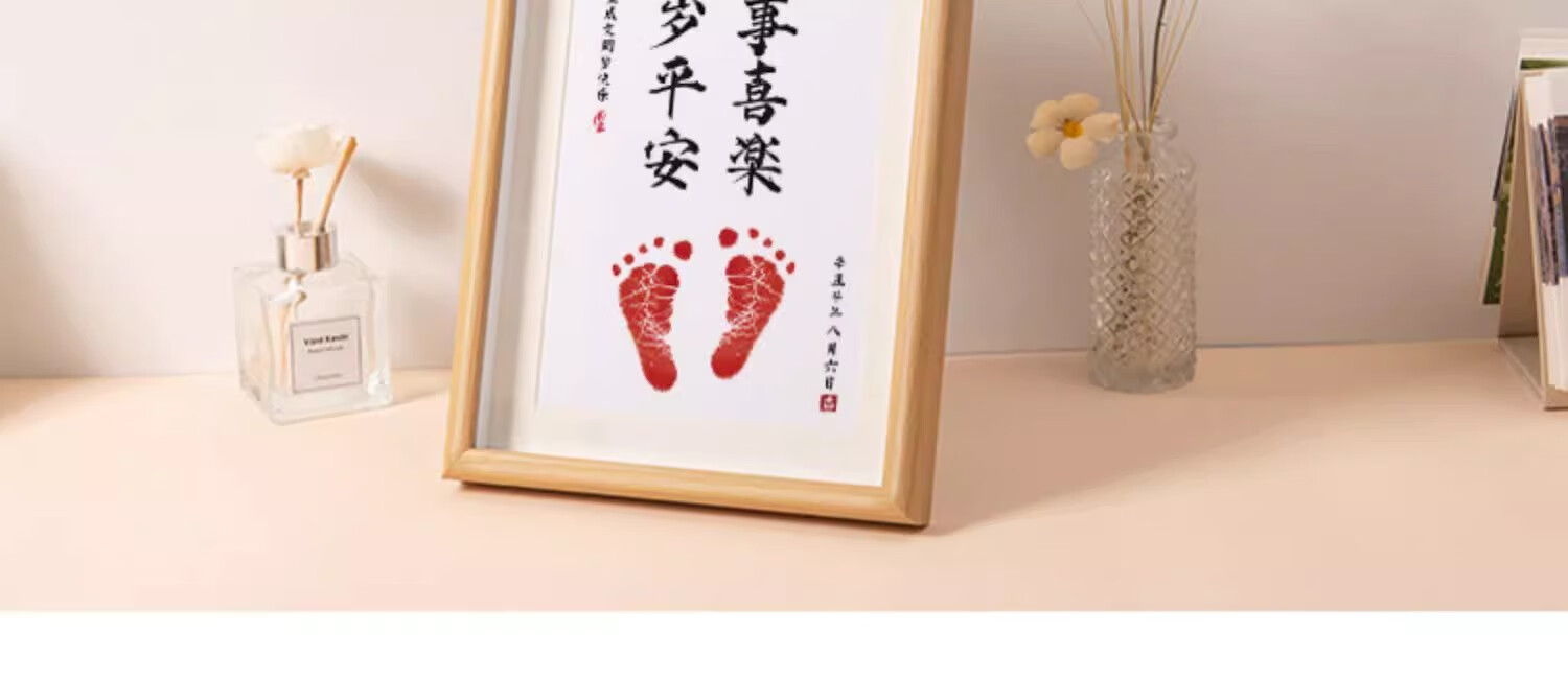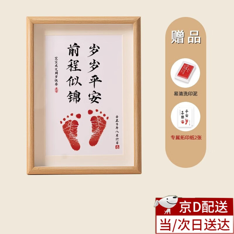 Shantoulin Village's one-year-old hand and foot prints and paintings for 100-day full-moon babies with a sense of ritual souvenirs. Baby contentment and happiness, calligraphy and paintings, footprints, bright future, hand and foot prints photo frame, ten inches