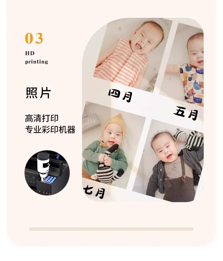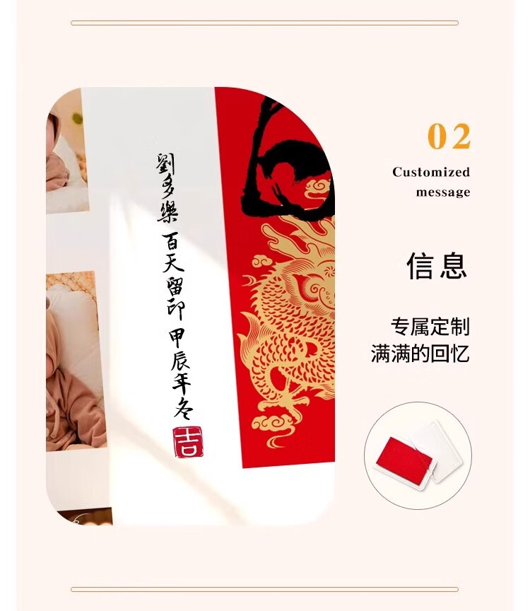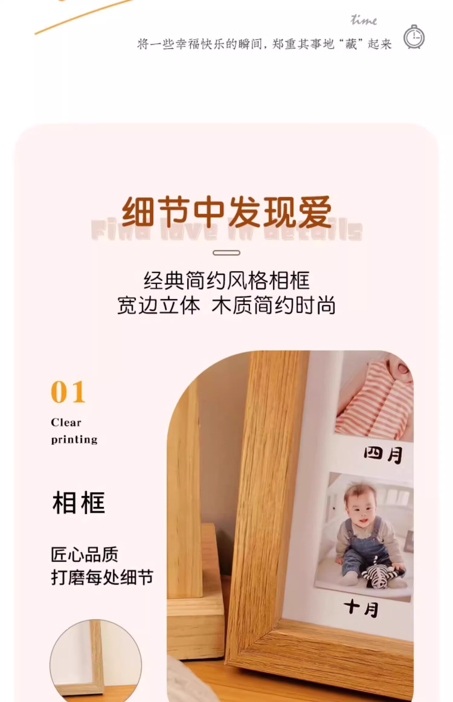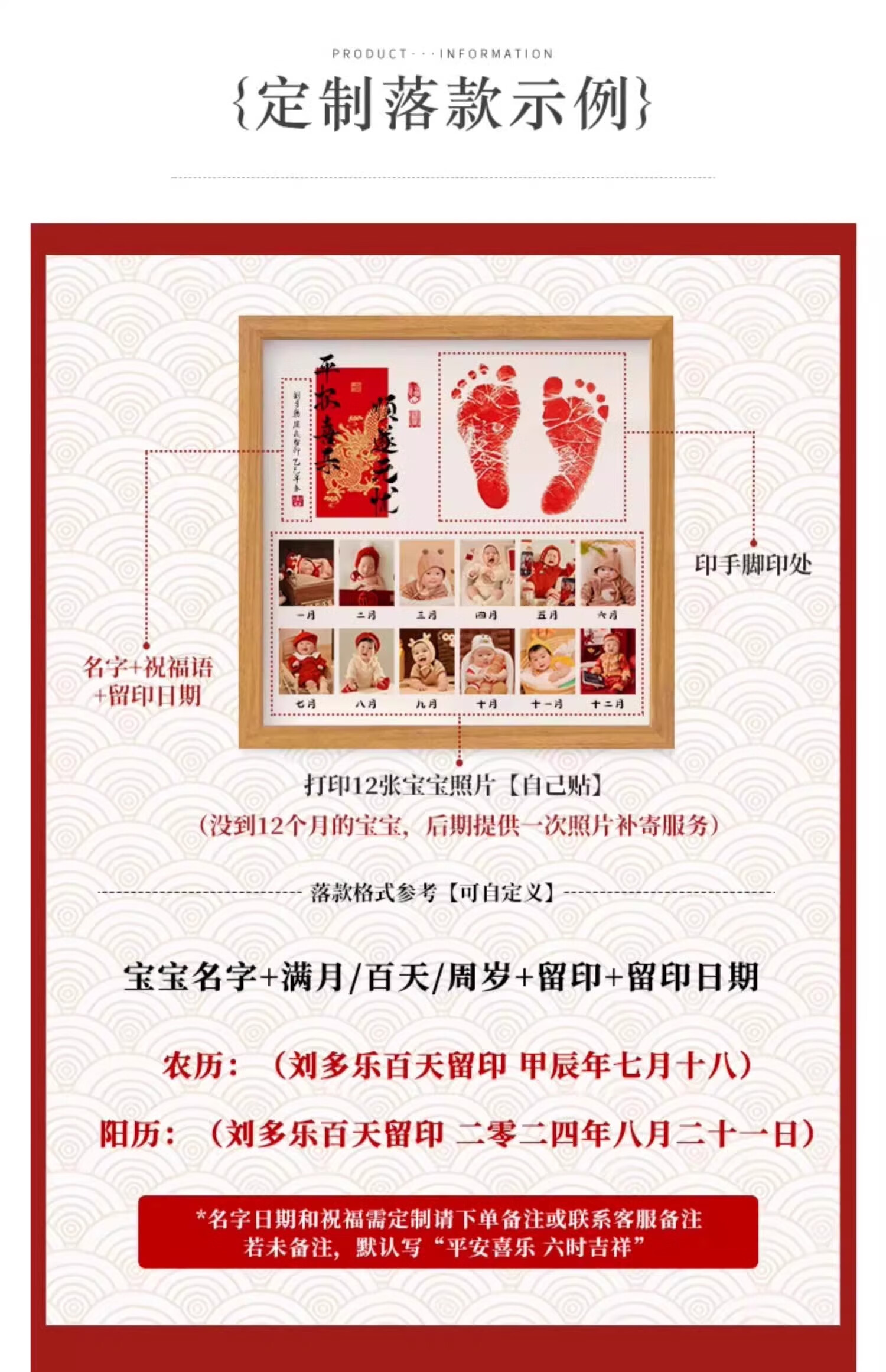 Baby dragon's one-year-old hand and foot print photo souvenir photo frame 100 days of baby footprints and full moon ceremony walnut color - one year old - horizontal version 33x33cm