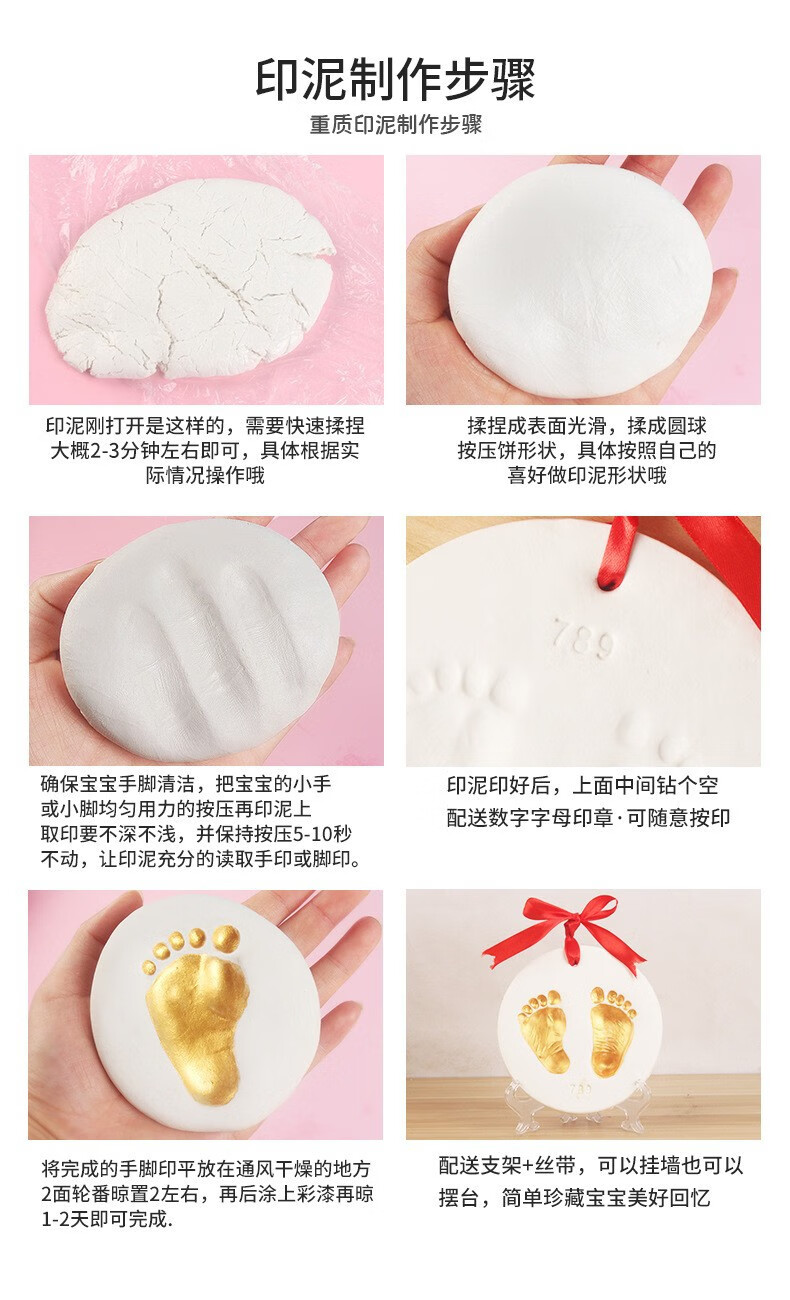 New year baby newborn hand and foot print mud footprint one year old newborn baby hand and foot souvenir full moon hundred days gift 100g white ink mud