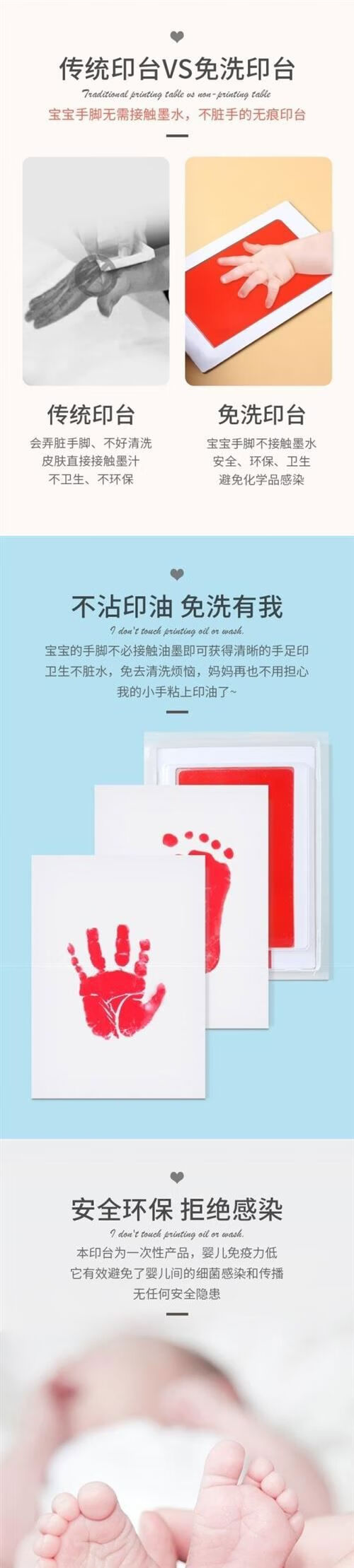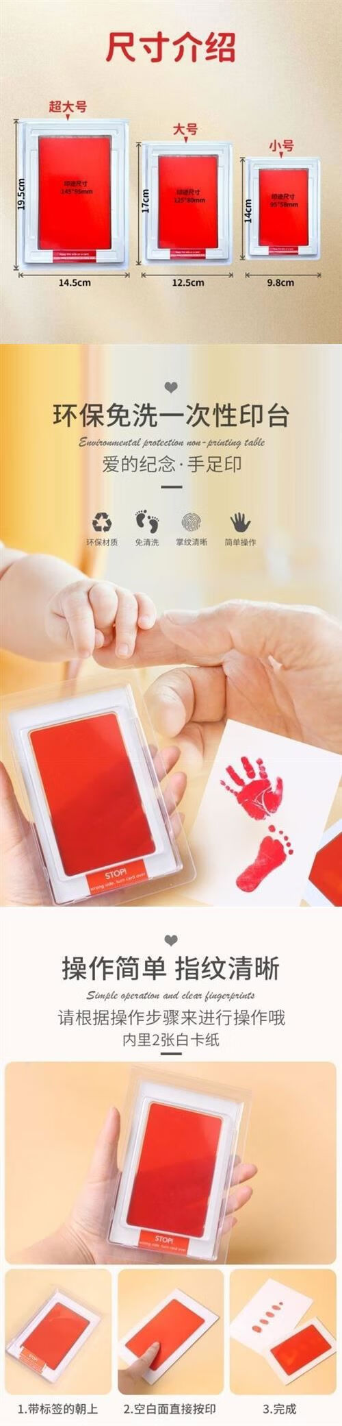 Shantou Lincun one-year-old baby ink pad ink ink for one-month-old baby, environmentally friendly hand and foot imprint T for one hundred days, disposable no-wash ink pad that does not dirty hands, large golden washable ink pad with 2 pieces of cardboard--